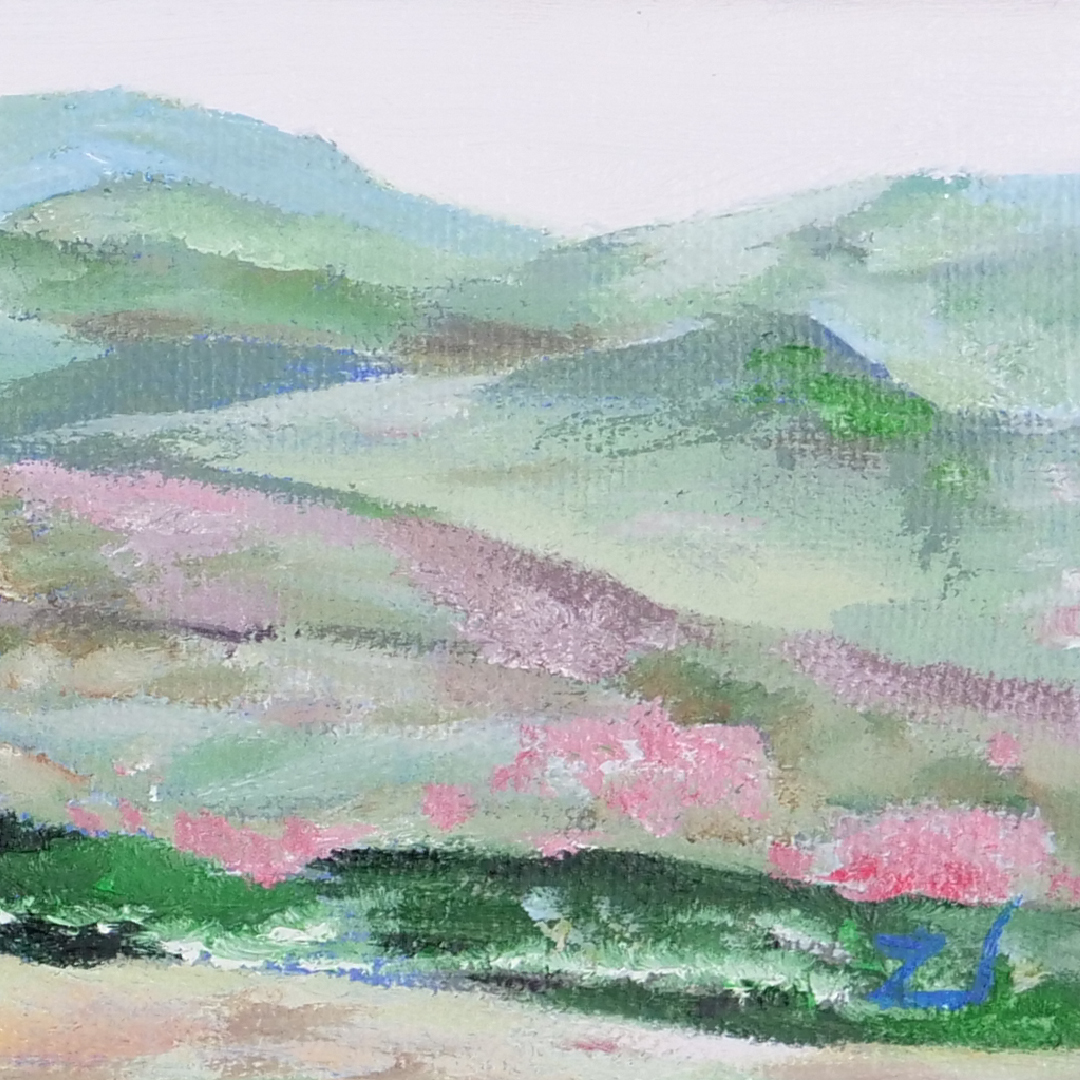 张捷《山的那边有什么?桃花源之二》油画 10CM*30CM 约0.3平尺 布面(已装框)【原作编号YH0010】