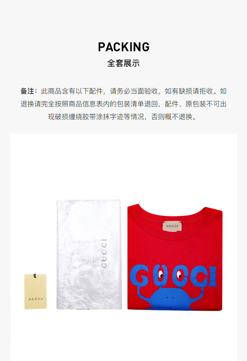 GUCCI 古驰 男女通用圆领纯棉卡通logo印花短袖童装T恤 722401XJEZF