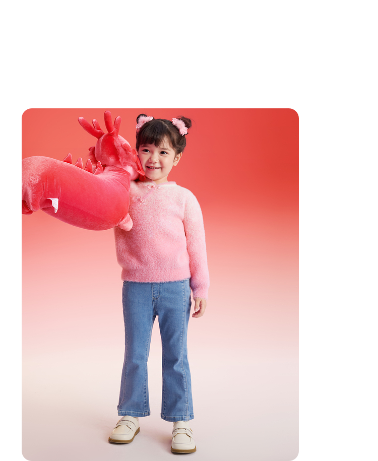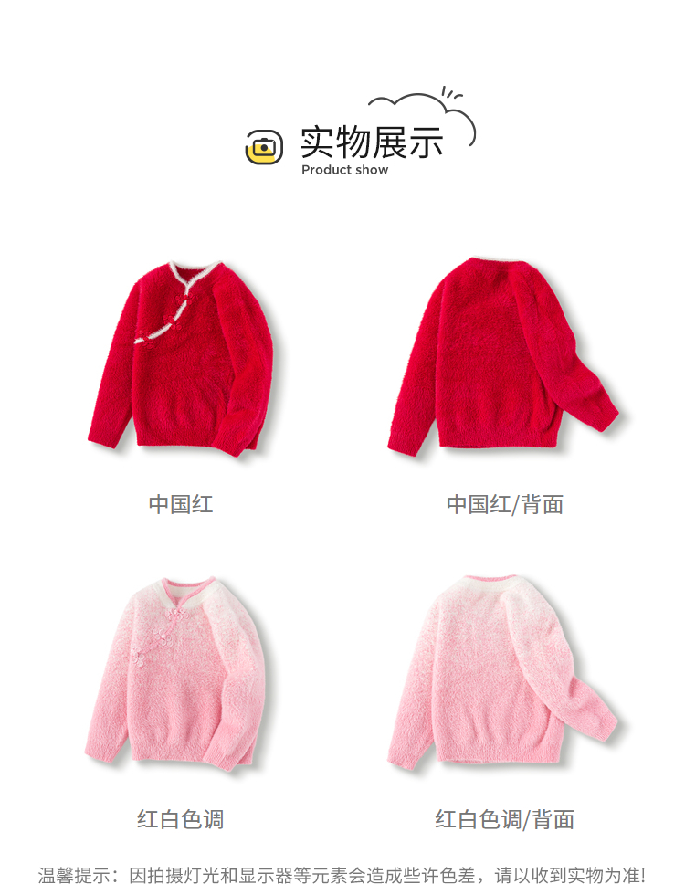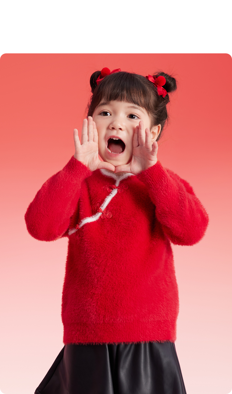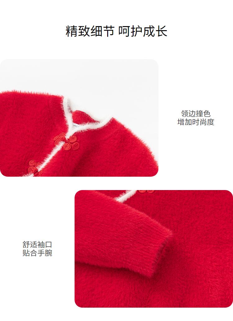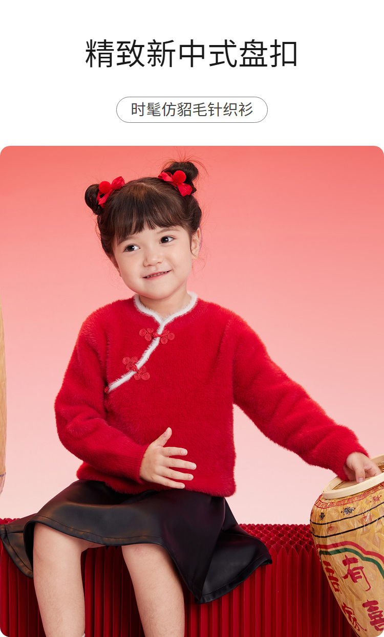 巴拉巴拉童装女童新中式毛衣儿童毛衫2025春装新款红色针织衫上衣