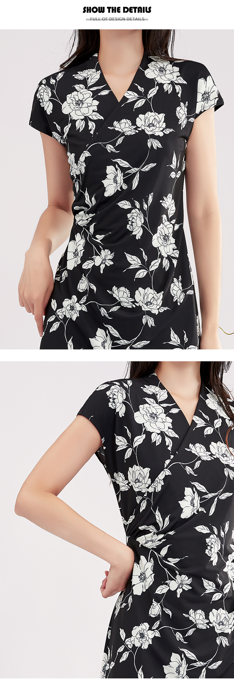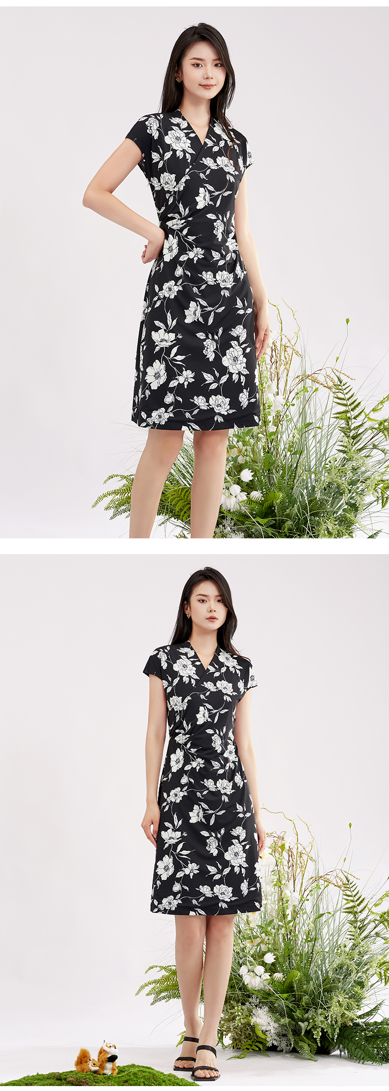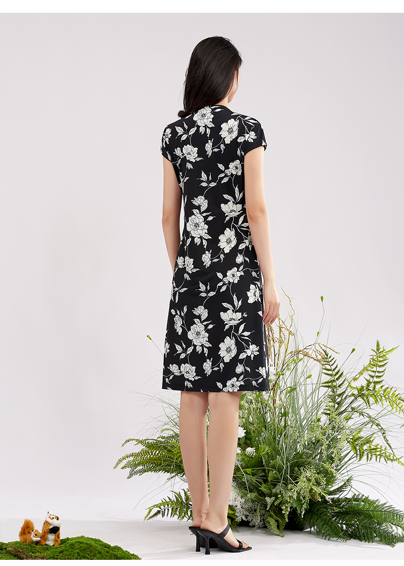【商场同款】阿菁娜V领花卉印花优雅连衣裙A28X112098