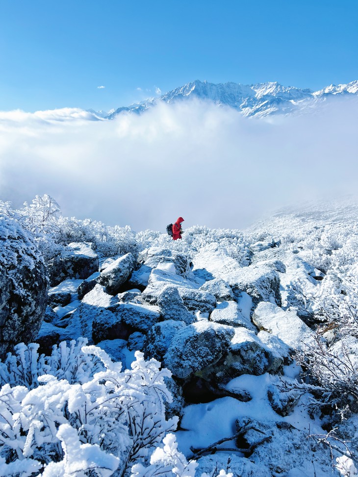 到达雪门坎,天气良好的状况下有几率看到日照金山哦,简单热身后开始徒步,约3km | |