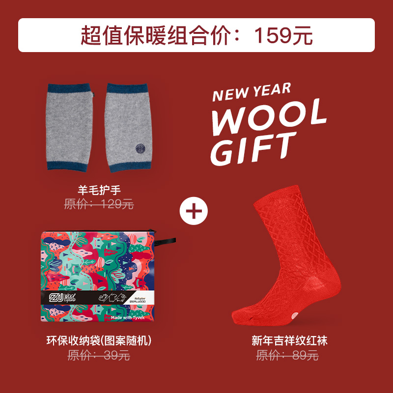 赛乐温暖组合套装羊毛护手吉祥结袜送家人新年礼物圣诞元旦春节袜
