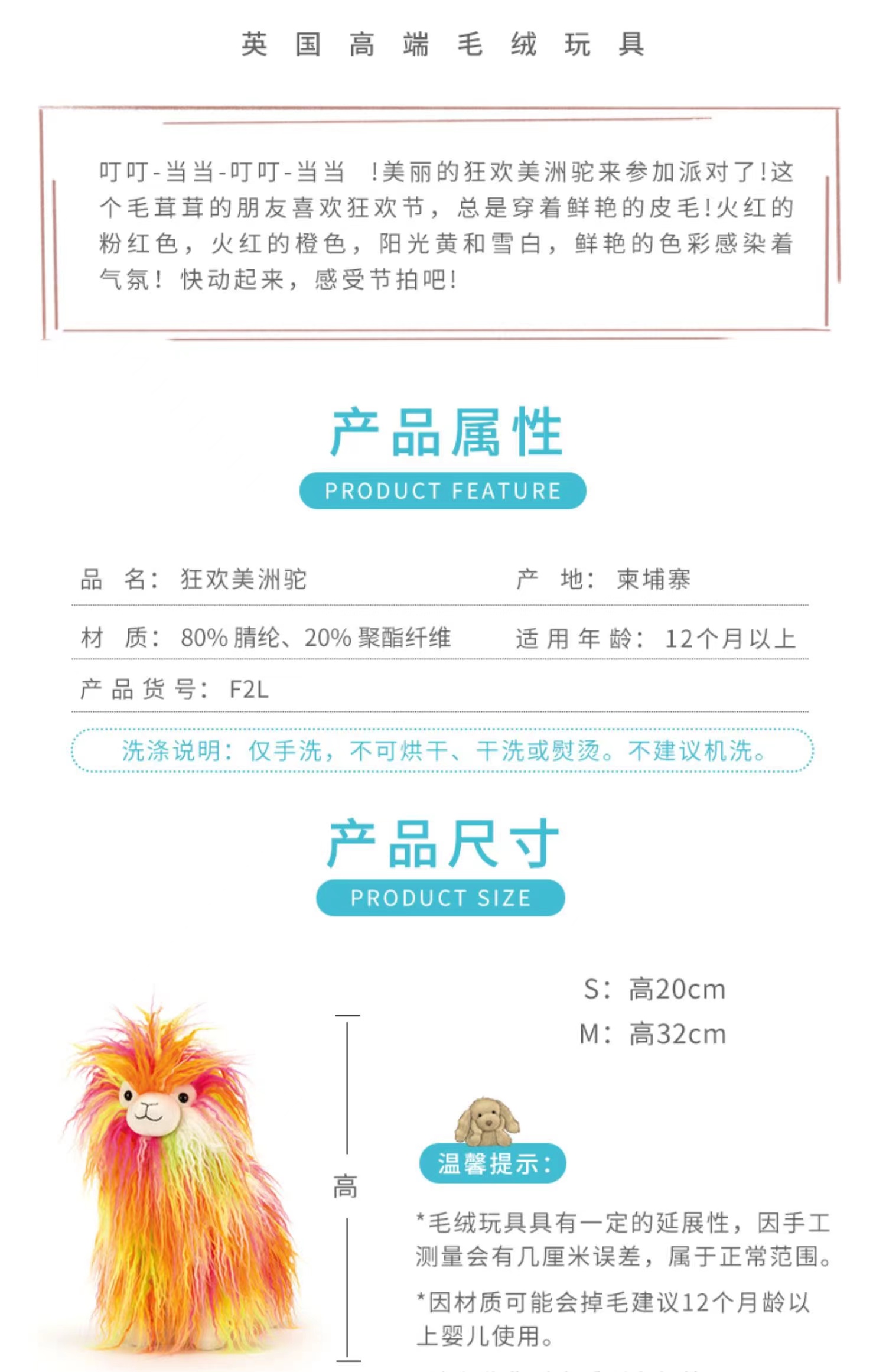 JellyCat 狂欢小美洲驼 (小号 20cm)JCACFL3L