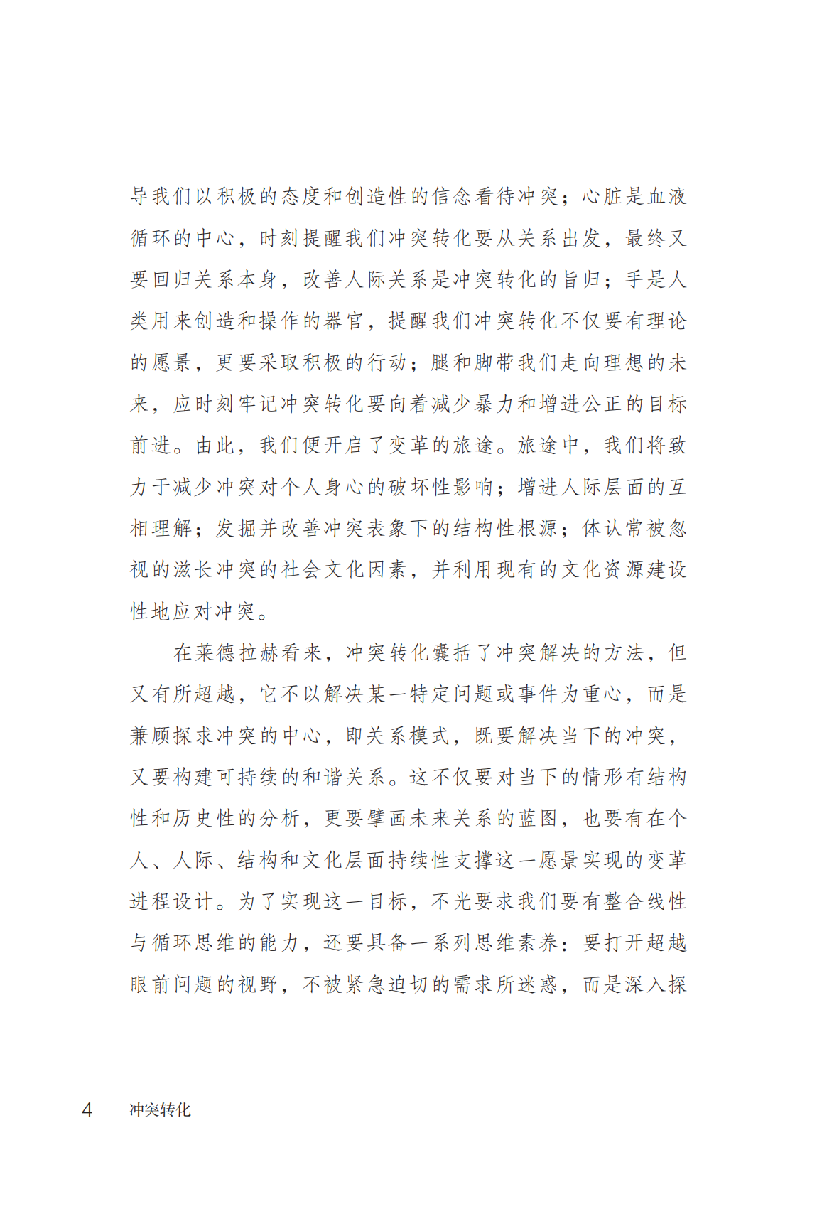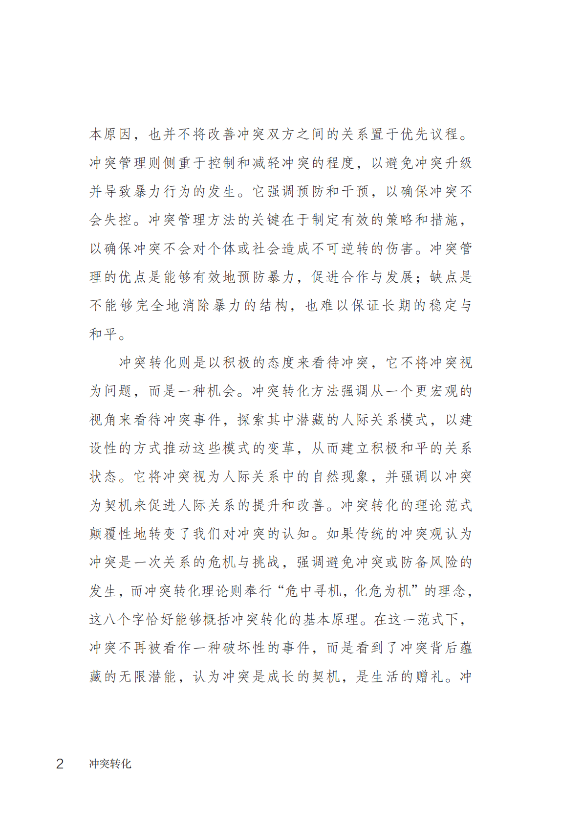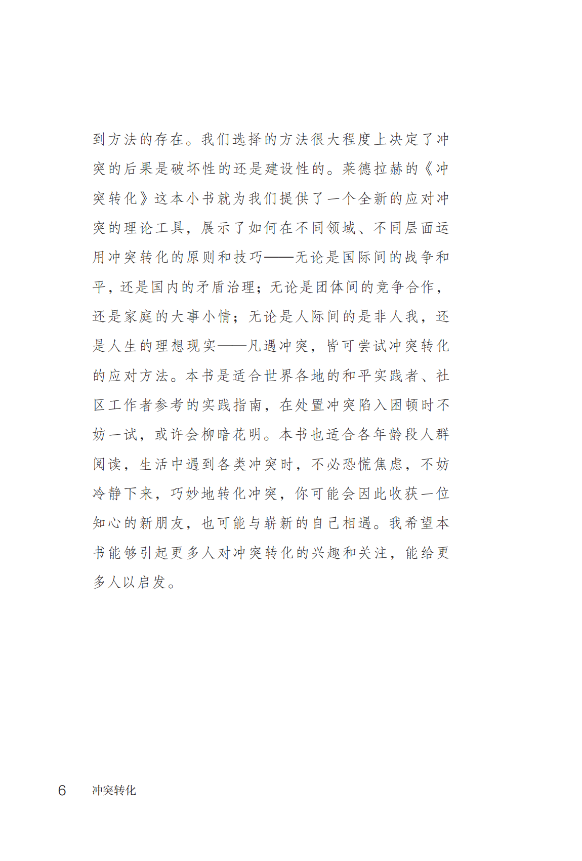 约翰·保罗·莱德拉赫(John Paul Lederach)是冲突转化领域的开创者,在书中生动形象地概述了冲突转化理论的核心思想。在日常生活中,冲突常会打破我们自然融洽的关系。书中强调了冲突转化方法的核心技术,不仅包括宏观层面审视冲突各方关系结构的全局观,也包括中观纵览冲突来龙去脉的历史关怀,更包括聚焦微观具体冲突事件解决方案的现实关怀。冲突转化是以积极的态度来看待冲突,将冲突视为人际关系中的自然现象,并强调以冲突为契机来促进人际关系的提升和改善。本书适合所有人阅读,因为生活中难免会与到各类不同冲突。当冲突来临时,不妨冷静下来,学会应用书中的知识,巧妙地转化冲突。