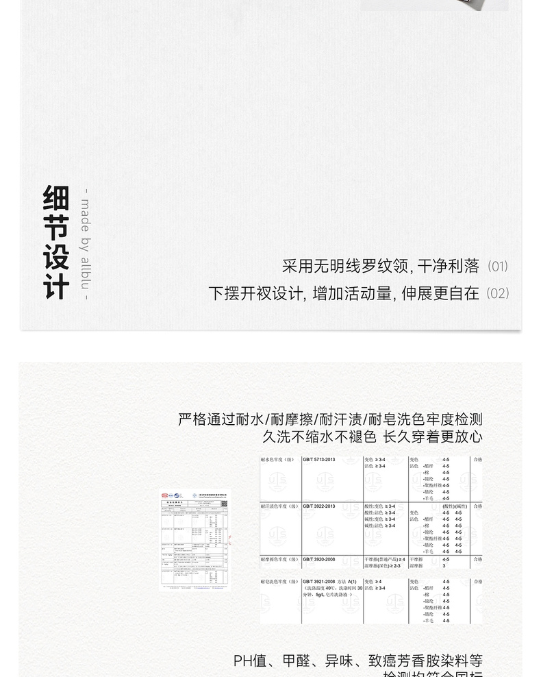 allblu生棉圆领长袖T恤,柔软透气,柔软亲肤 商品图4