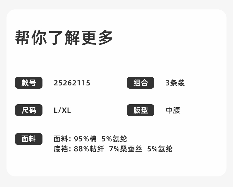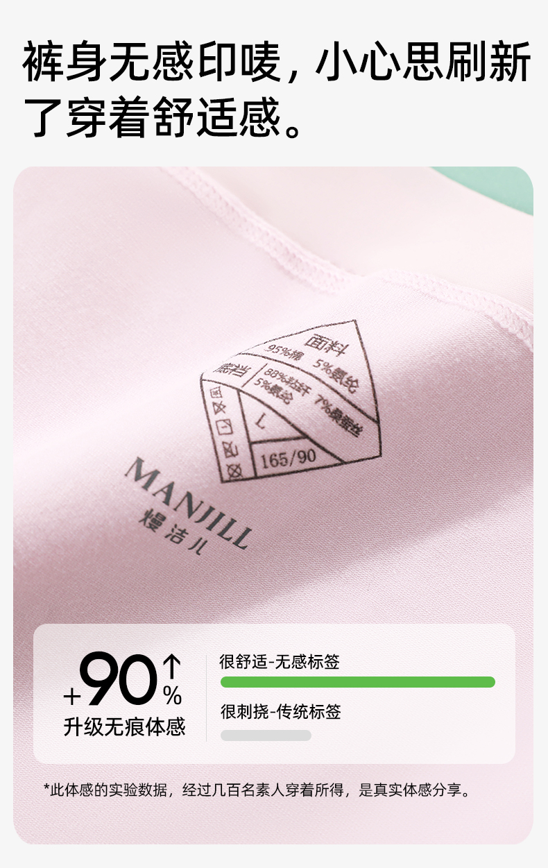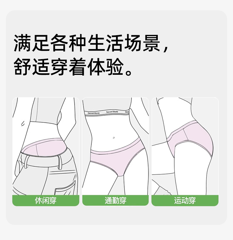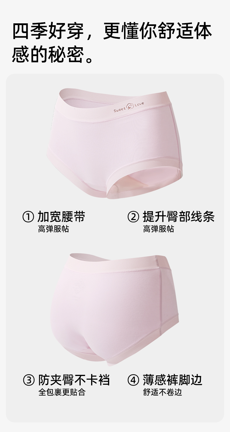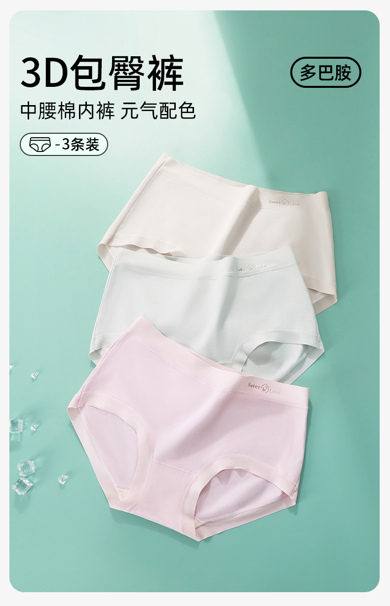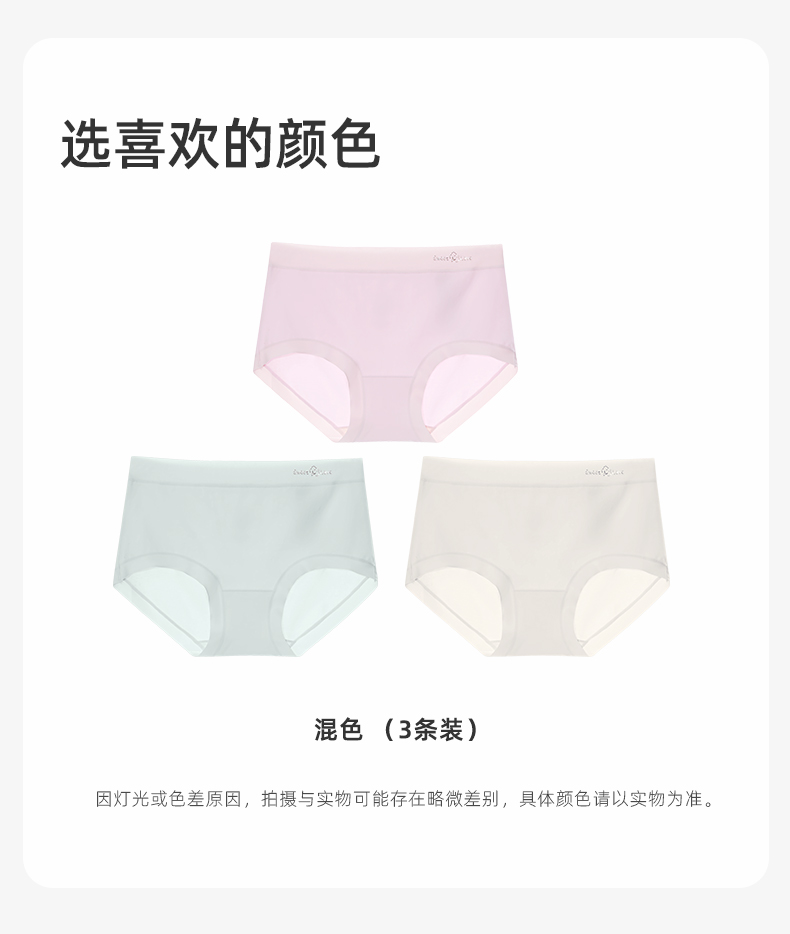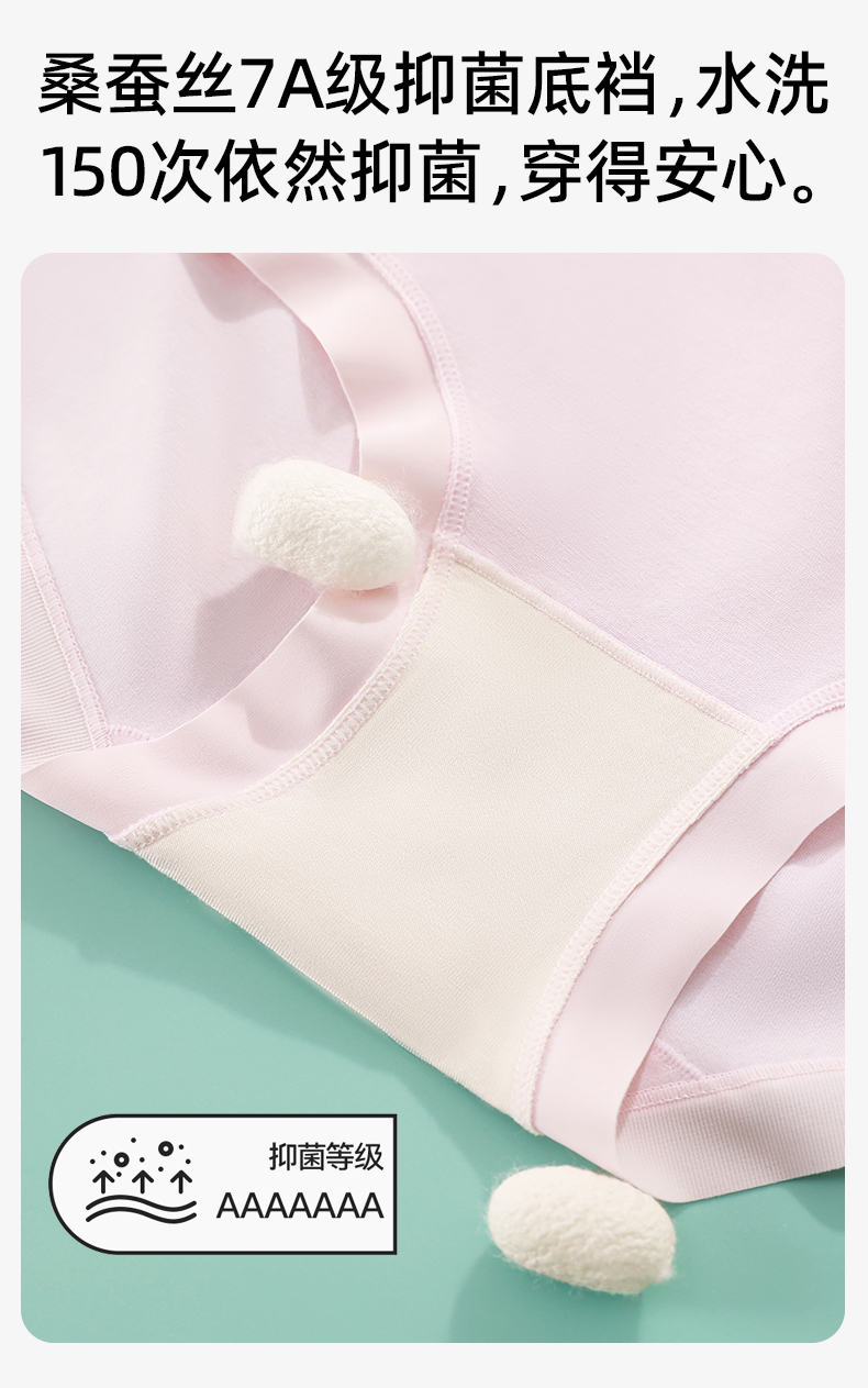 【3条装】熳洁儿 桑蚕丝7A抑菌纯棉绒感舒适透气女士大码内裤中腰包臀25262115