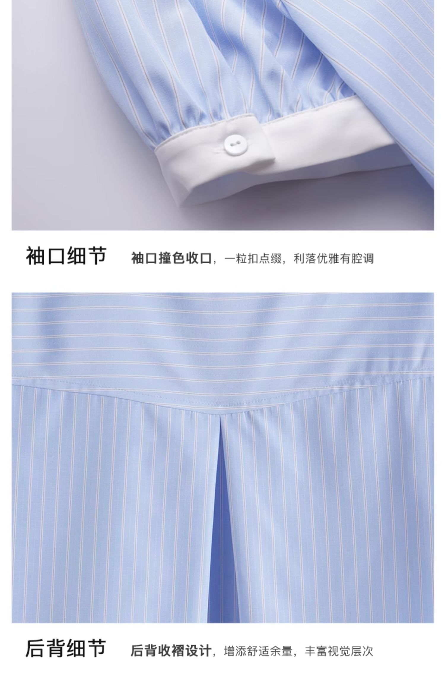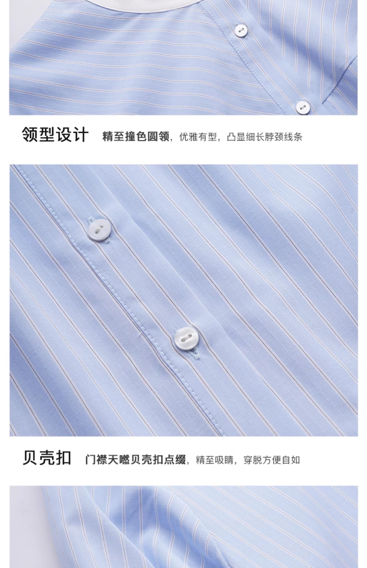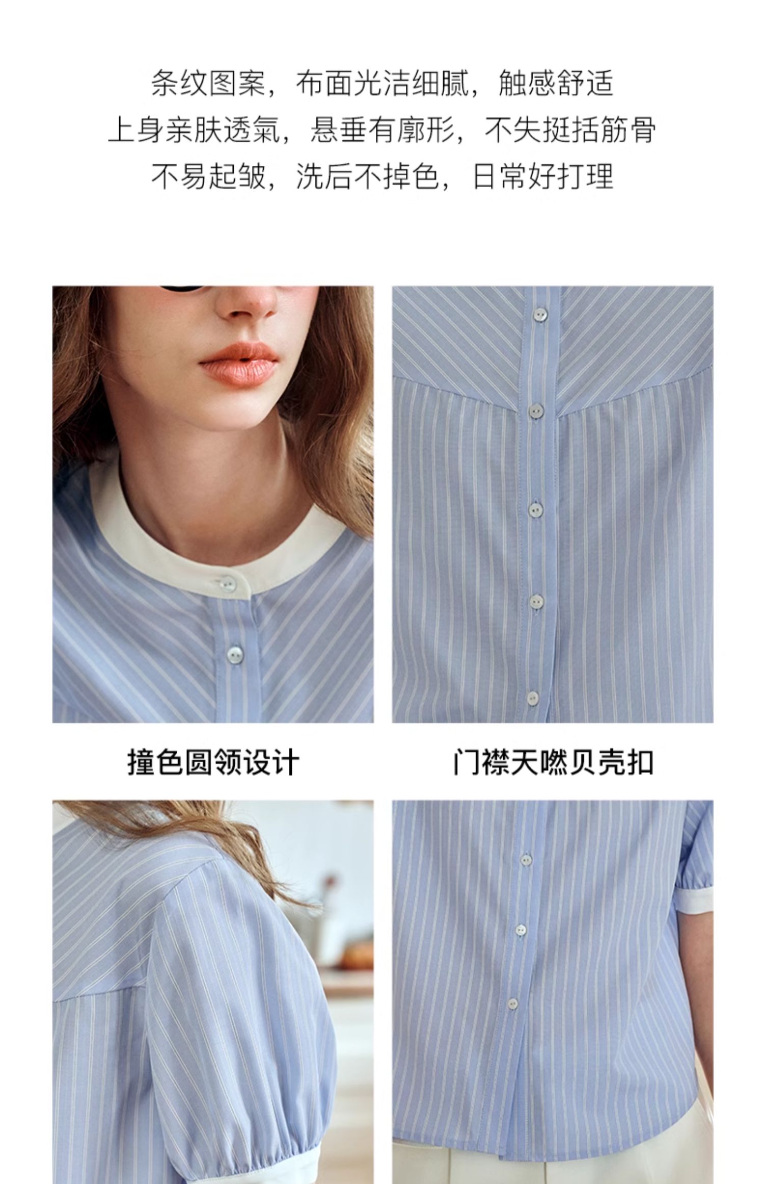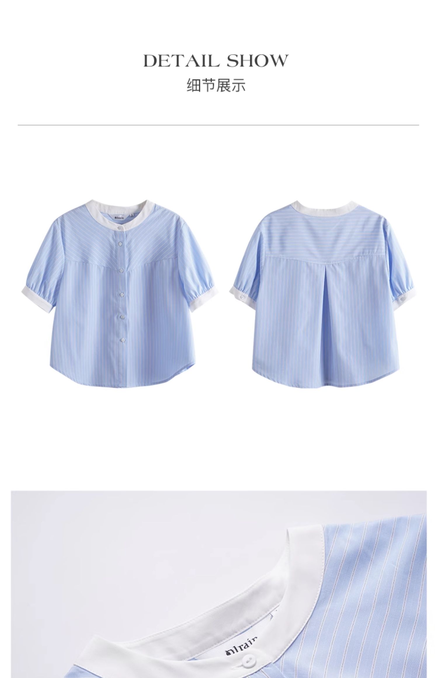 OLrain欧芮儿蓝色条纹衬衫女夏季2024年新款设计感通勤短袖上衣