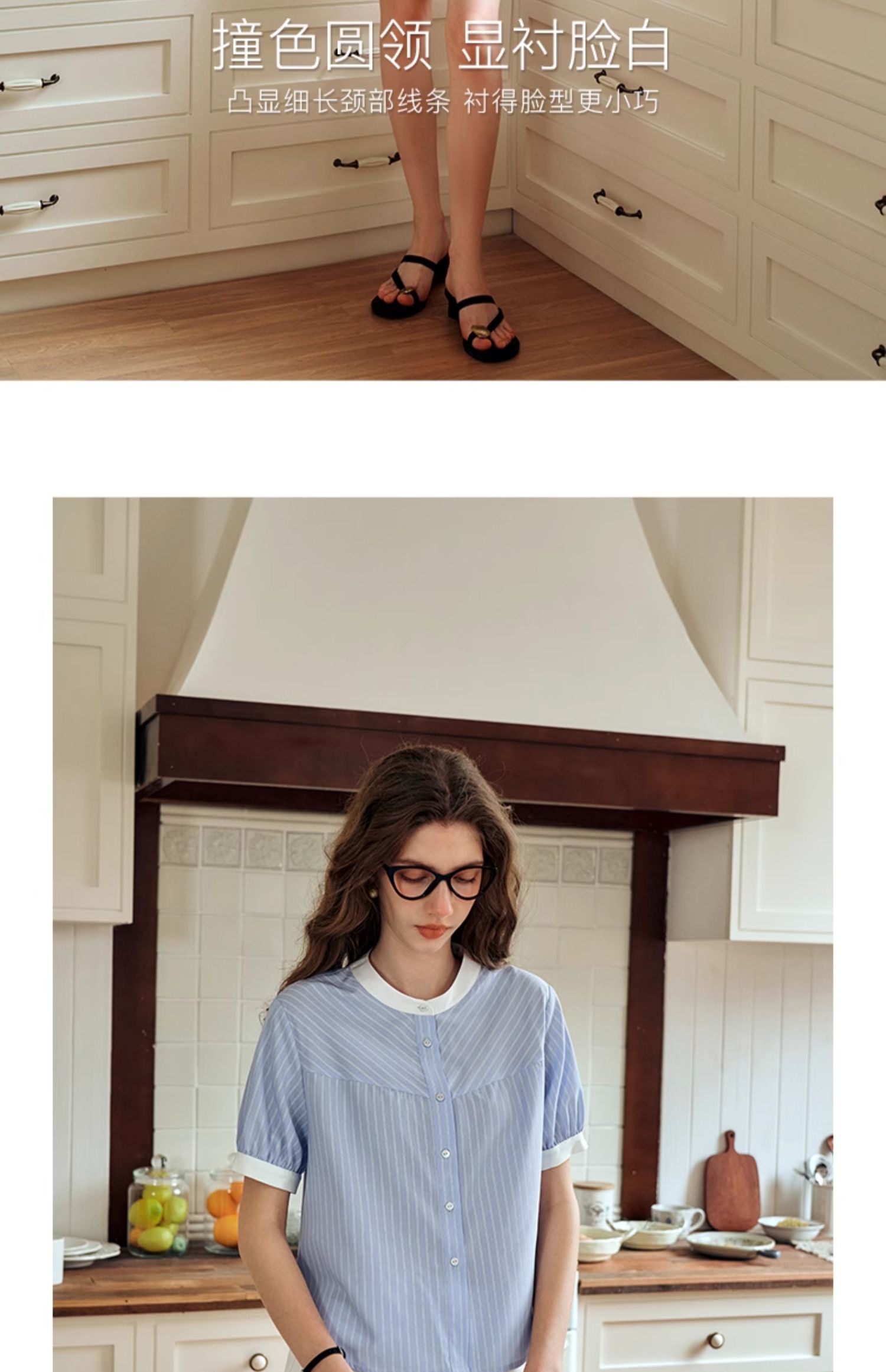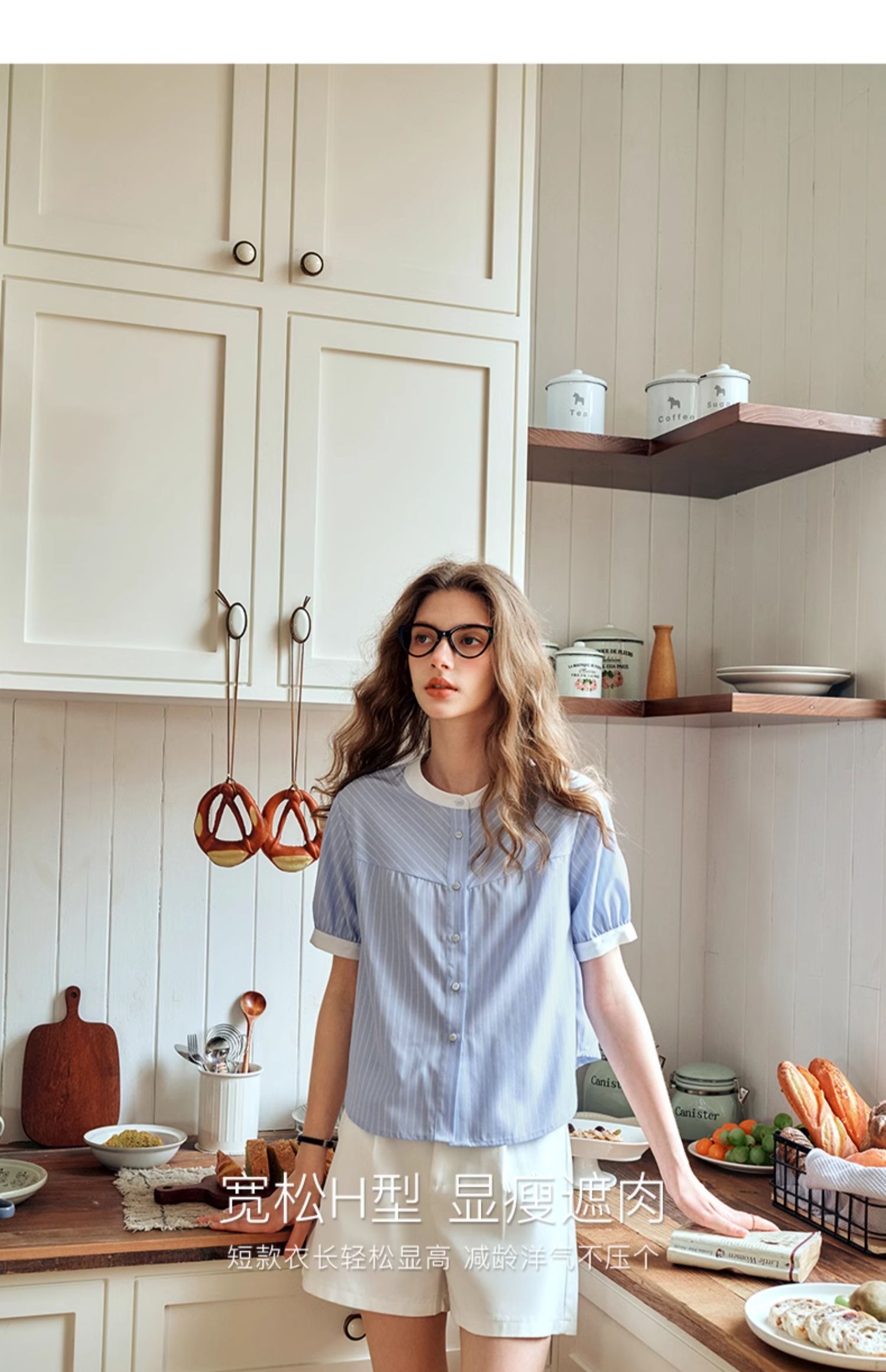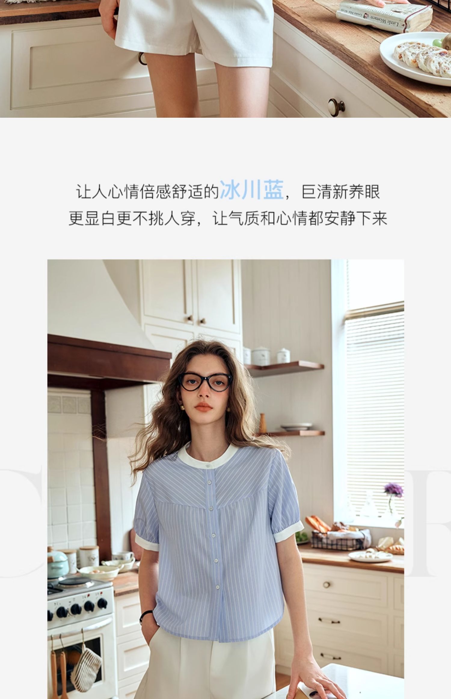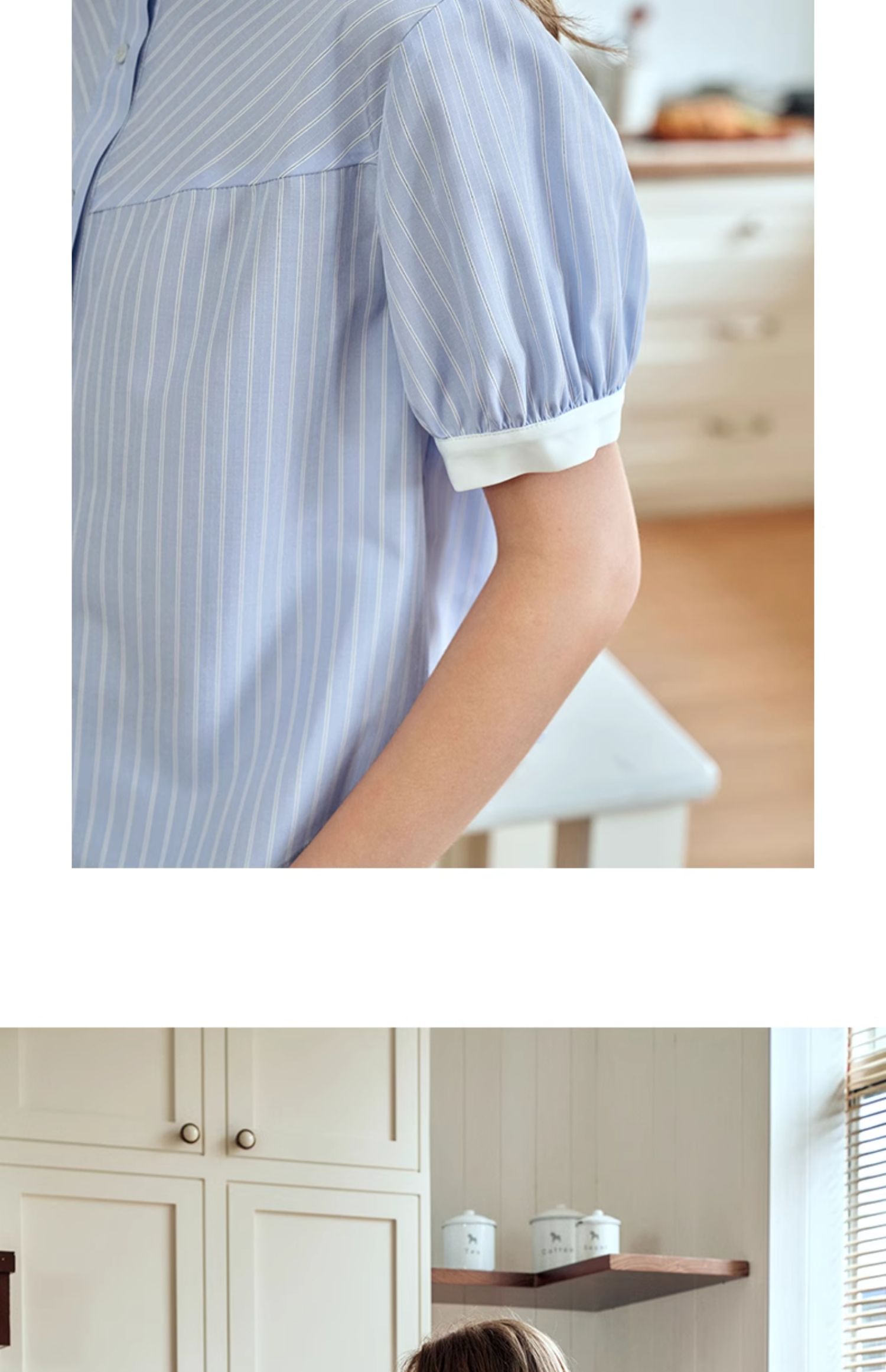 OLrain欧芮儿蓝色条纹衬衫女夏季2024年新款设计感通勤短袖上衣