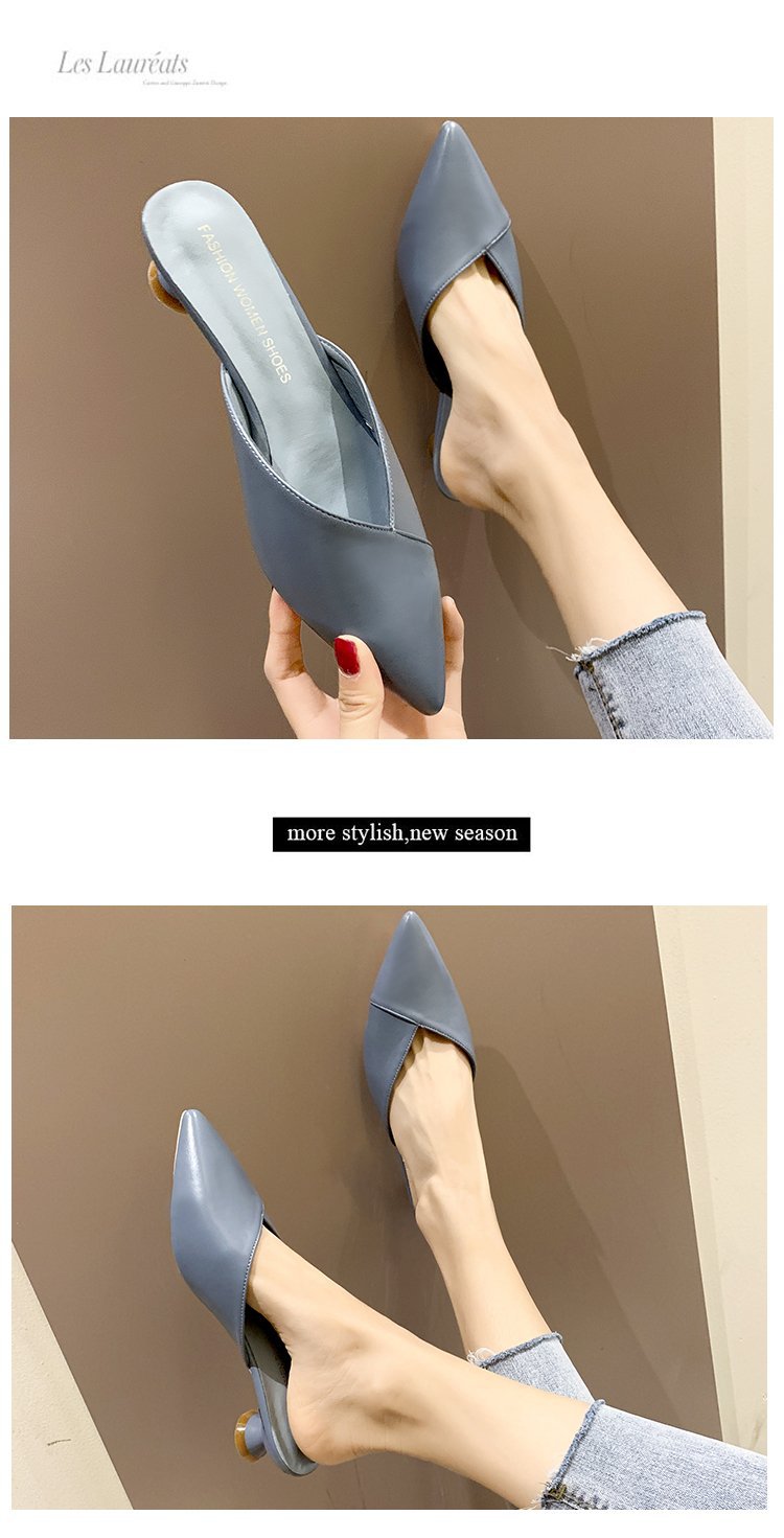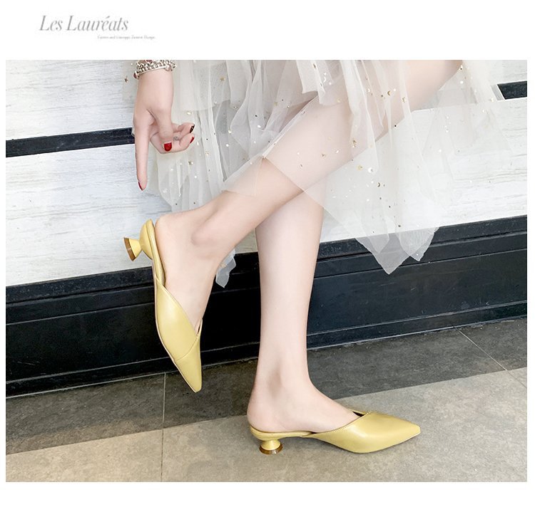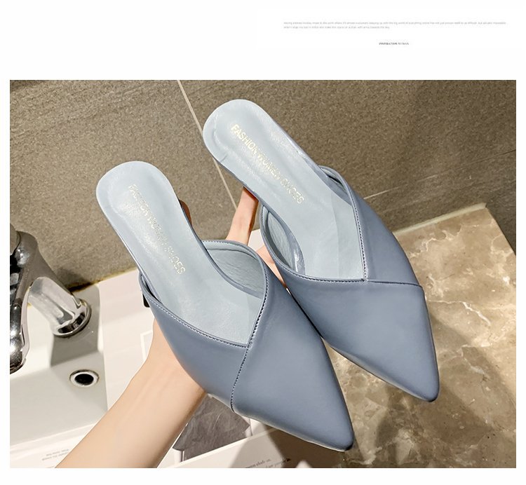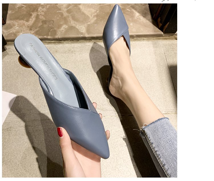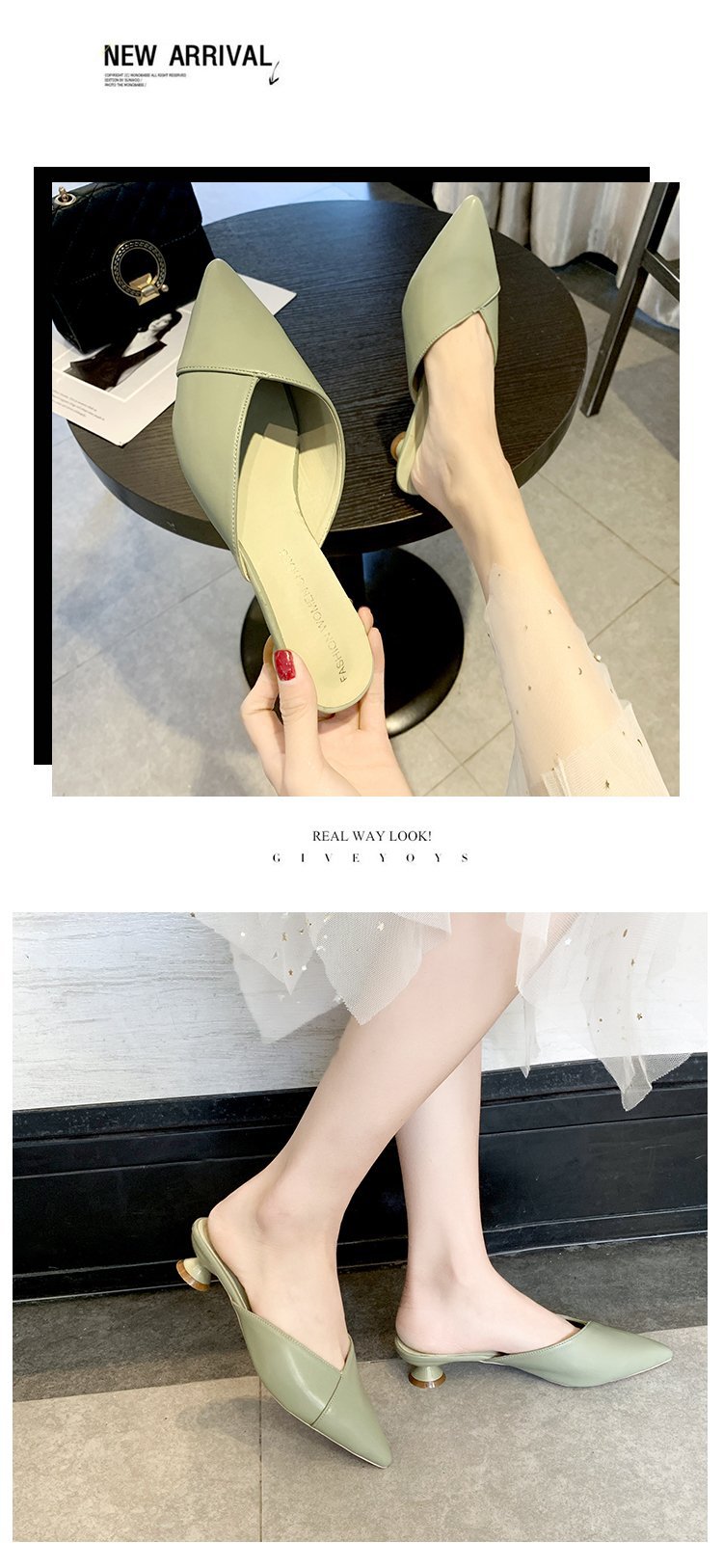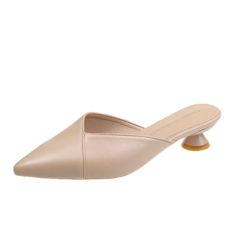 女鞋夏天韩版尖头包头外穿半拖女士酒杯跟凉拖鞋