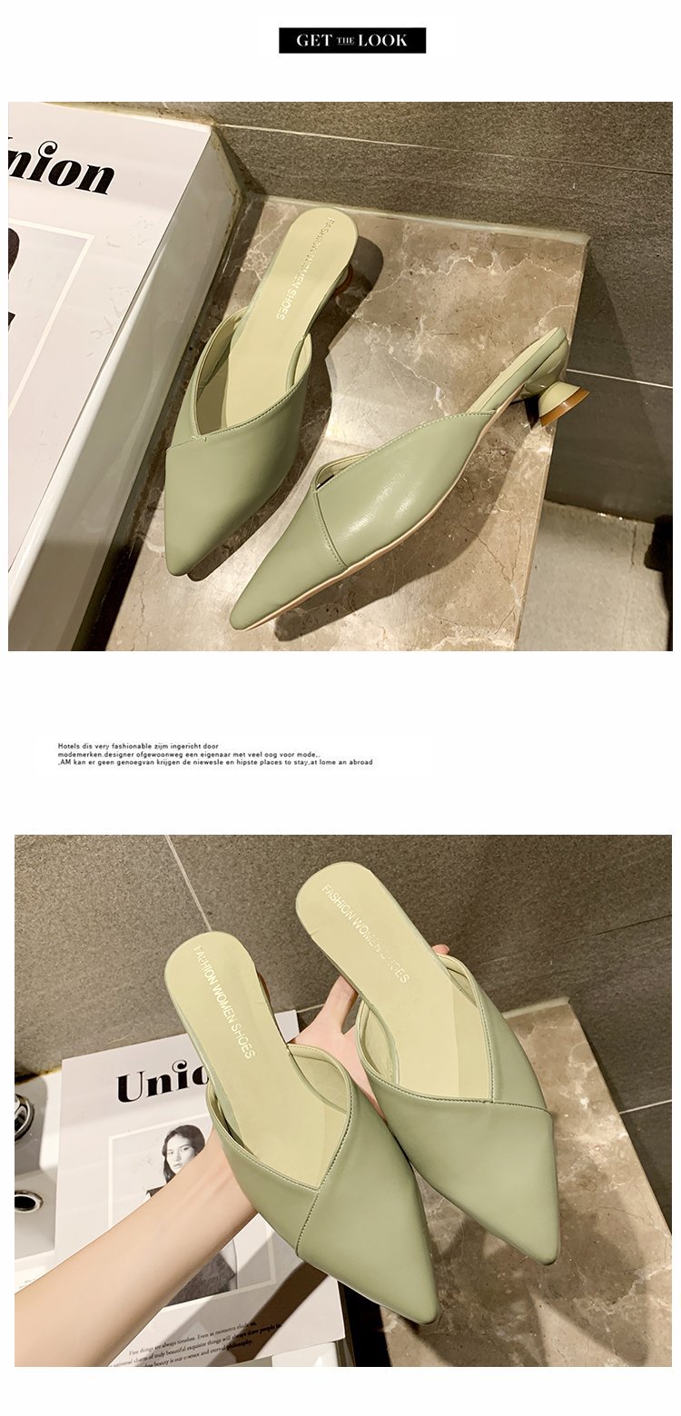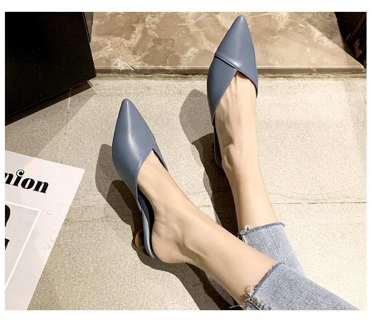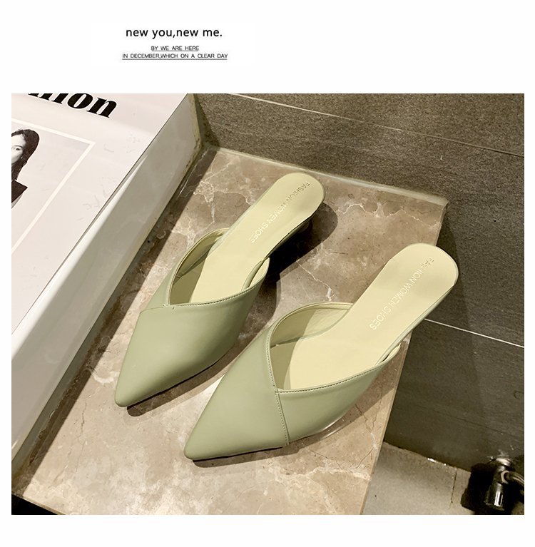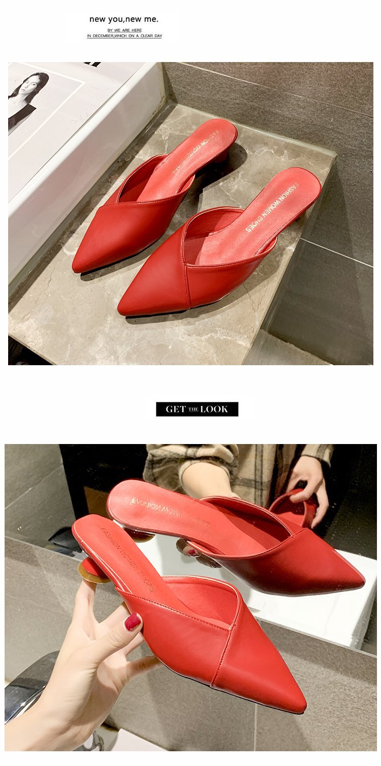 女鞋夏天韩版尖头包头外穿半拖女士酒杯跟凉拖鞋