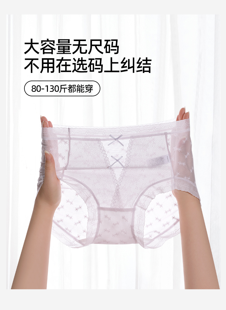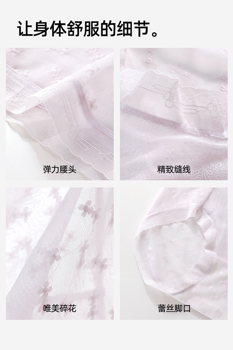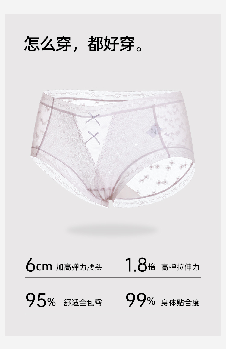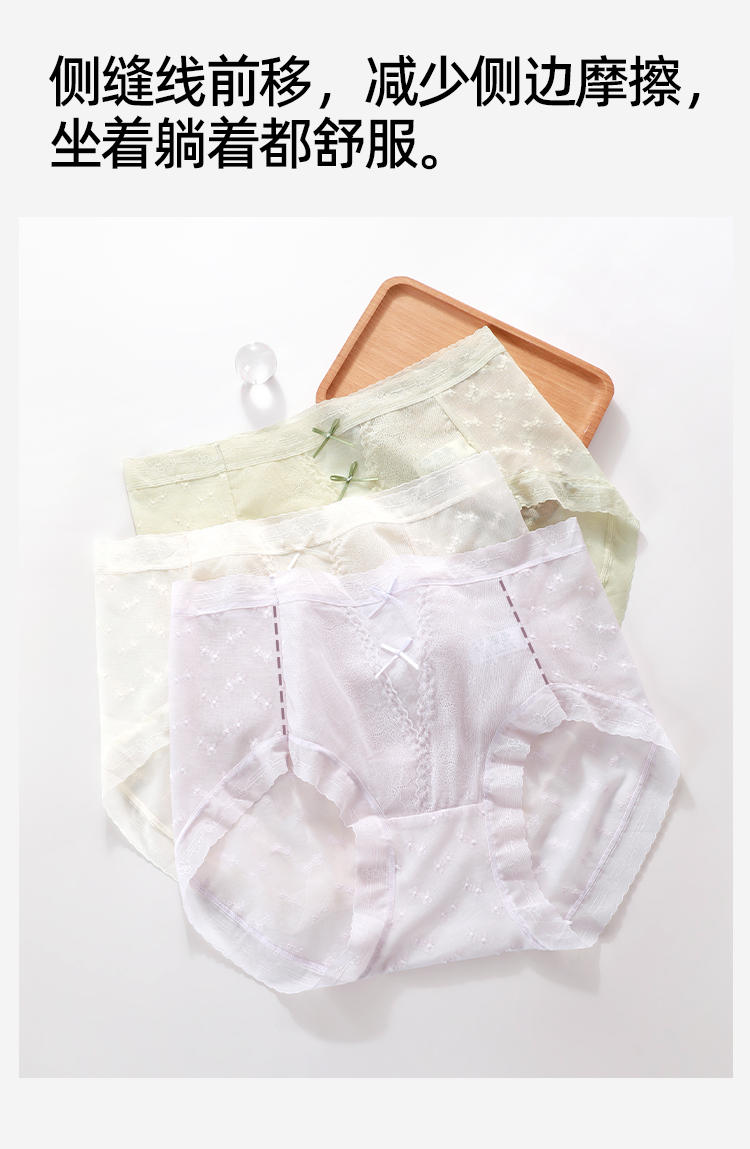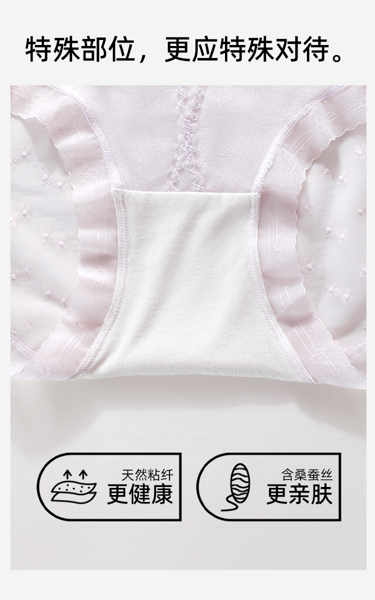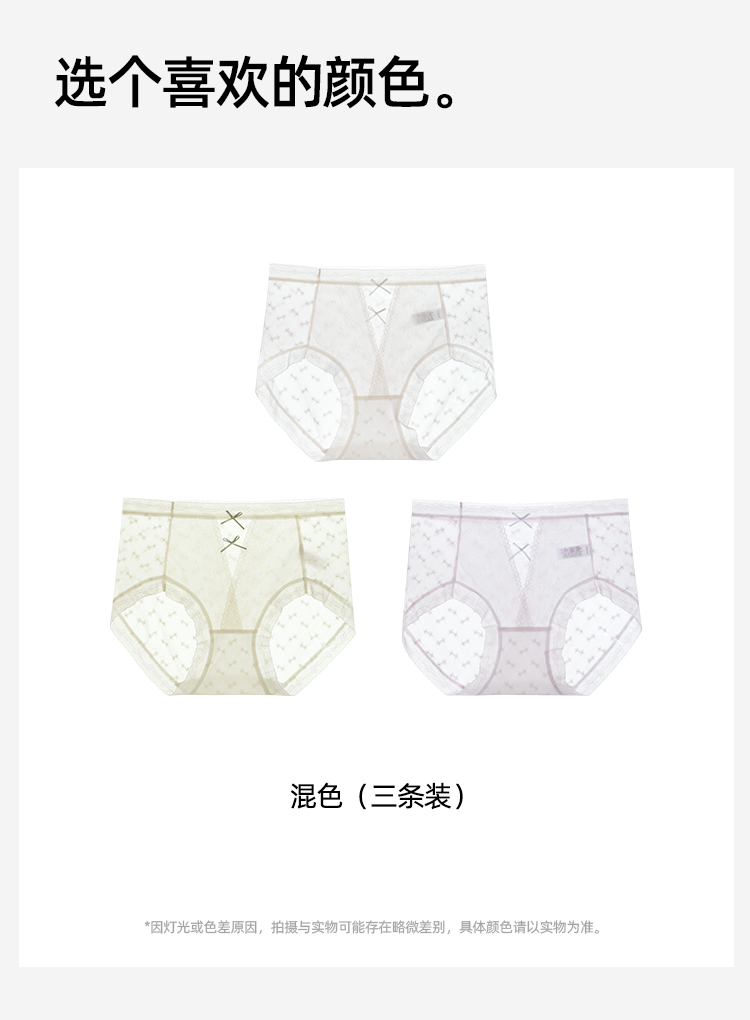 【3条装】熳洁儿 花漾蕾丝女士内裤半透性感中腰含桑蚕丝底档25262108