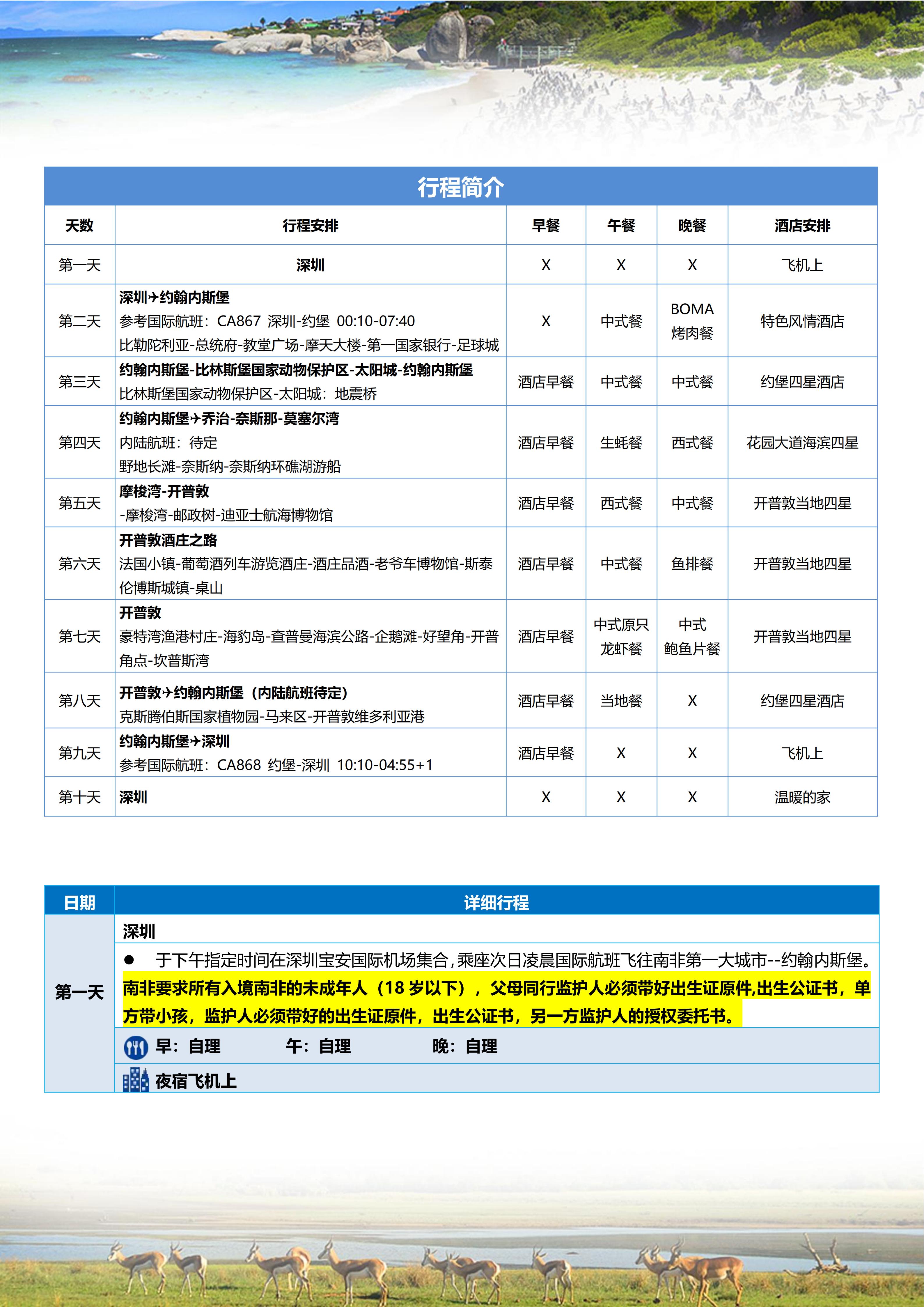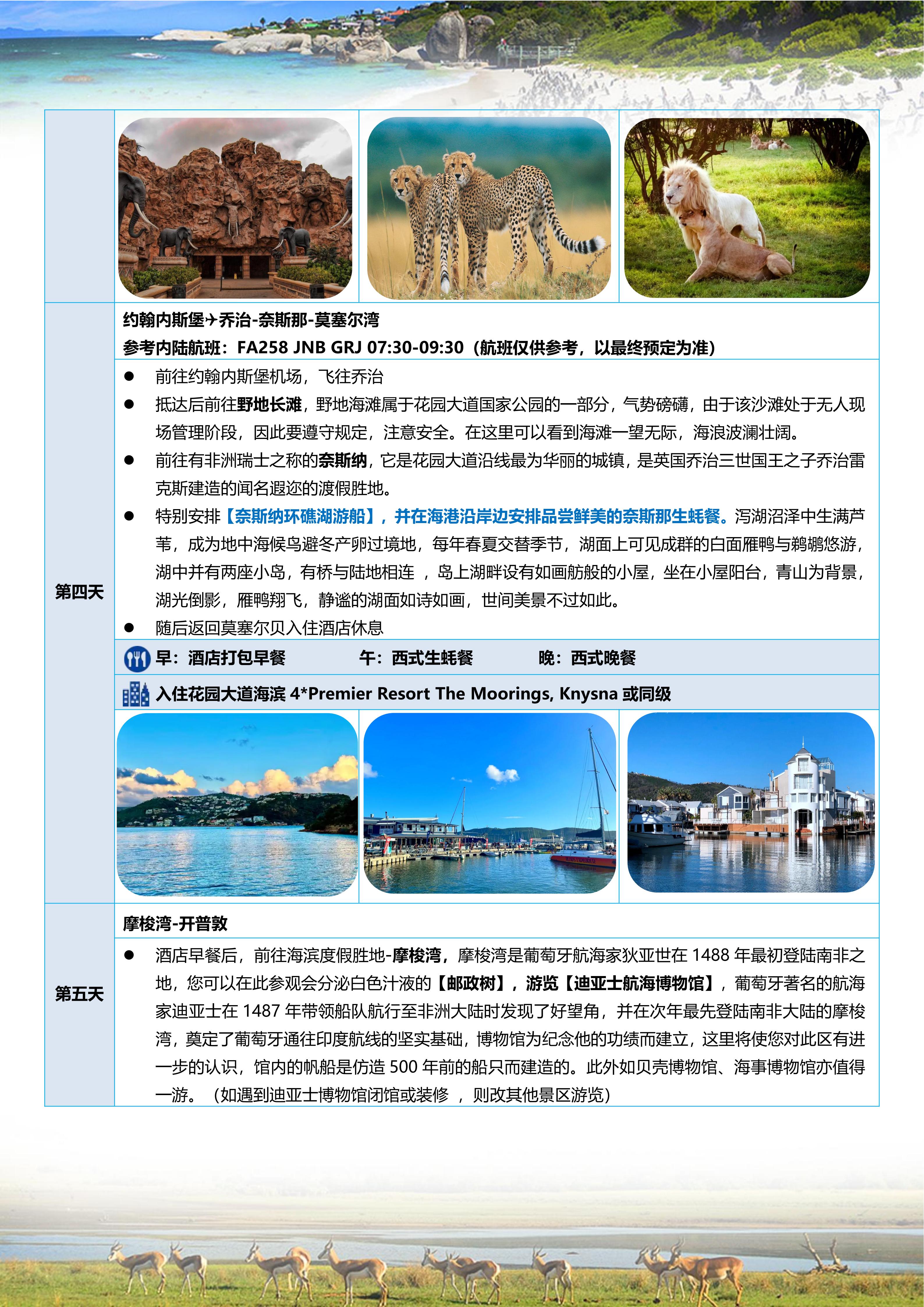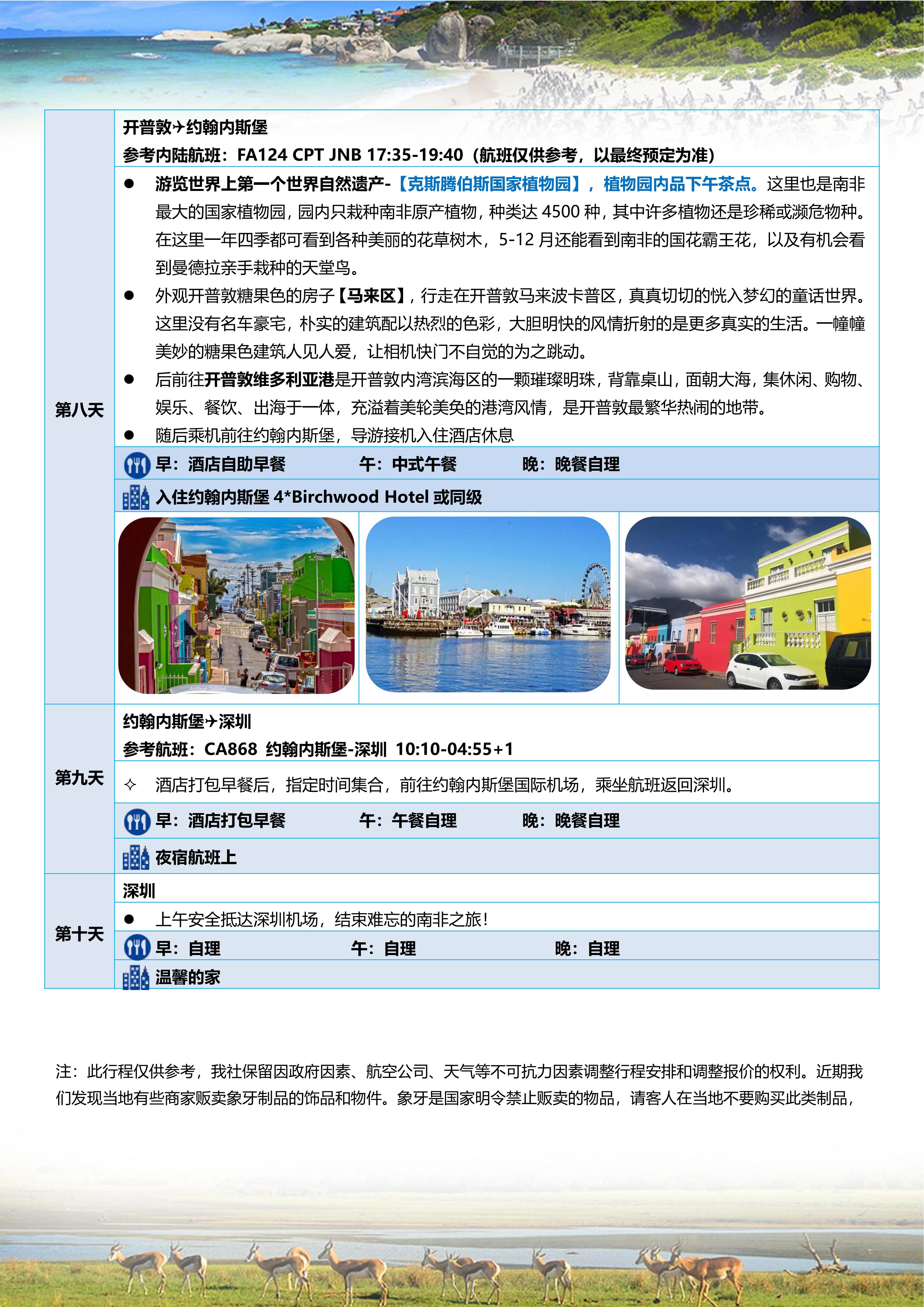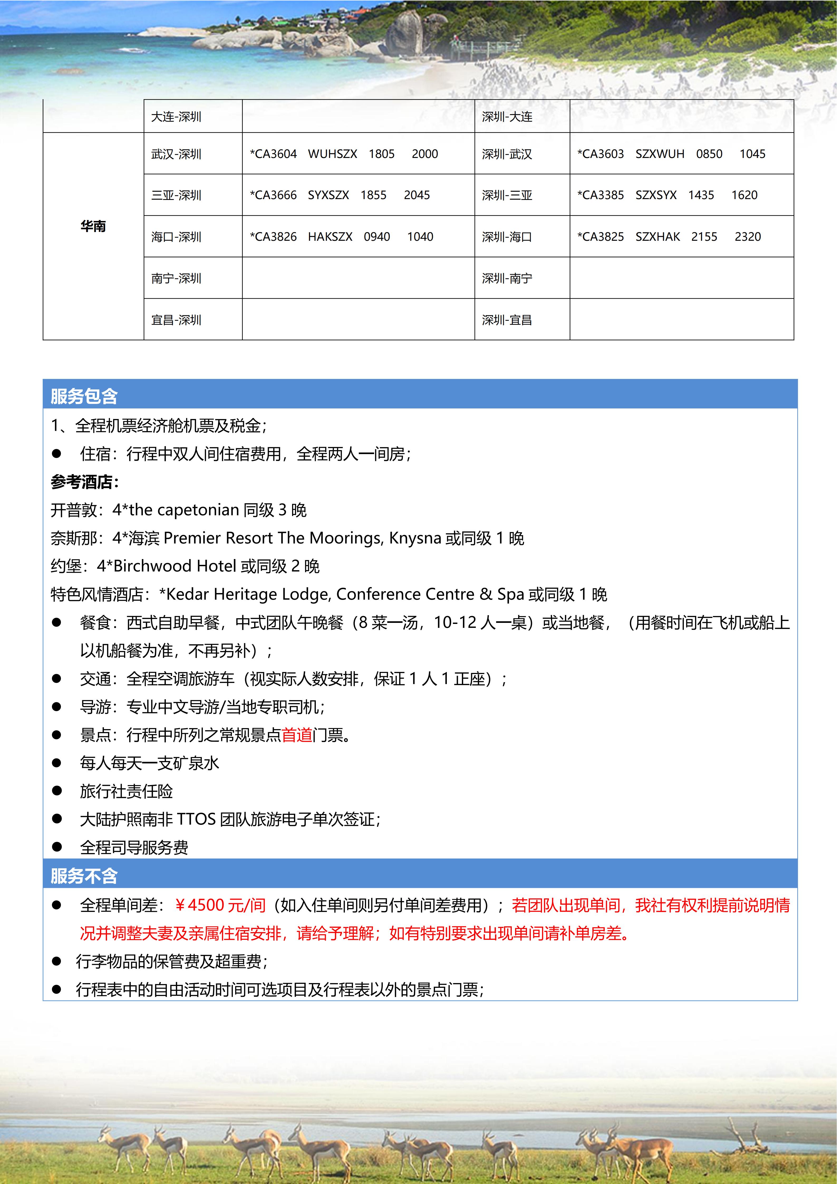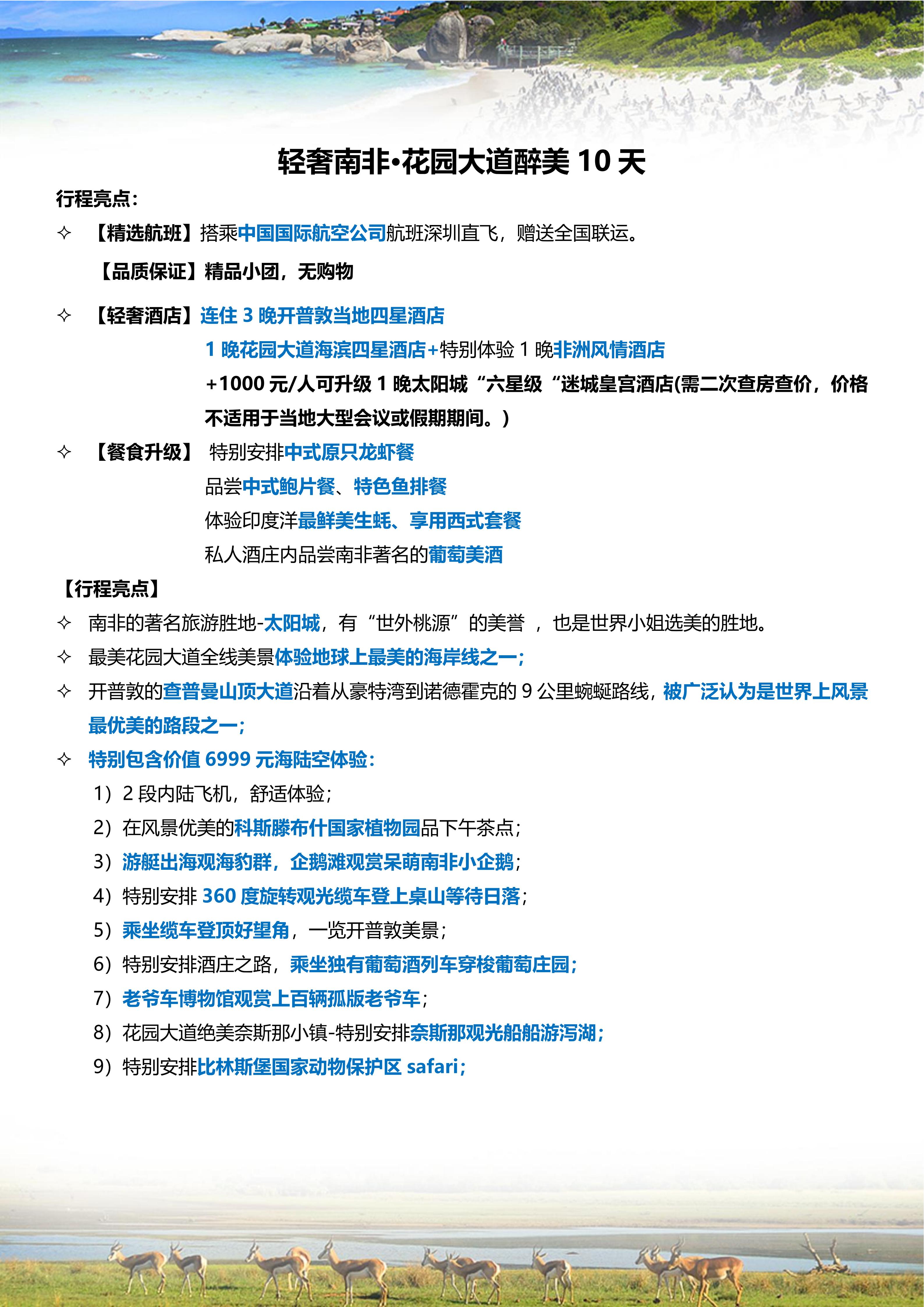 【春节、寒假】<南非·花园大道醉美10天-深圳直飞往返>游艇出海观海豹群、企鹅滩观赏呆萌南非小企鹅、360 度旋转观光缆车登上桌山、乘坐缆车登顶好望角、奈斯那观光船船游泻湖、比林斯堡