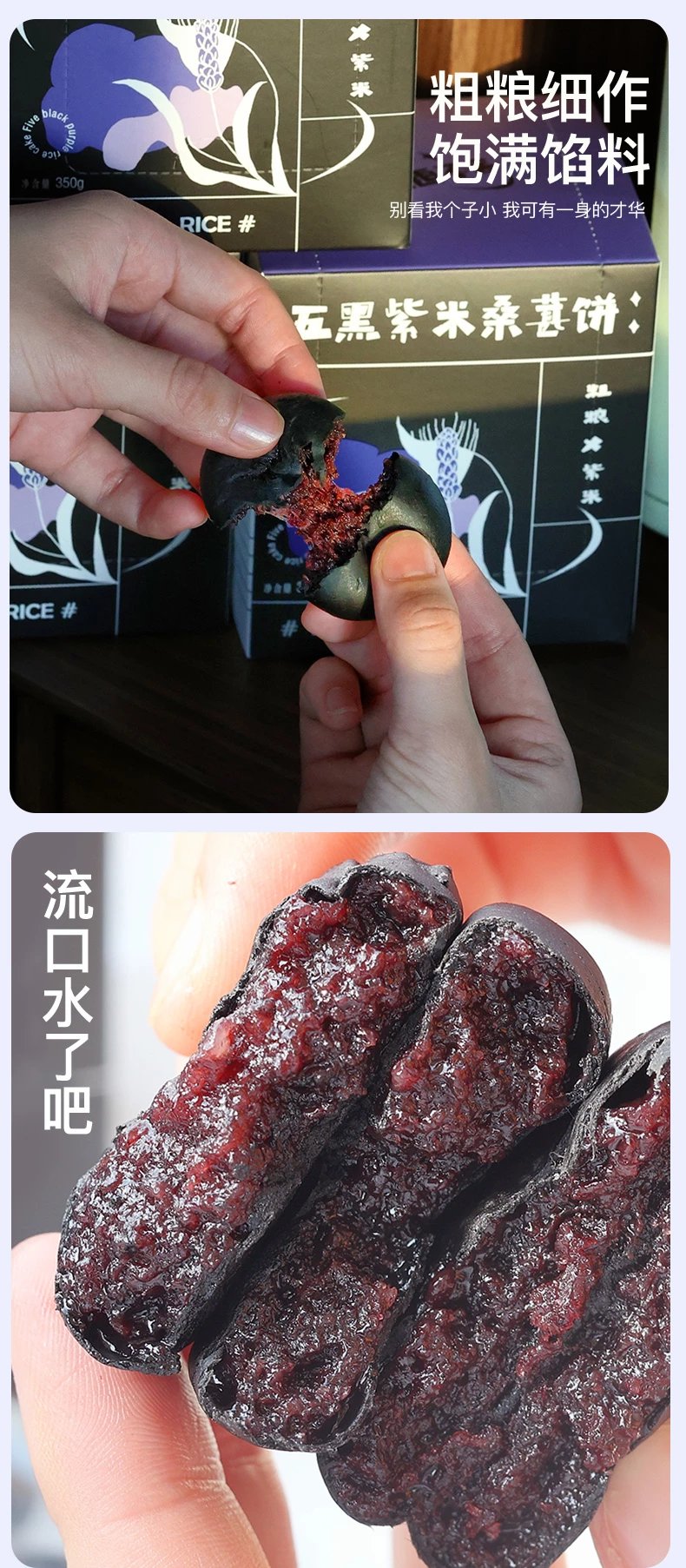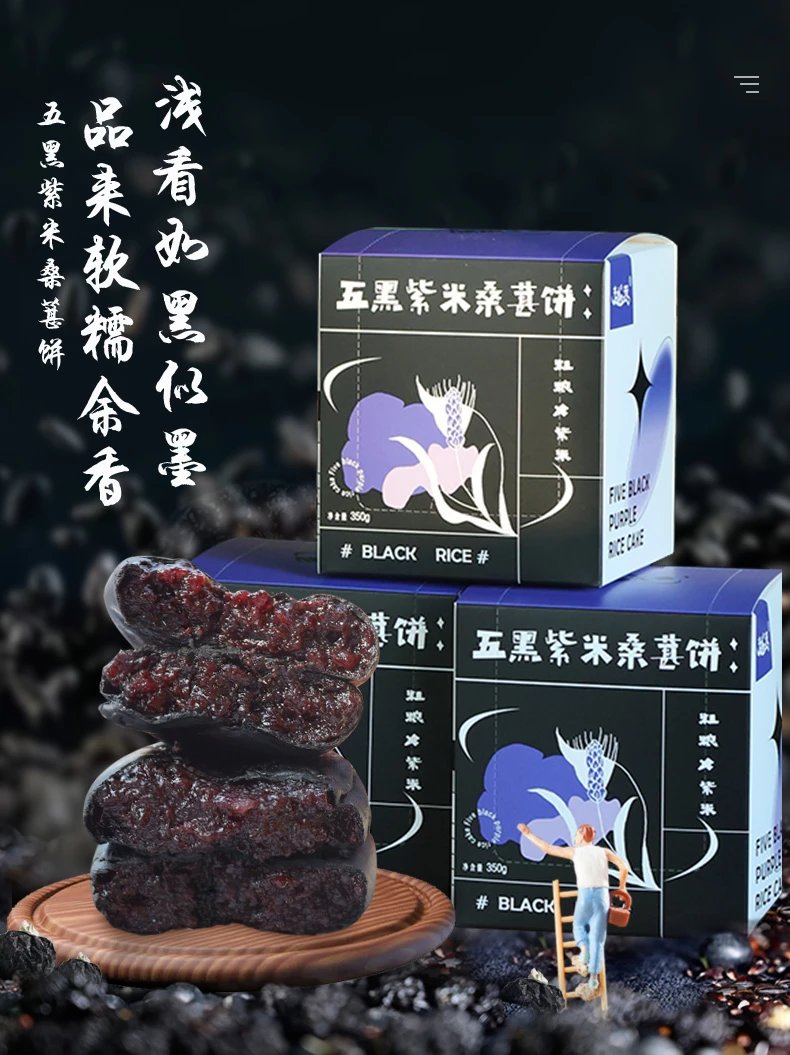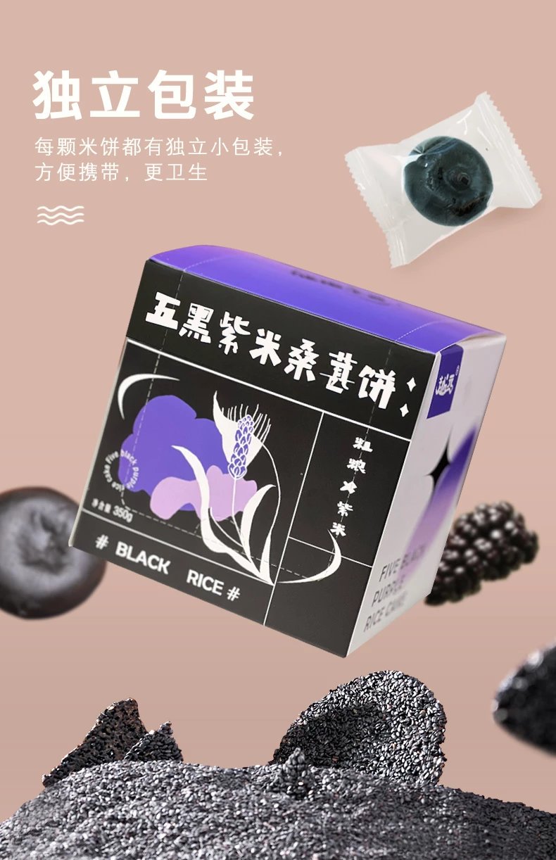 【品名】越远五黑桑葚紫米饼系列
