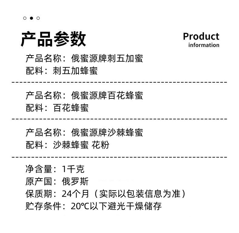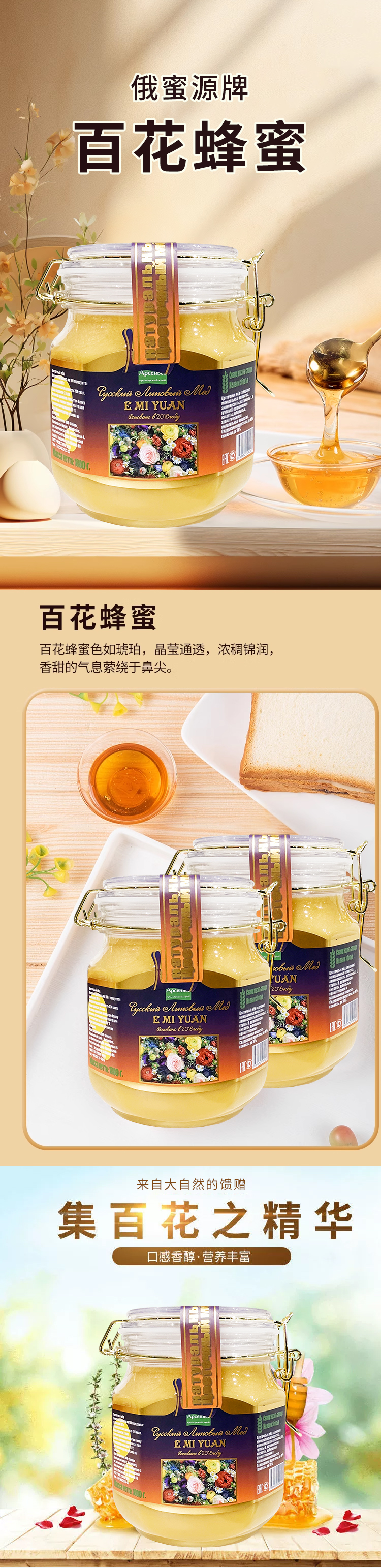 俄罗斯进口俄蜜源牌蜂蜜1000g【沙棘丨刺五加丨百花】