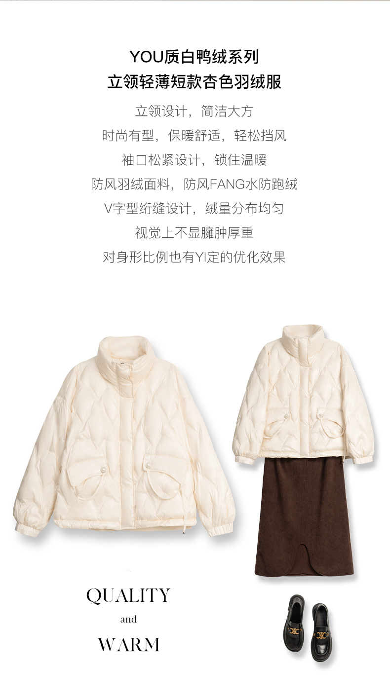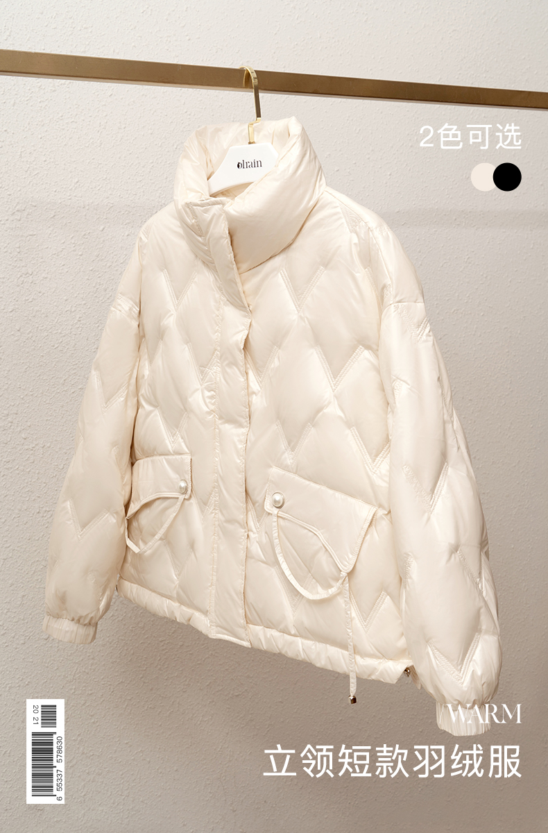 欧芮儿轻薄羽绒服女冬季2021年新款宽松时尚立领鸭绒设计感短外套