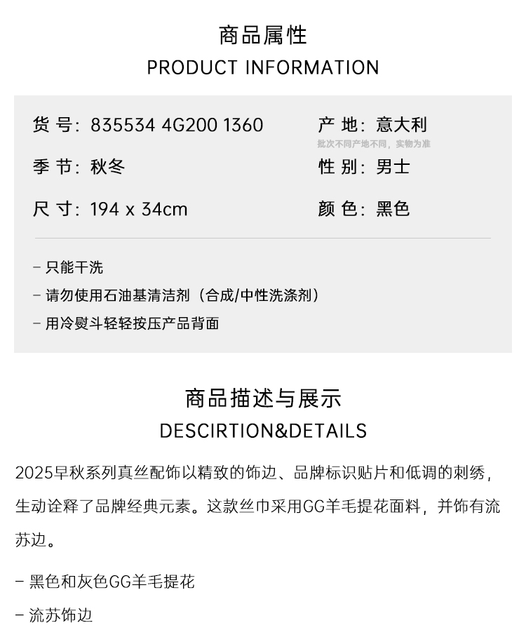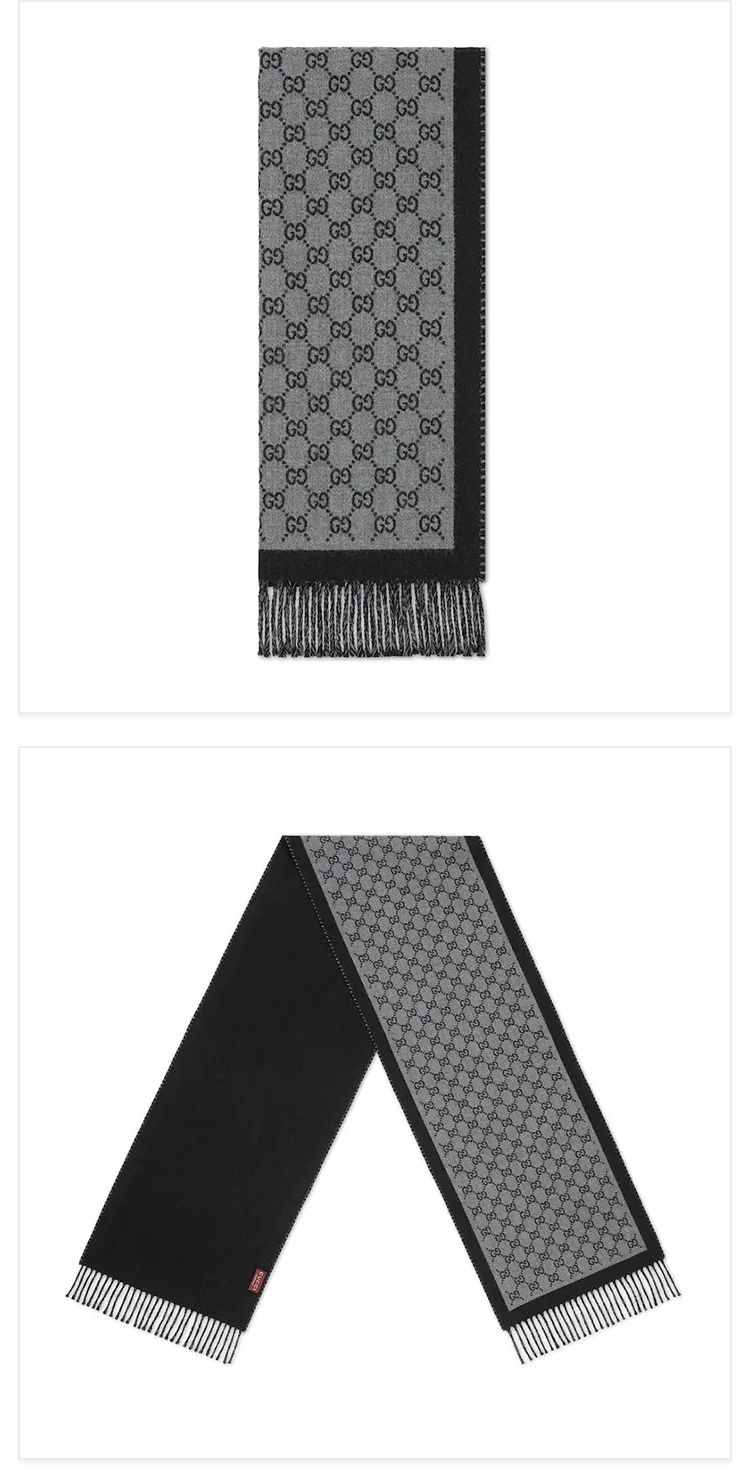 GUCCI 古驰 男士GG羊毛提花围巾 黑色 835534 4G200 1360