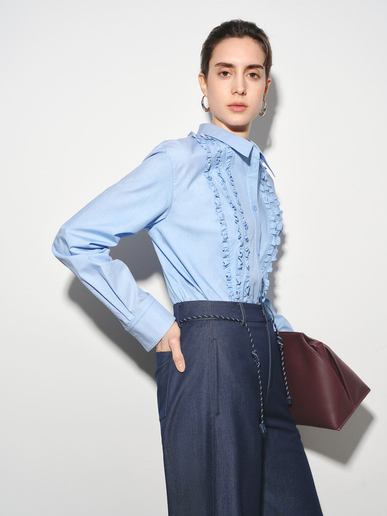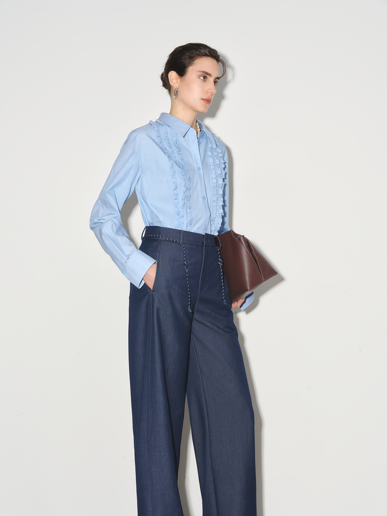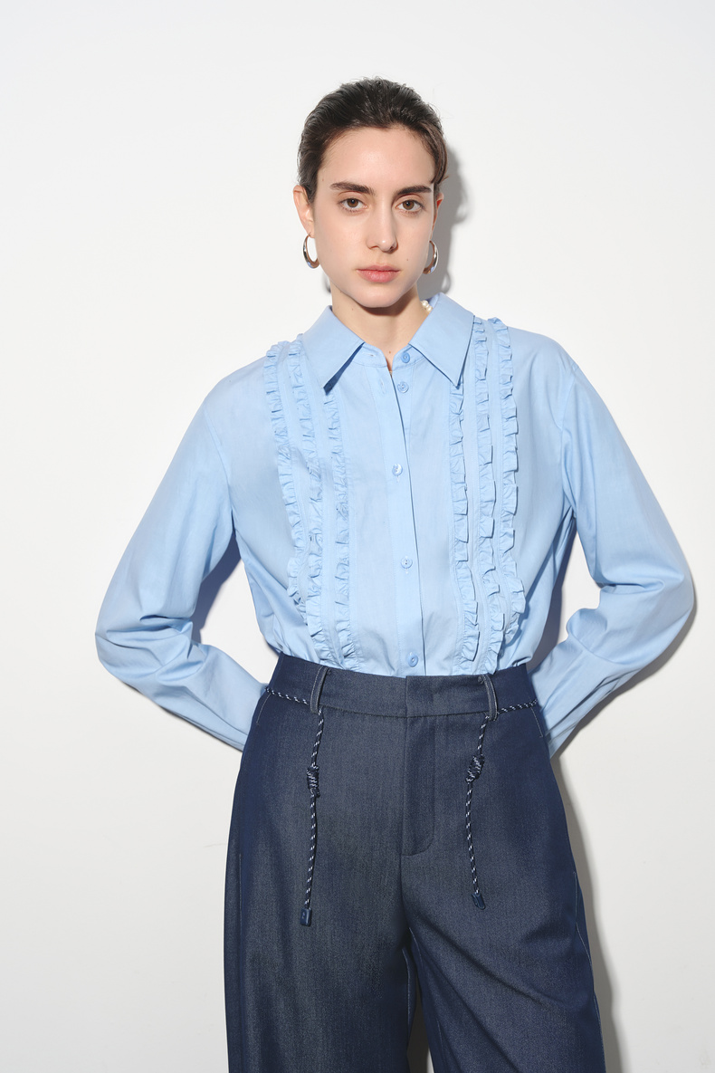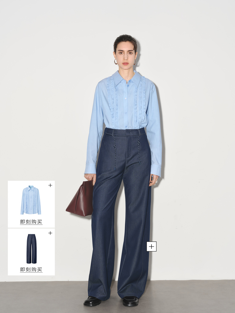 【商场同款】伊芙丽莱赛尔花边拼接通勤衬衫1G1120261