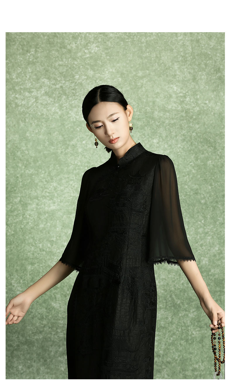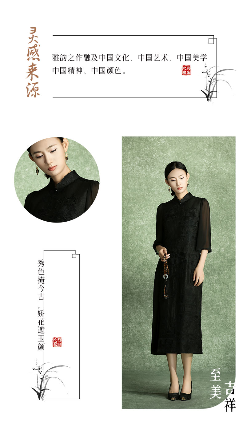 吉祥衣家中式国风高定真丝裙子气质显瘦修身女装空蒙月转廊连衣裙