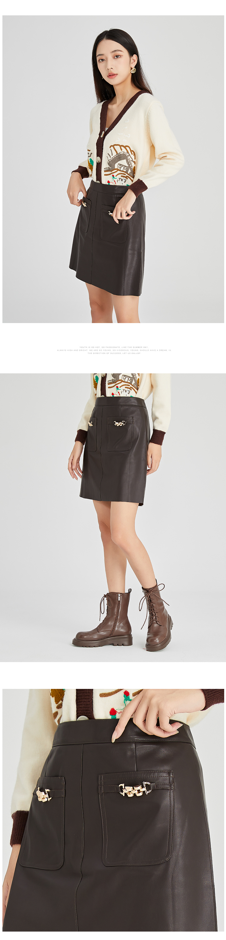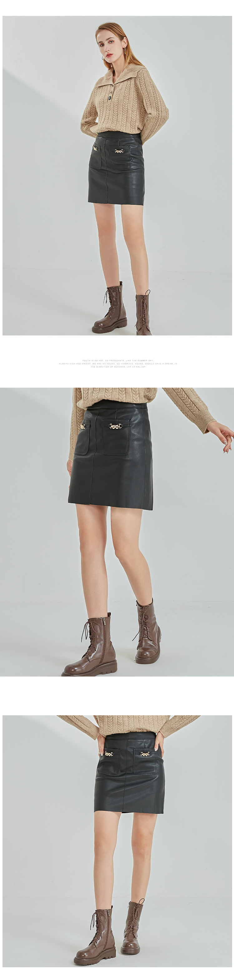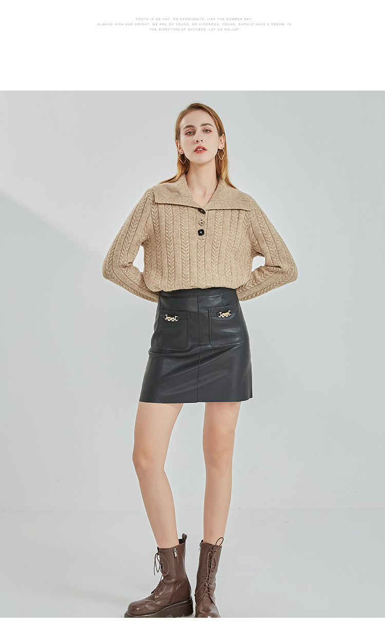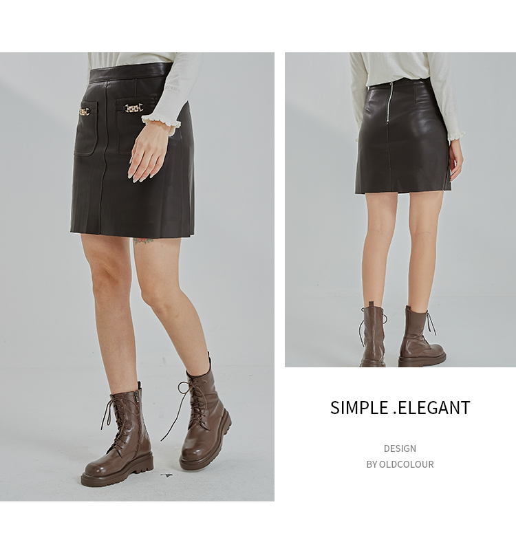 oldcolour2022冬季新款时尚气质修身百搭高腰包臀皮裙N41061152