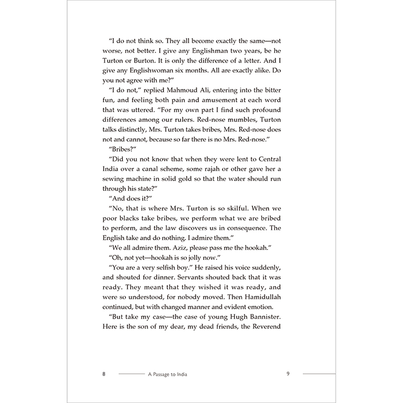 《印度之行》是教育部《普通高等学校本科外国语言文学类专业教学指南(英语类)》指定的英语专业经典必读丛书中的一本,是英国小说家E. M. 福斯特的代表作;它深刻揭示和批判了种族主义和殖民主义,极富象征意味与哲理深度,被公认为二十世纪伟大的文学巨著之一。小说以印度城市为背景,情节由治安法官的母亲与未婚妻阿拉德到印度去看他而展开,她们在游览山洞时,阿拉德在幽暗的山洞里恍惚感到有人侮辱了她,从而引起纠纷,使印度医生阿齐斯蒙受了不白之冤。这部小说展示了英国与其殖民地印度之间不可逾越的鸿沟,充满辛辣的讽刺、优美的抒情、含义深远的象征和富有哲理的预见,被认为是英国20世纪最后一本成功的传统小说。