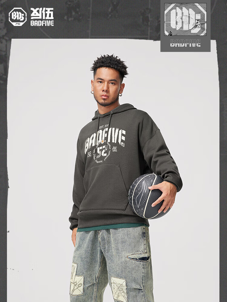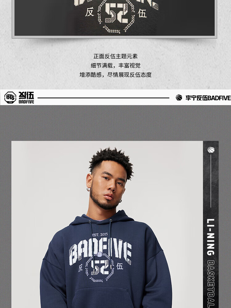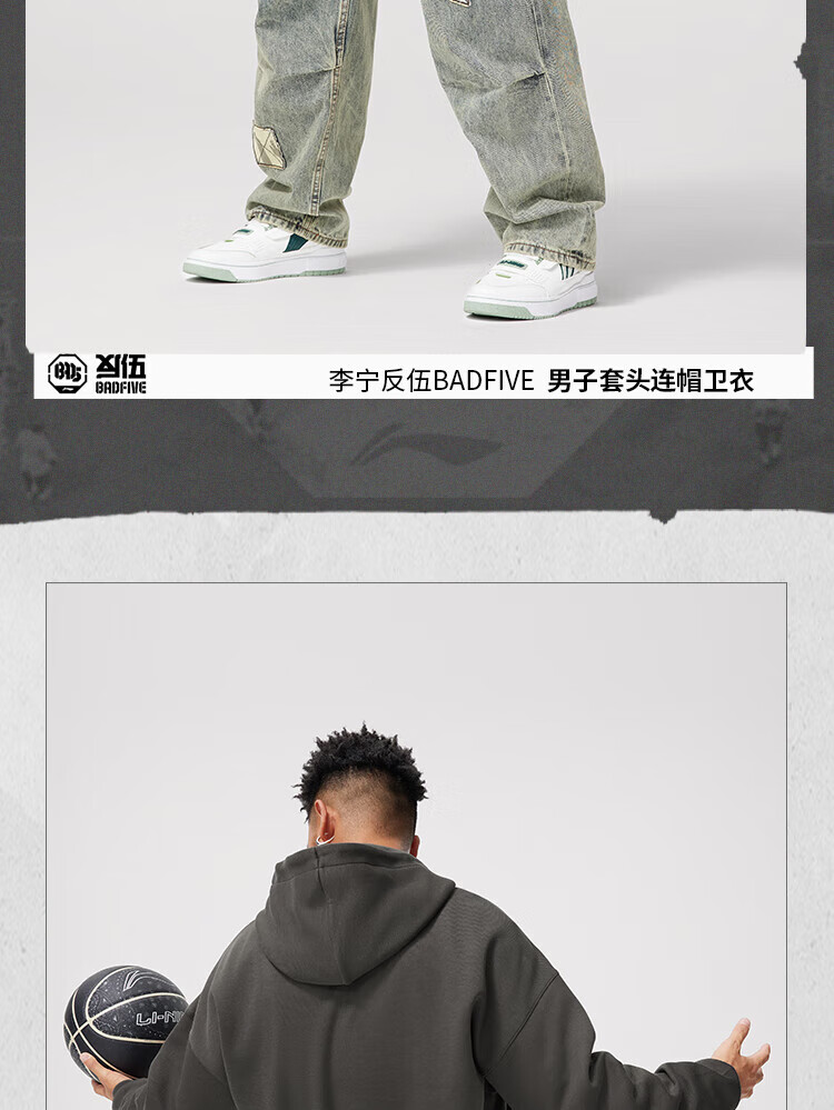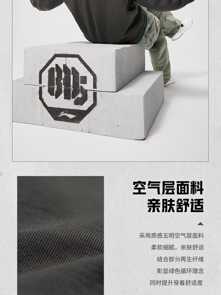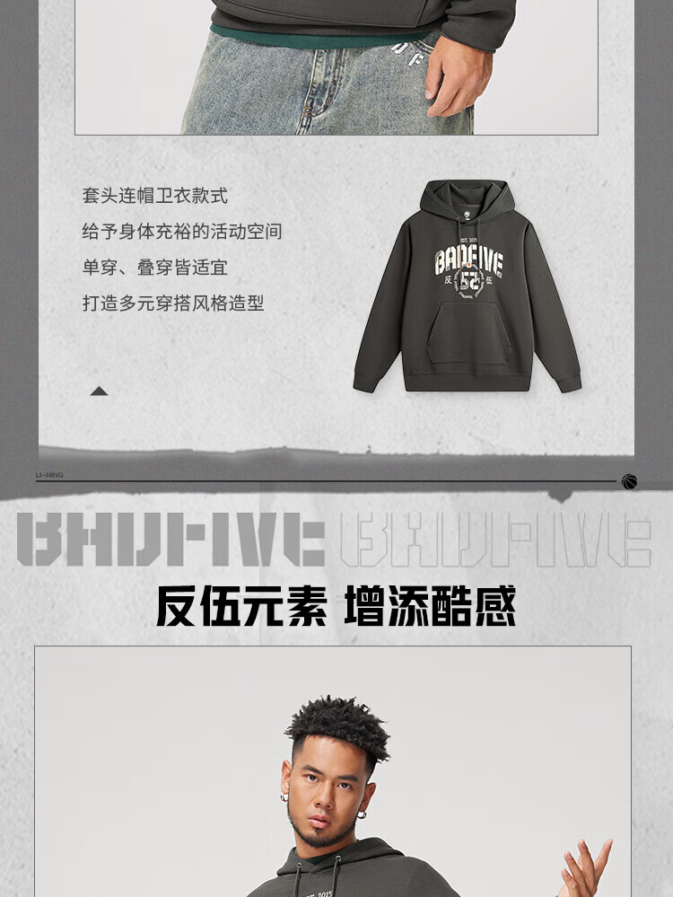 李宁反伍运动卫衣男潮流宽松套头连帽上衣AWDU263