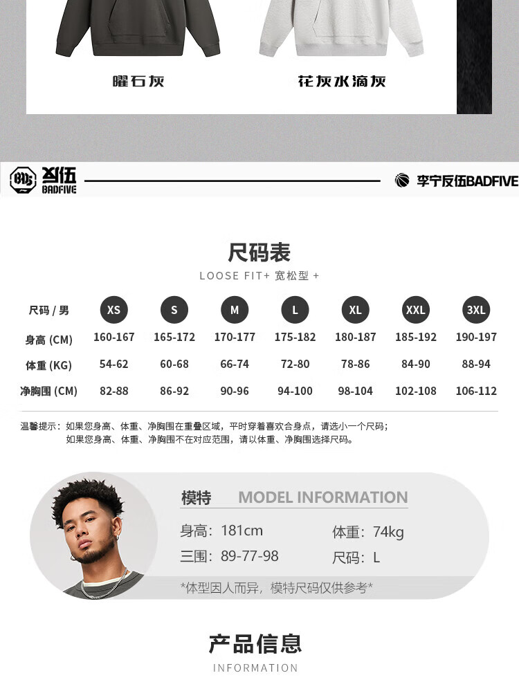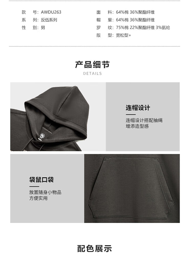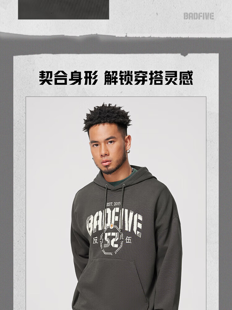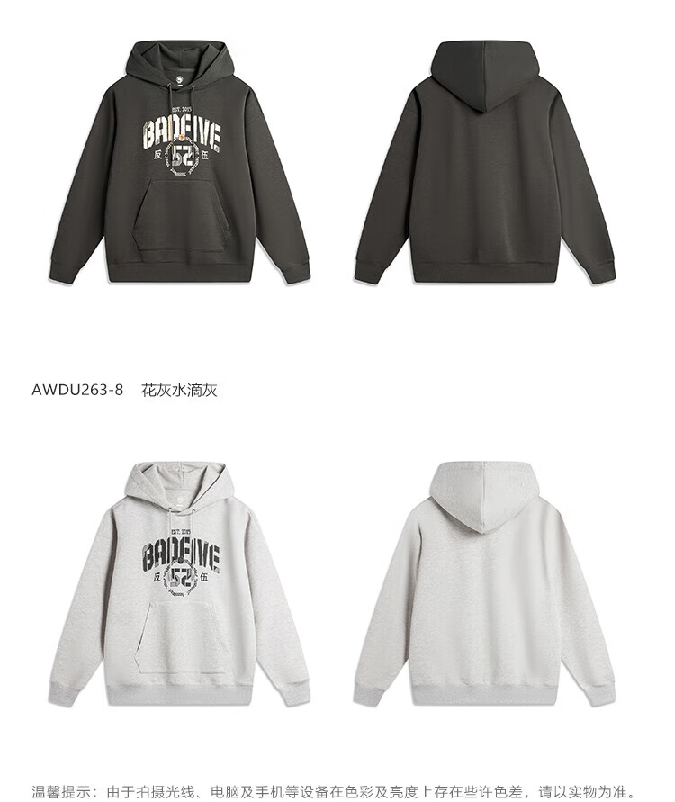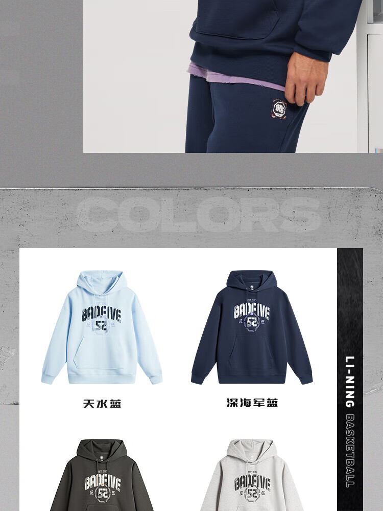 李宁反伍运动卫衣男潮流宽松套头连帽上衣AWDU263