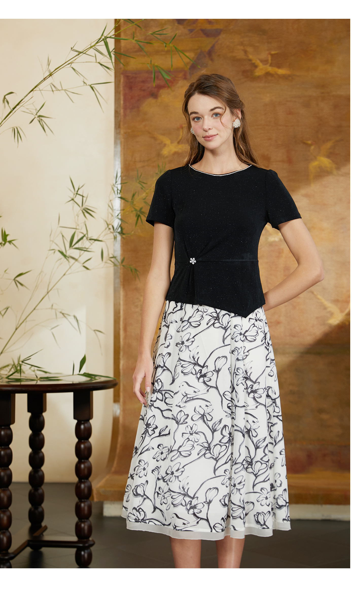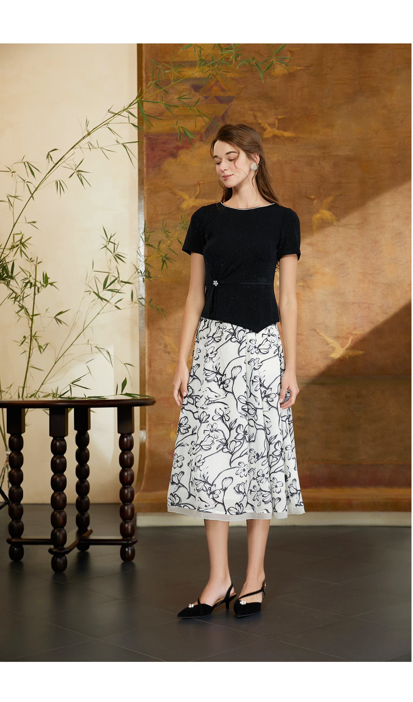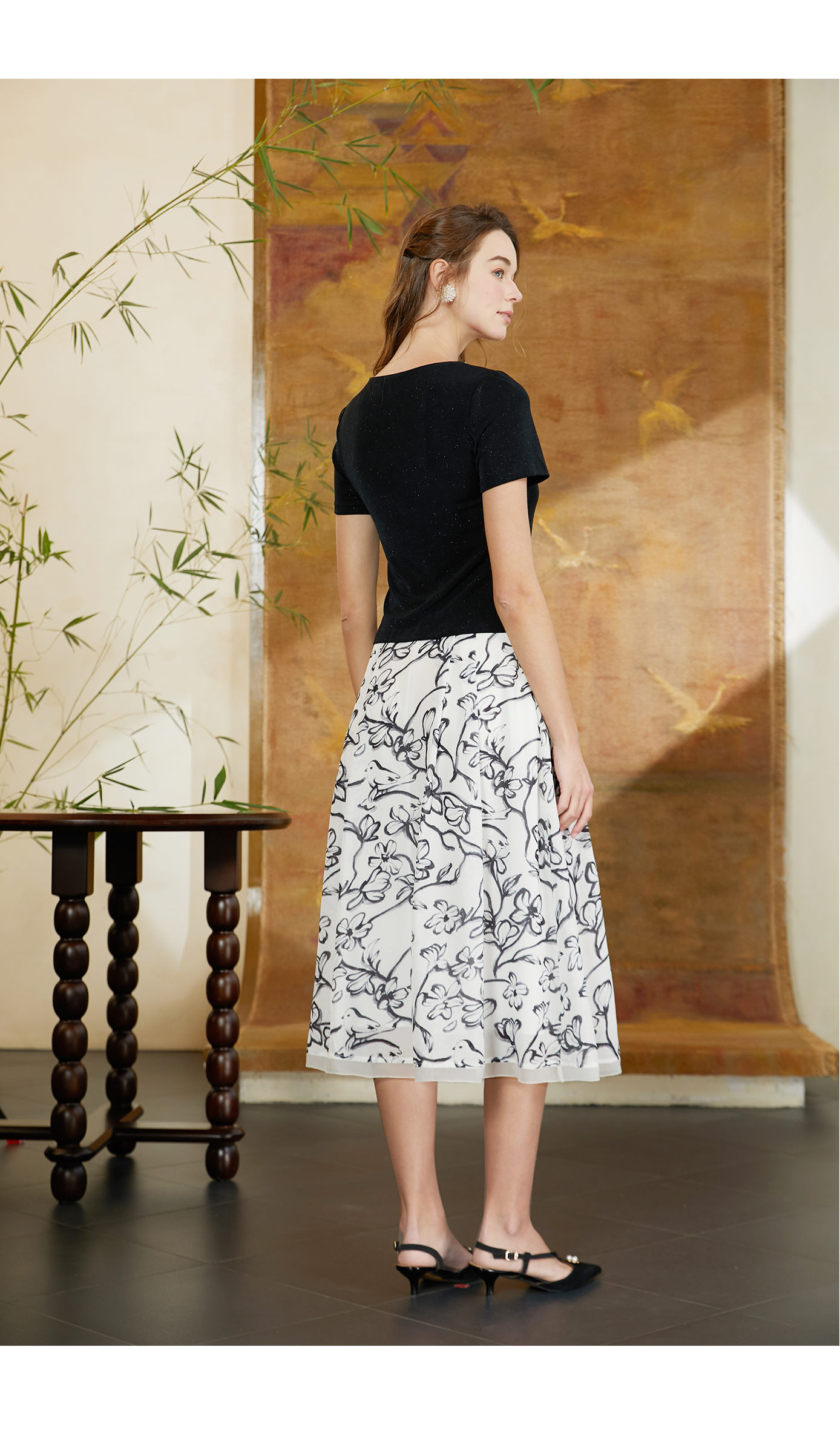 司歌水墨印花优雅伞裙C911013X