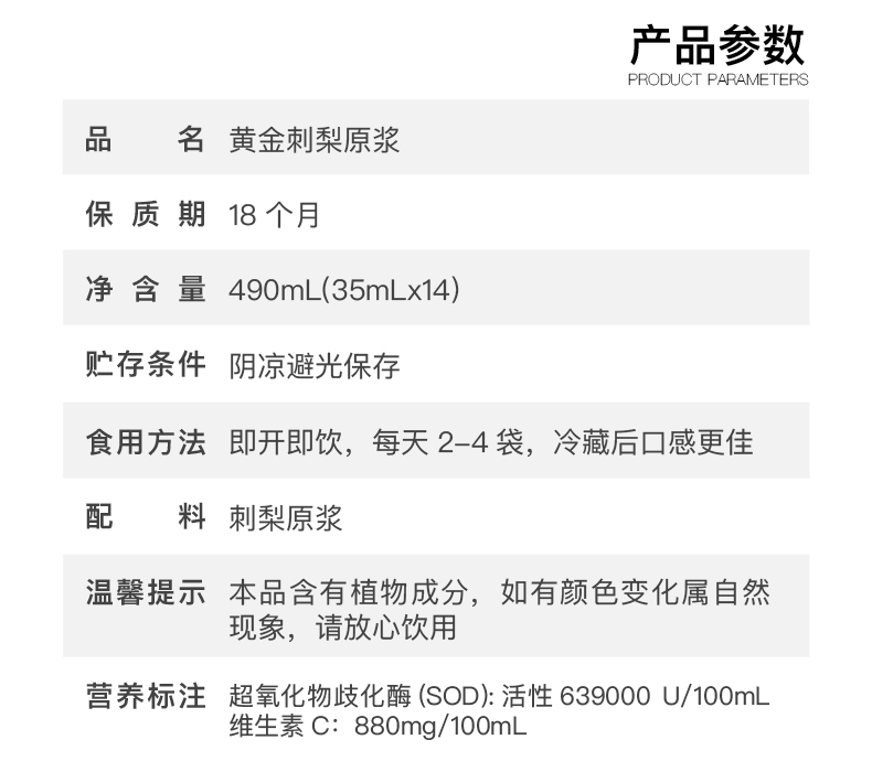 [拍2得3同款]黄金刺梨原浆 | 物理萃取贵州刺梨果蔬汁浆原浆果汁每盒14袋入。含维生素C及超氧化物歧化酶(SOD)