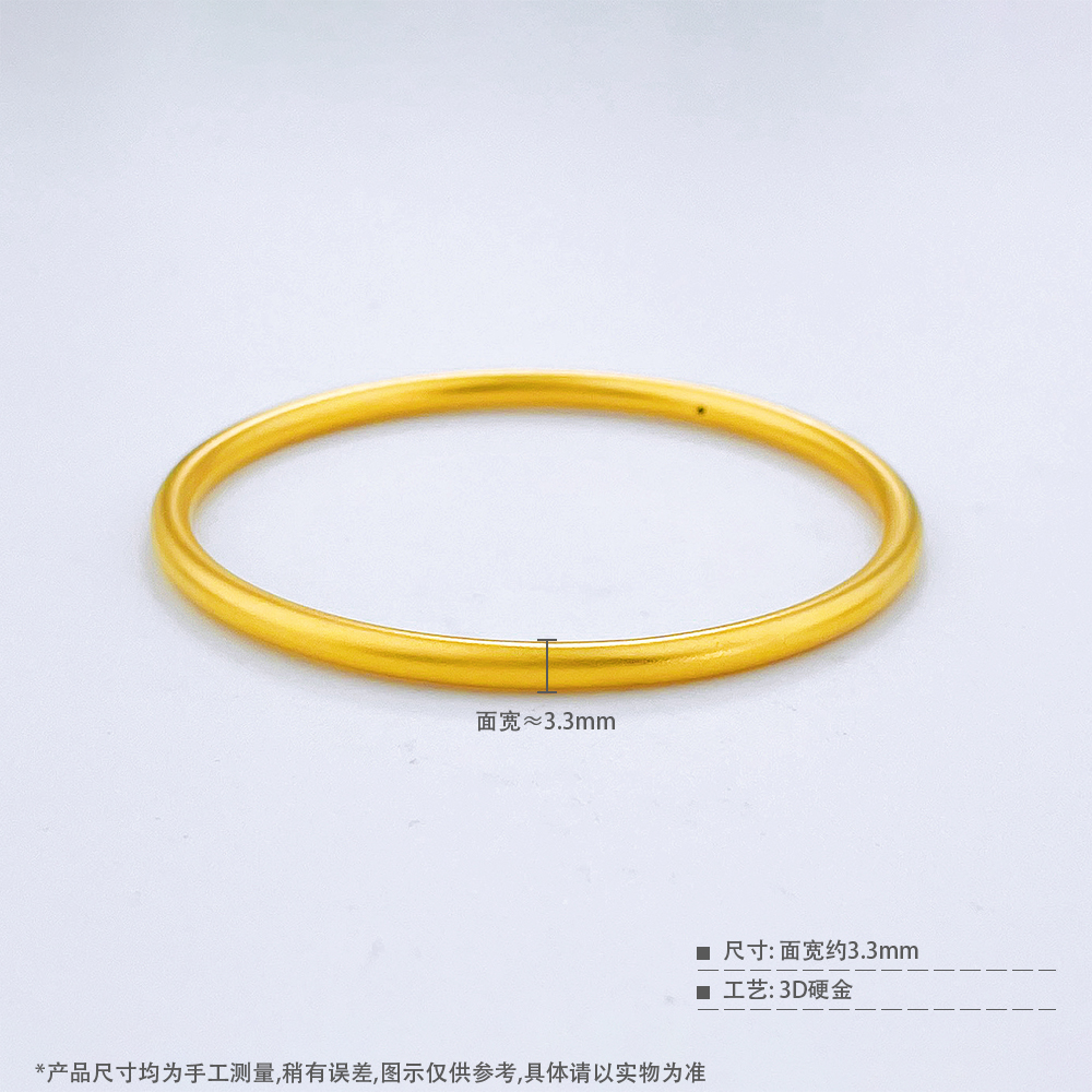 【限时克减128元】足金 3D硬金固口空心硬金仿古法素圈手镯圆棍手镯(V3DSZ00001-1)(预售产品下单后不退款不退货不换货不补差价)(预售产品下单后不退款不退货不换货不补差价)