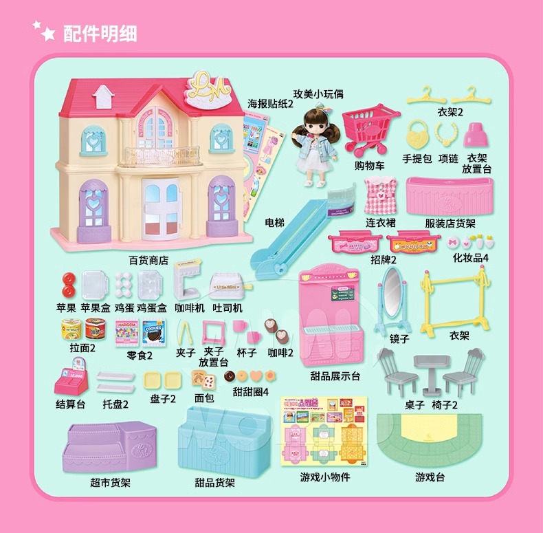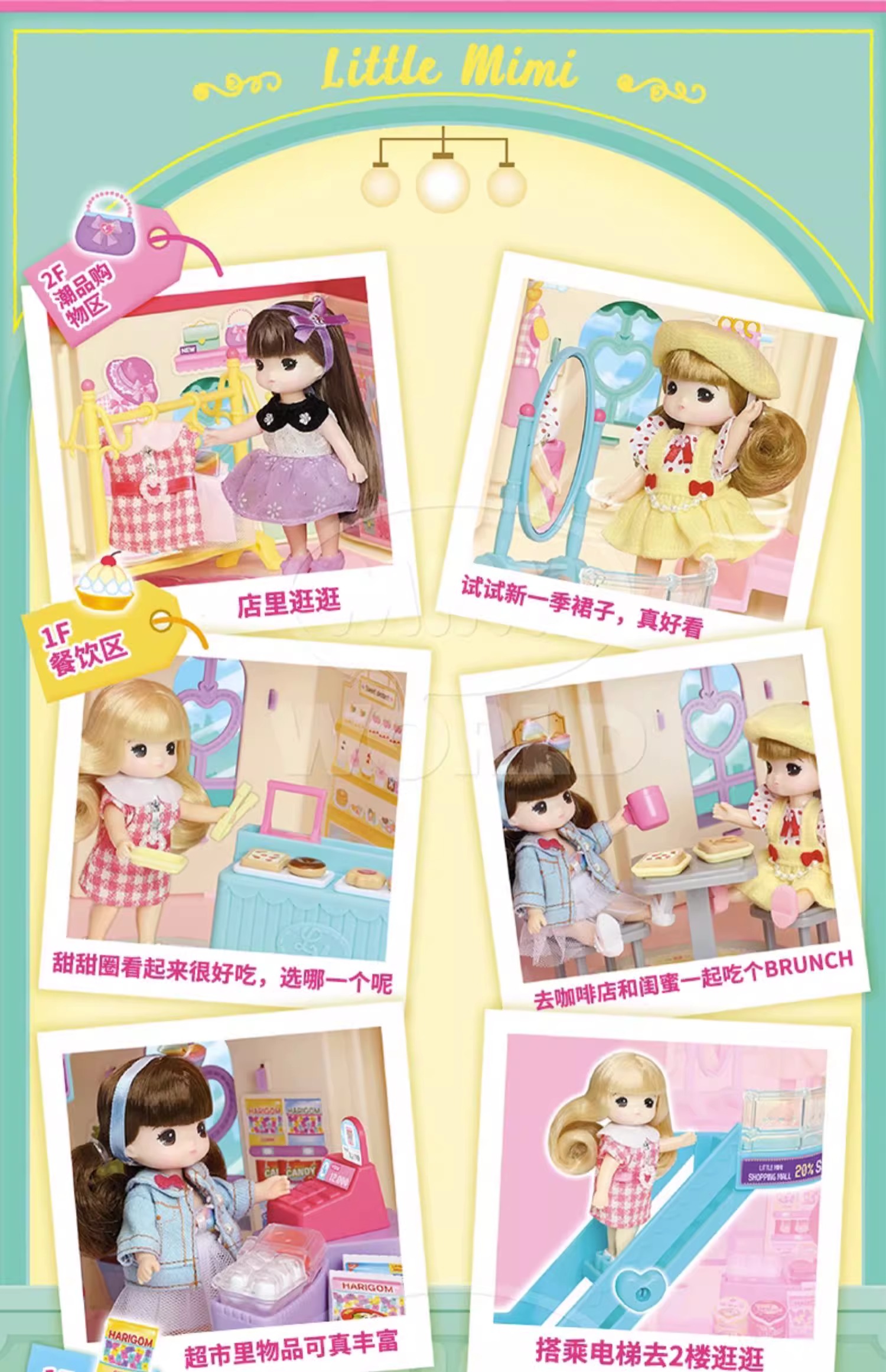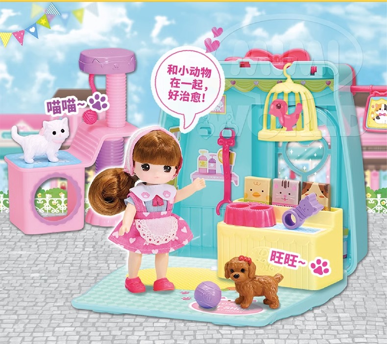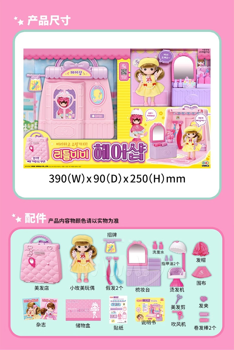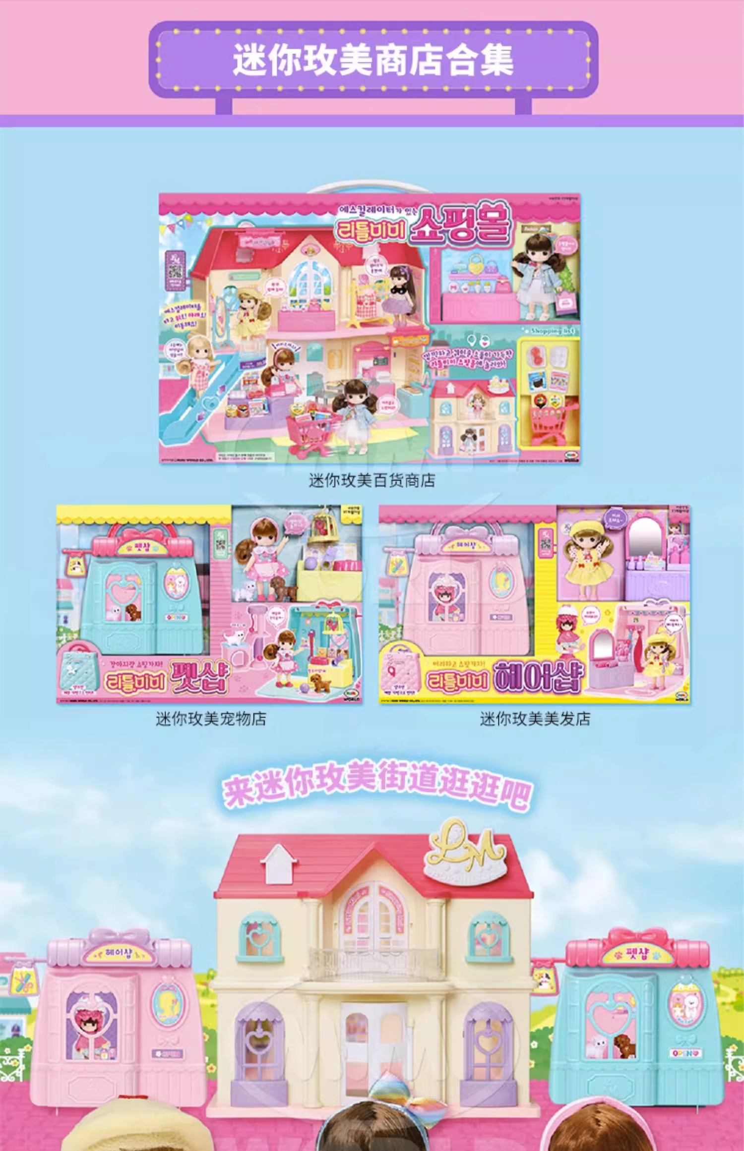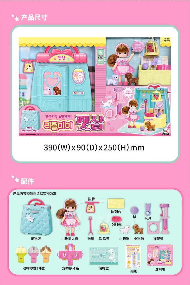 Mimiworld 迷你玫美宠物店 美发店 百货商店 | 娃娃玩具美发店宠物店手提包过家家女孩礼物 3岁+