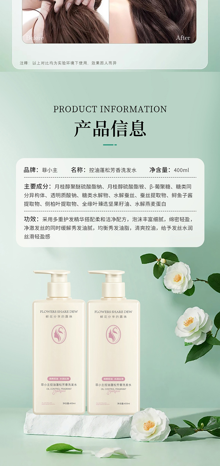 自营(菲小主)- 控油蓬松芳香洗发水400ml专利配方植萃精华清爽蓬松留香持久