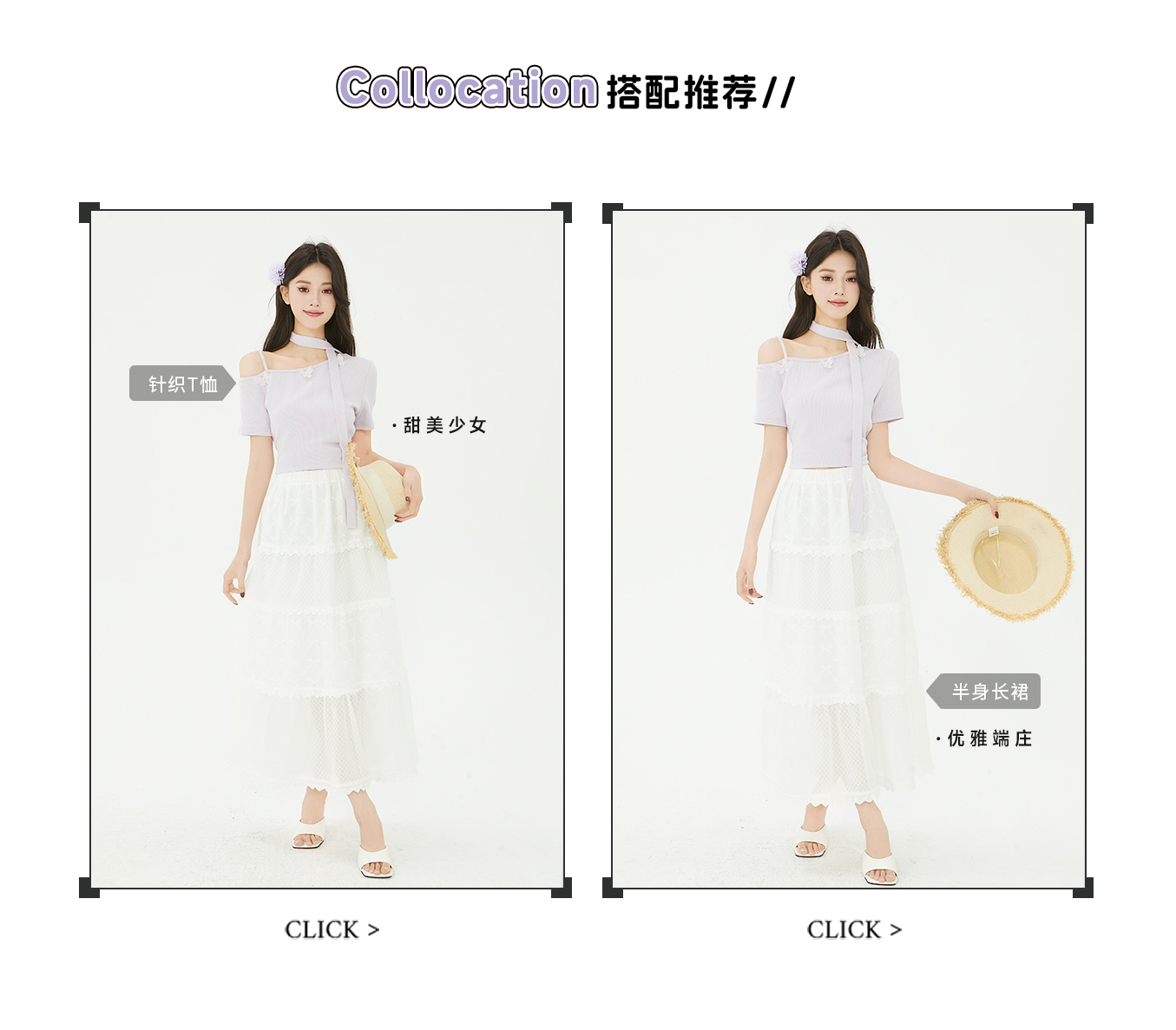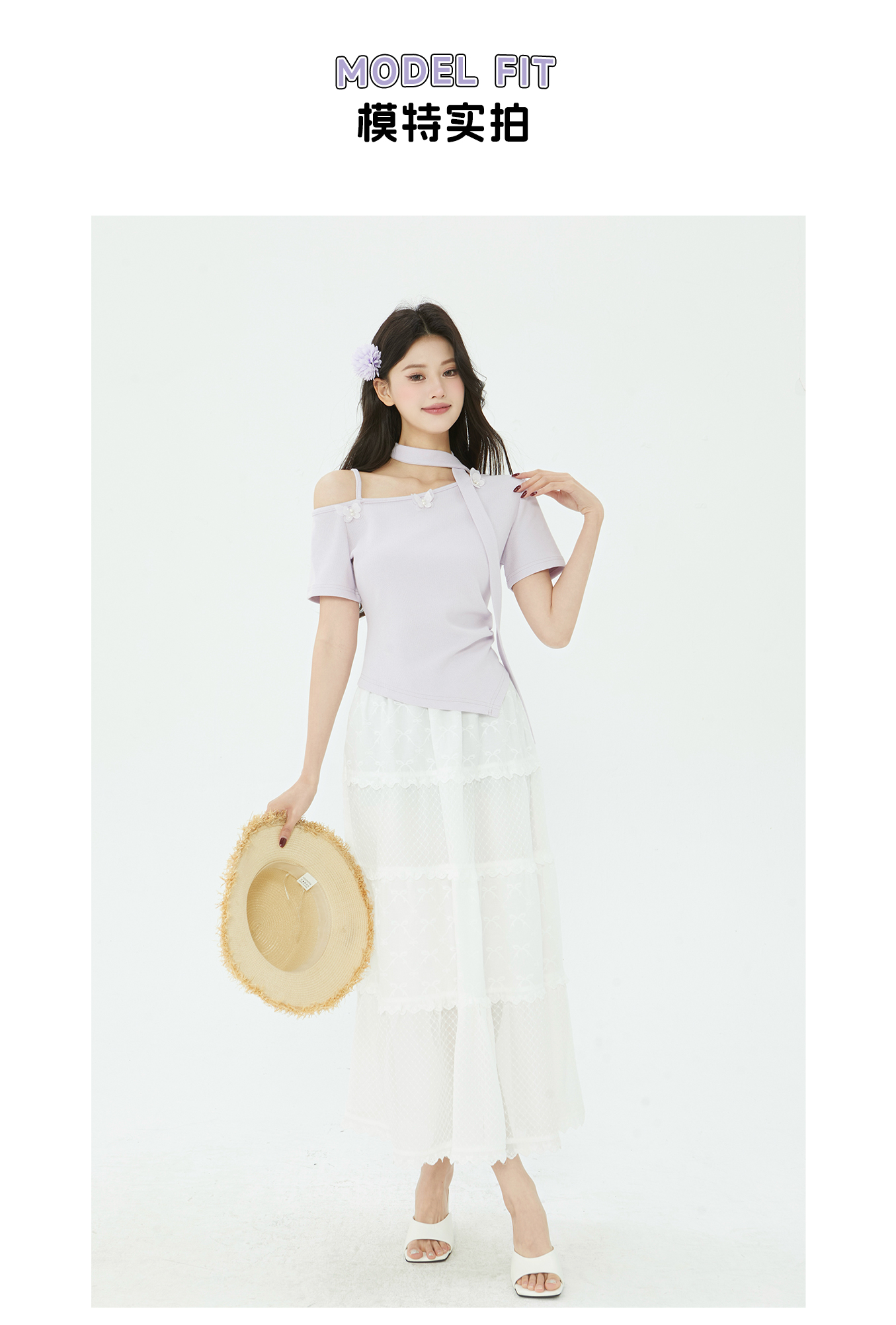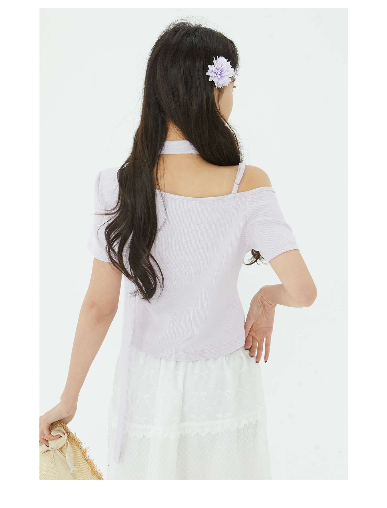 P&X设计师2025夏季新修身斜肩蝴蝶甜美设计感T恤 825202236 紫色