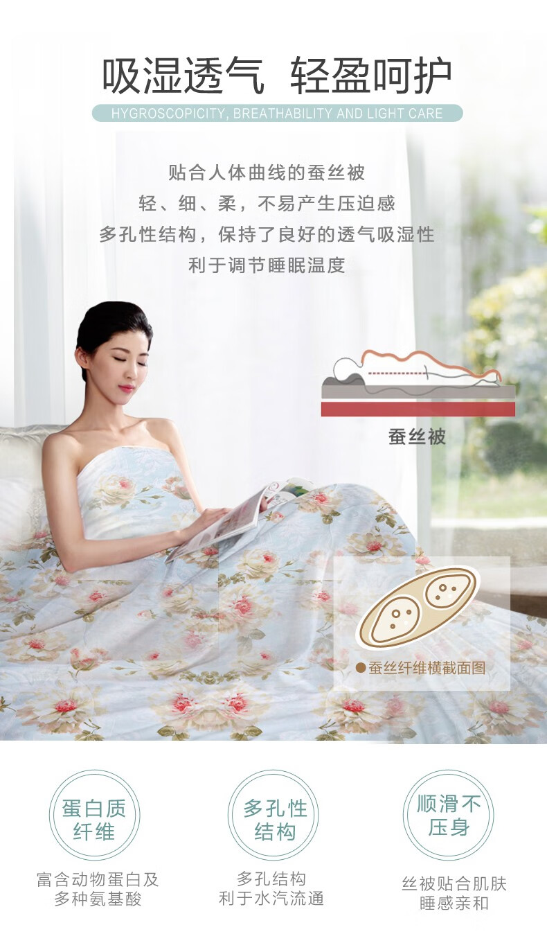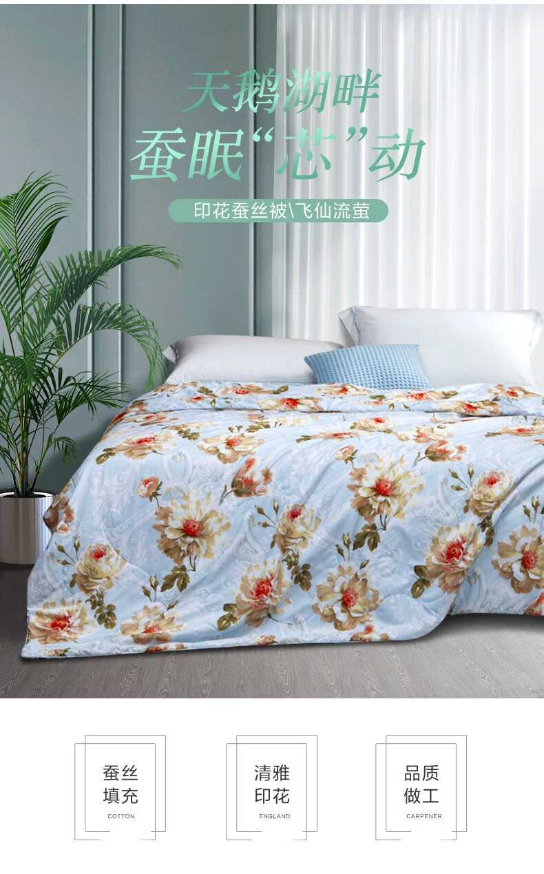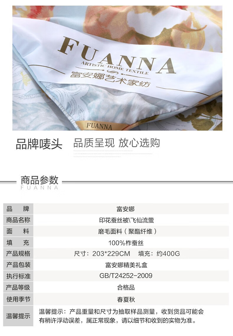 富安娜 FUANNA 家纺 印花蚕丝被-飞仙流萤 203*229cm
