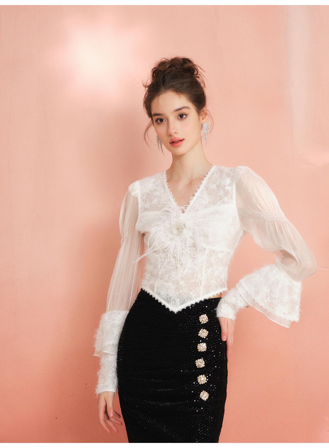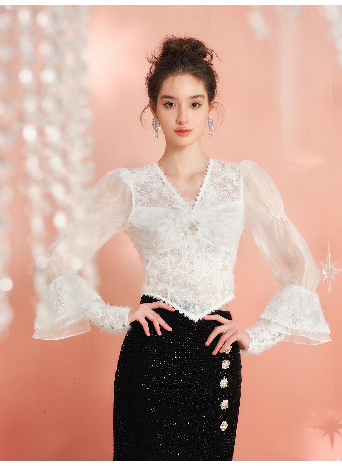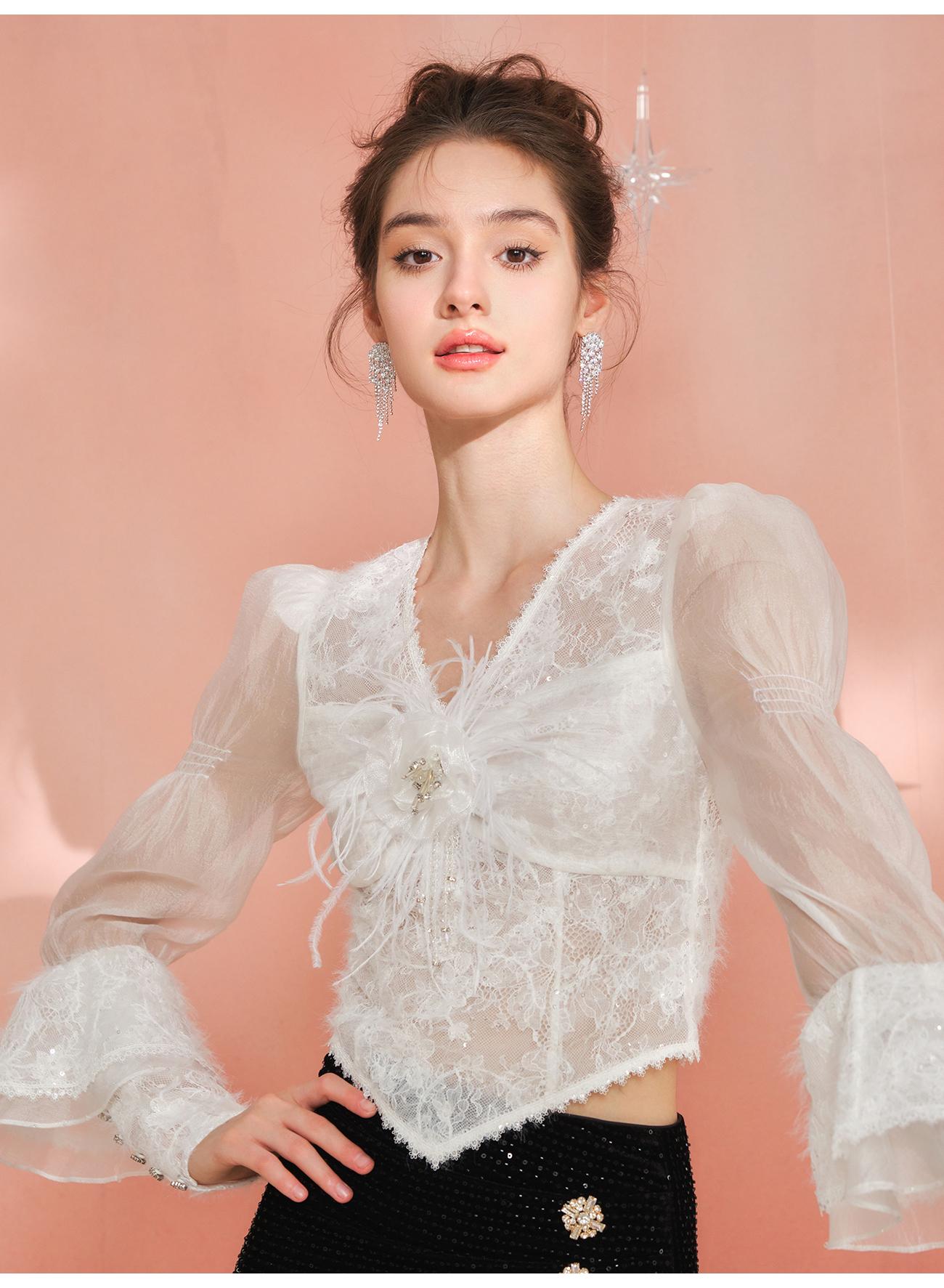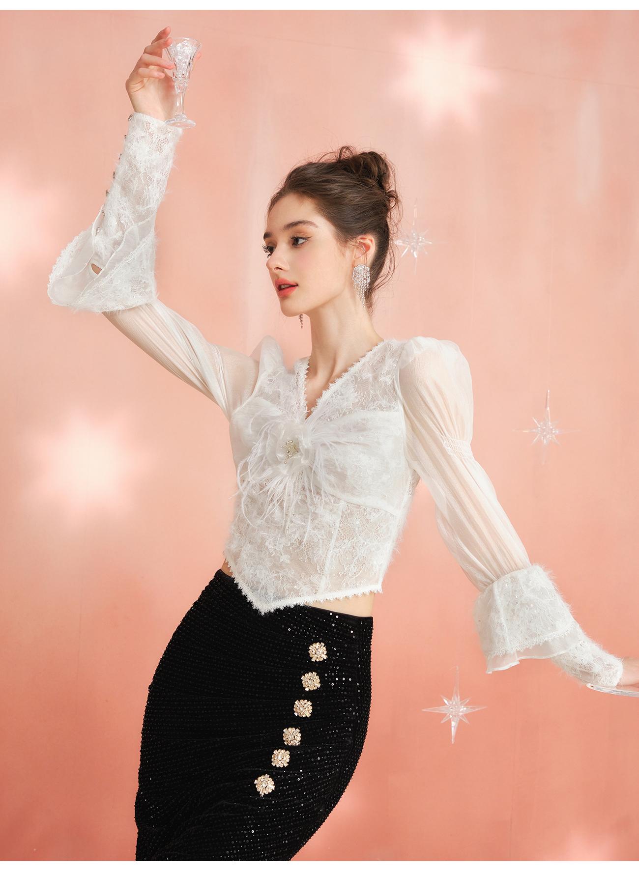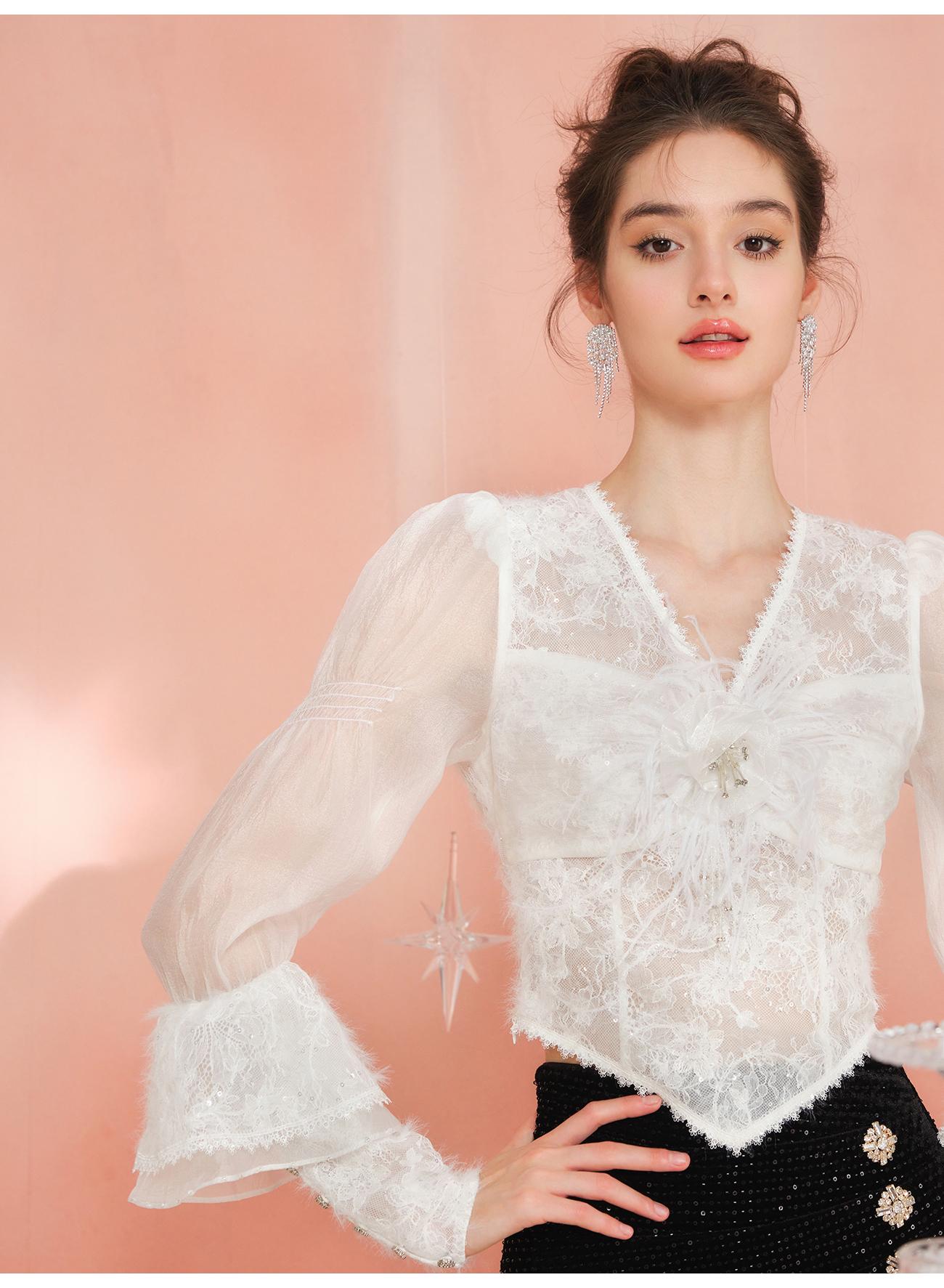 BeQueenStory【香雪玉兰】设计感两穿袖子可拆泡泡袖时尚V领衬衫
