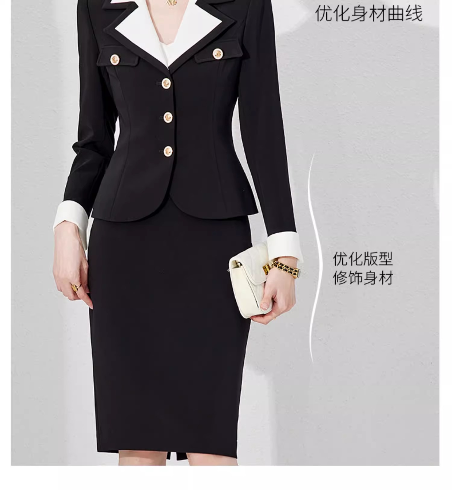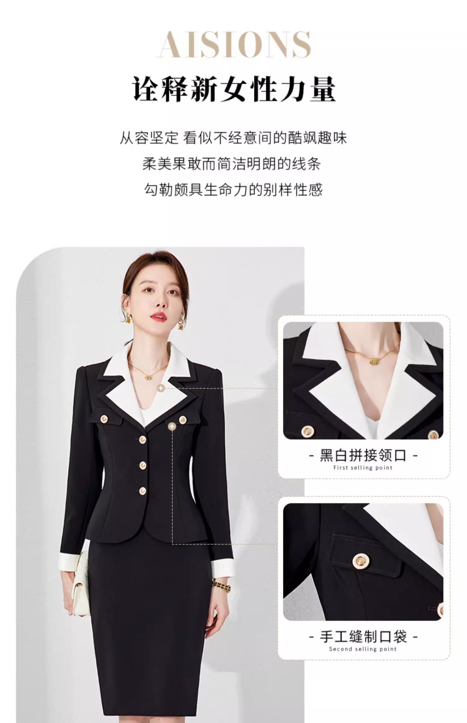 IWY/黑色干练气质西装套装女酒店经理轻熟风职业女装正装工作服套裙22CS221