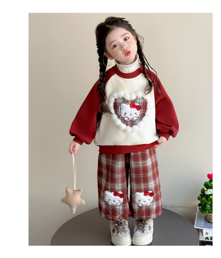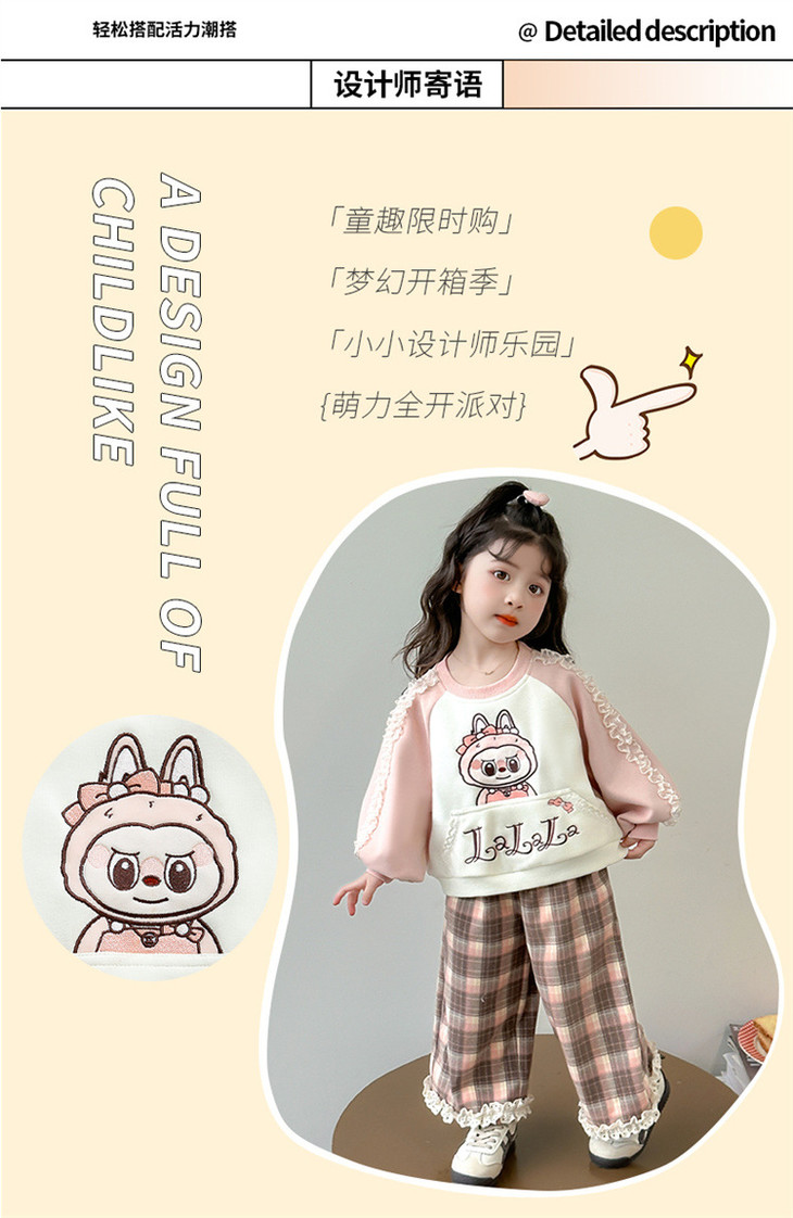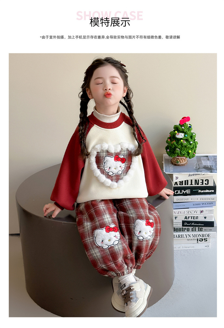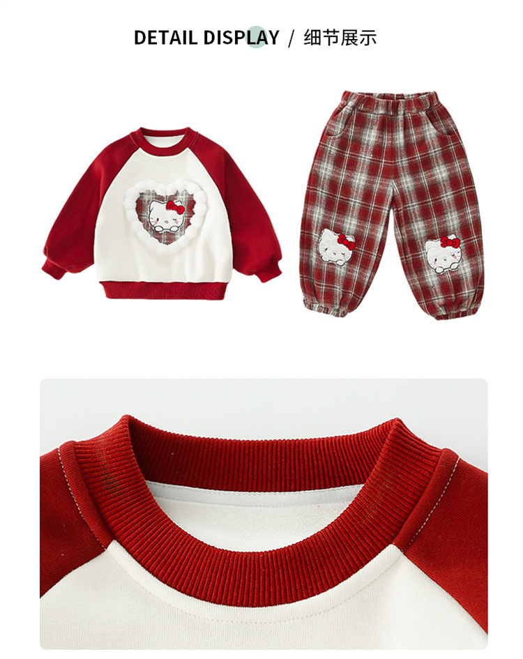 59.9元/套!2026年新年童洛萌女童加绒加厚套装新款秋冬季宝宝洋气卫衣格子裤百搭两件套80-150