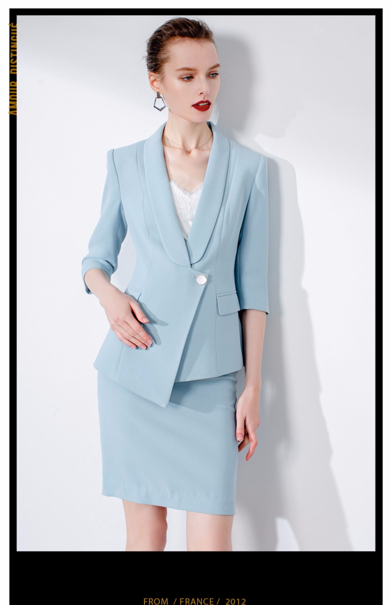 IWY/小西服套装女韩版蓝色休闲时尚修身职业装气质女神范 C1117+S1117
