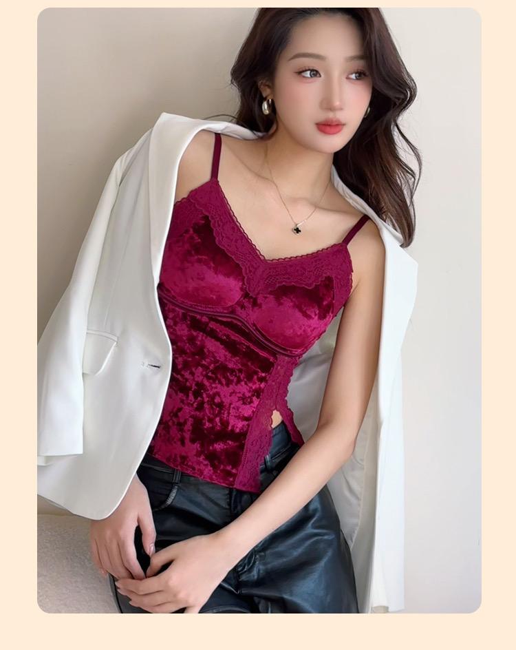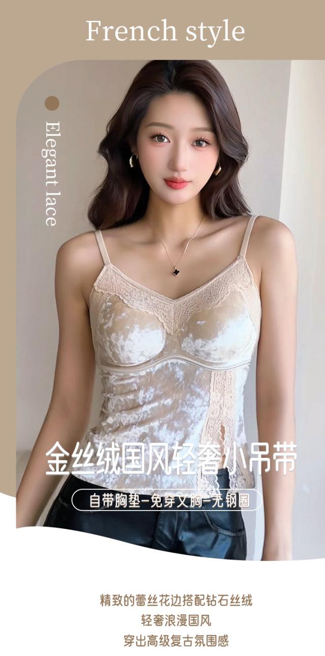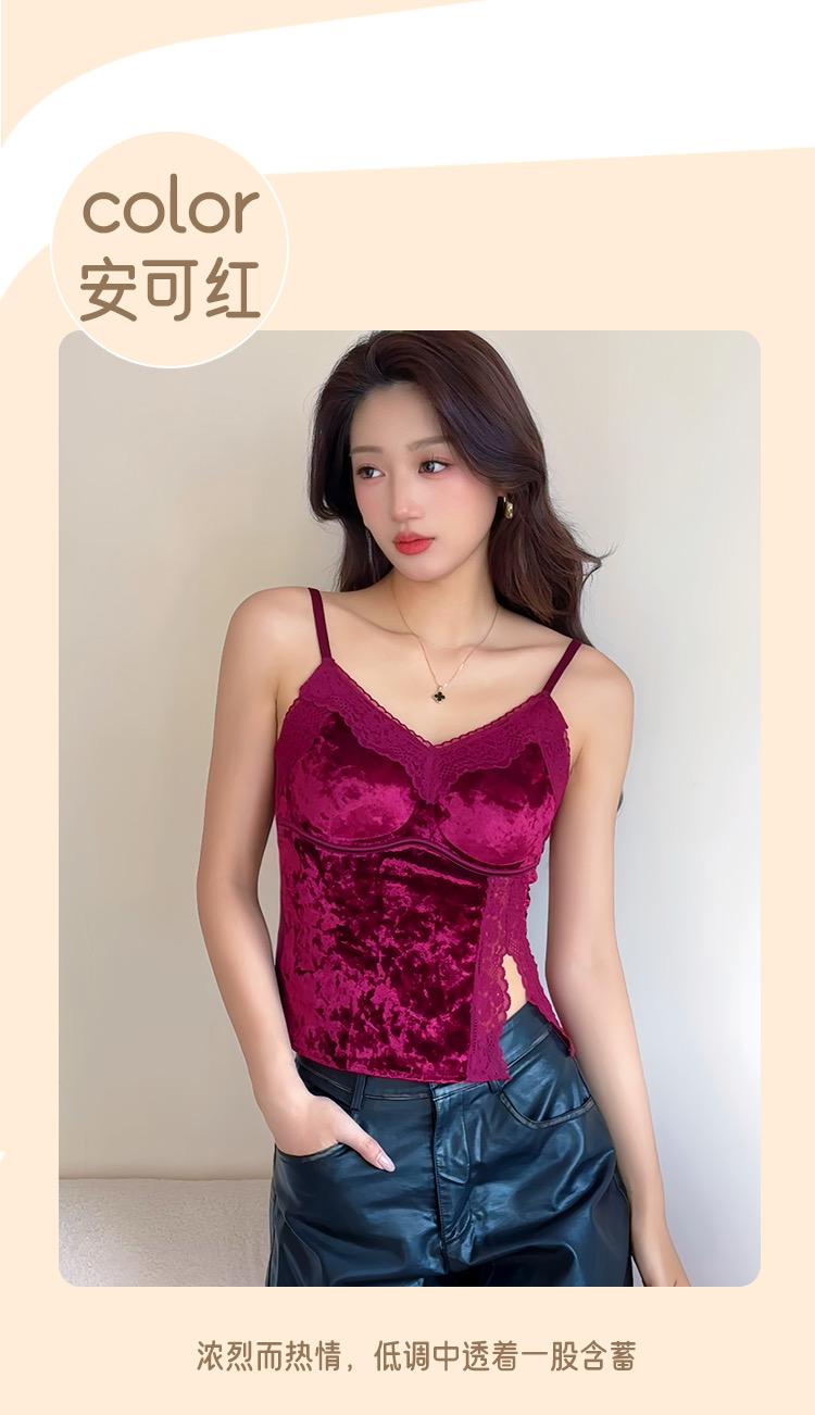 曼芮凯诗【鎏金岁月】欧若风轻奢国风金丝绒美背吊带 24019