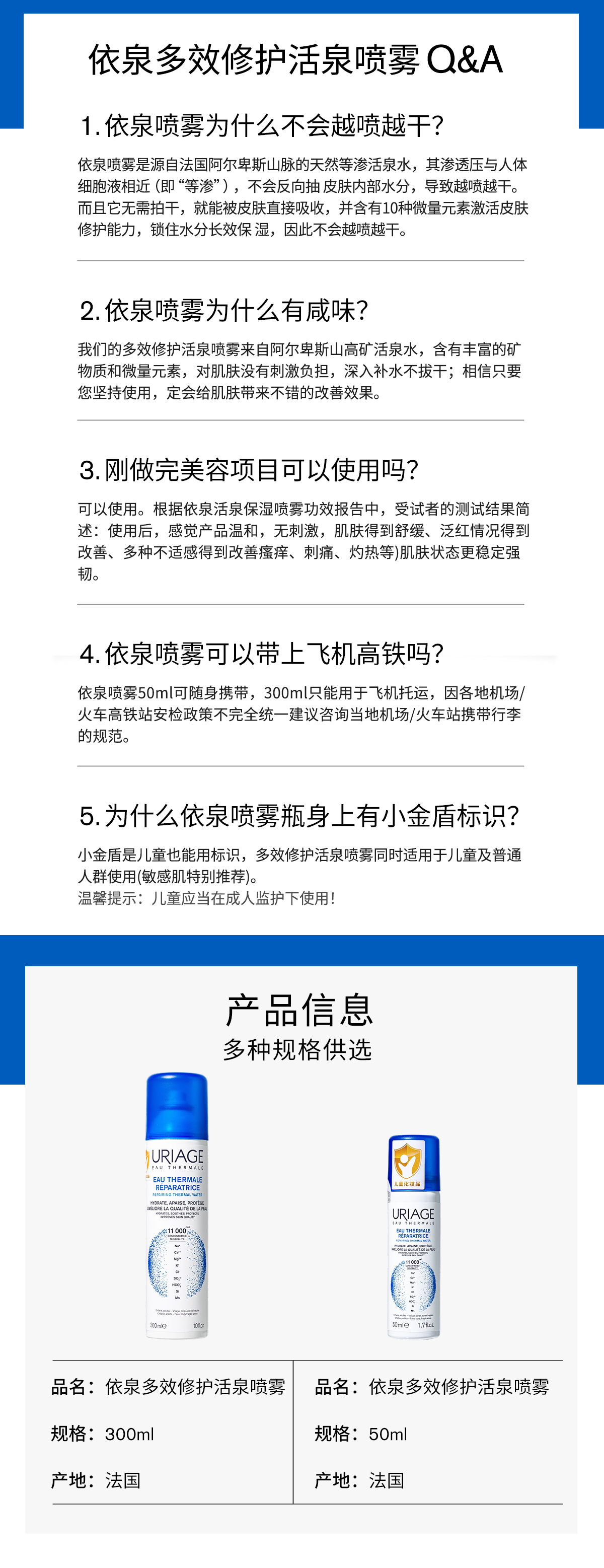 依泉多效修护活泉喷雾300ml 舒缓肌肤 爽肤水化妆水