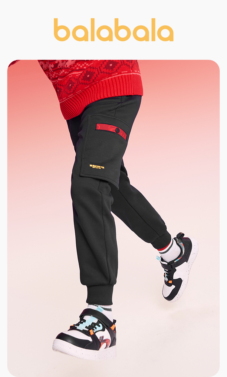 【balaOne】巴拉巴拉童装儿童裤子男童2025年新款春秋加绒慢跑裤