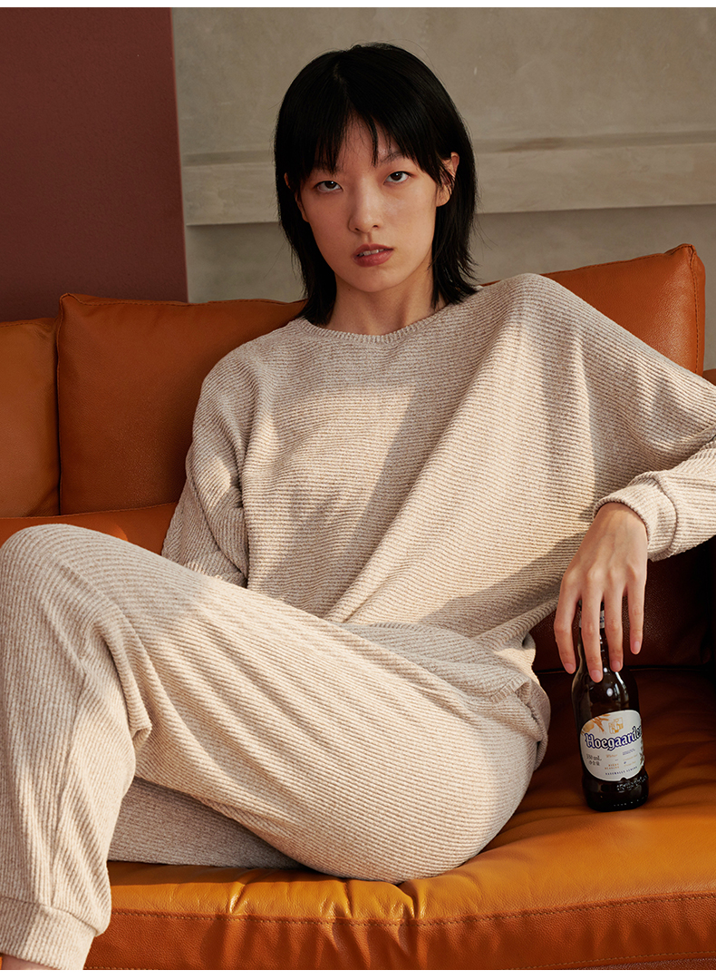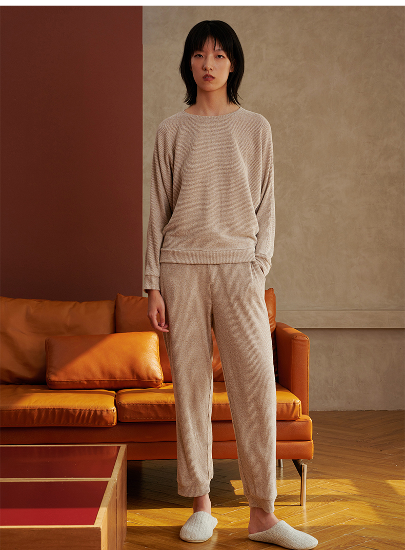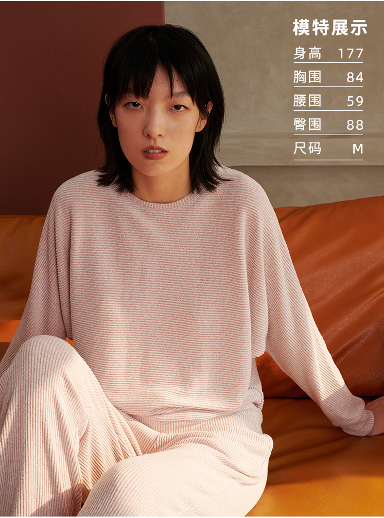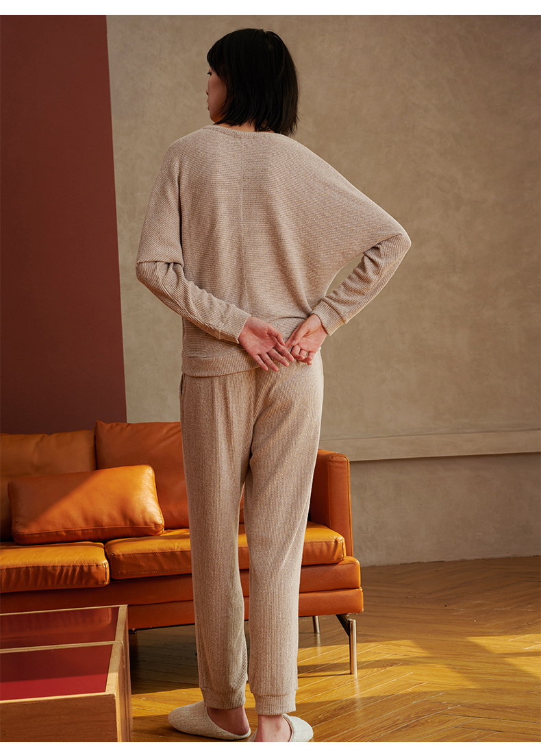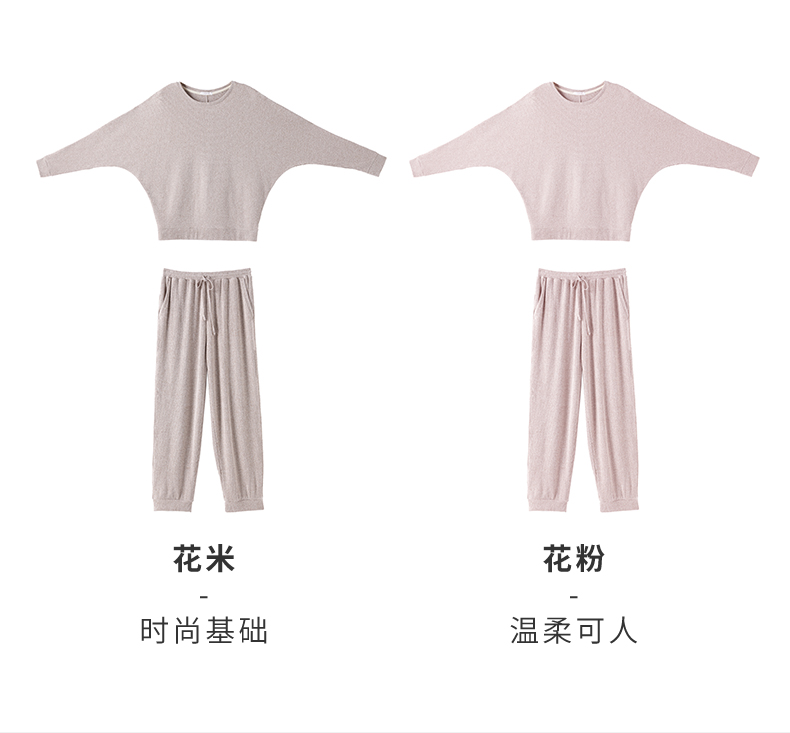 HSIA遐 睡衣女春秋可外穿新款花纱磨毛蝙蝠袖宽松显瘦家居服套装