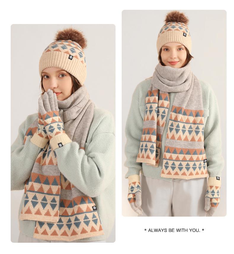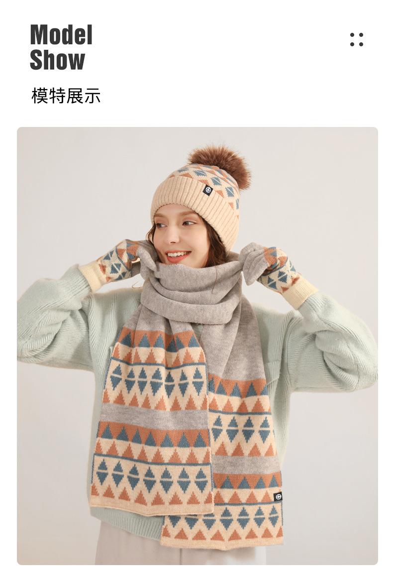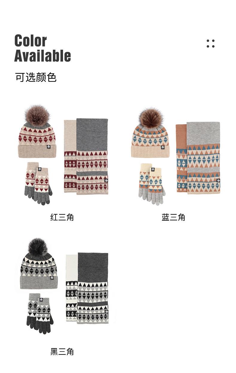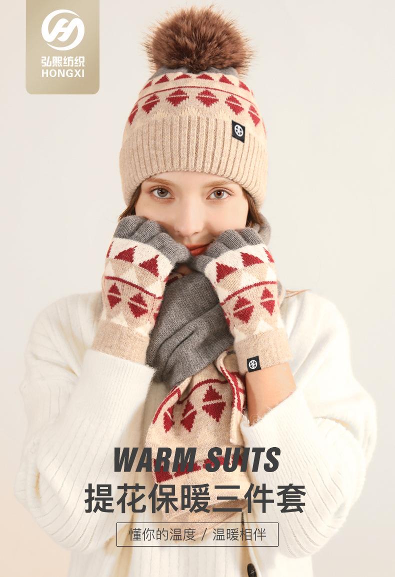 冬季新品日系针织手套围巾帽子三件套羊毛保暖防寒毛球围巾三件套