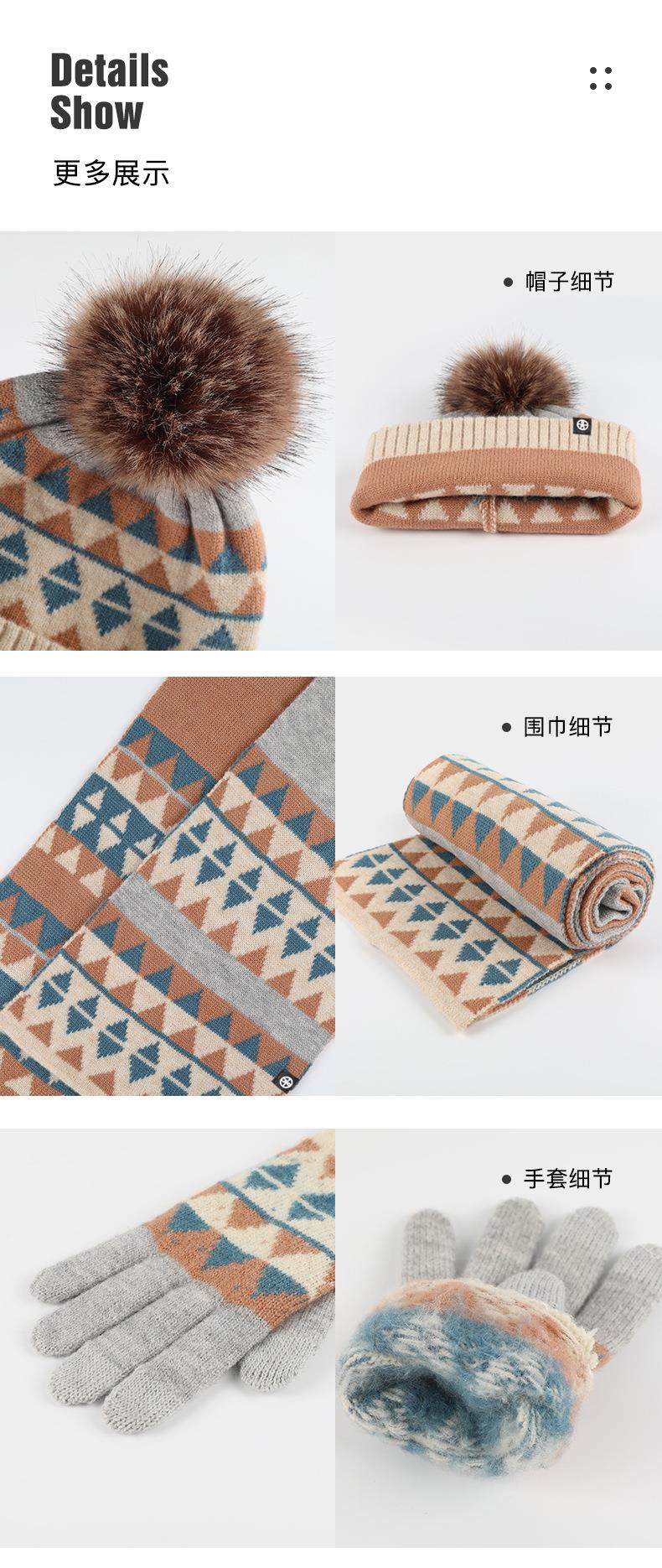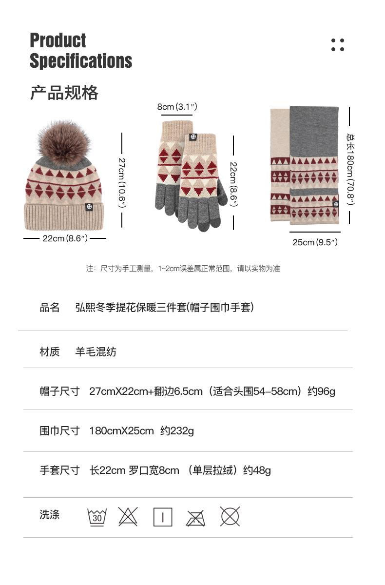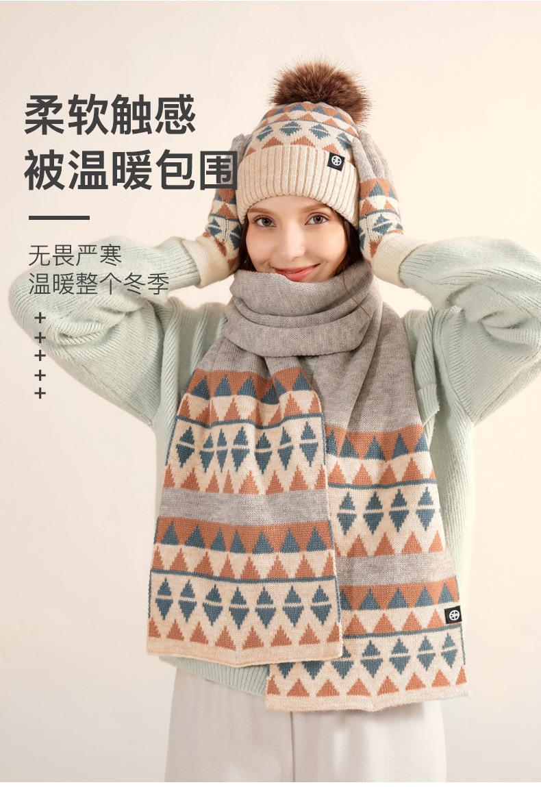 冬季新品日系针织手套围巾帽子三件套羊毛保暖防寒毛球围巾三件套