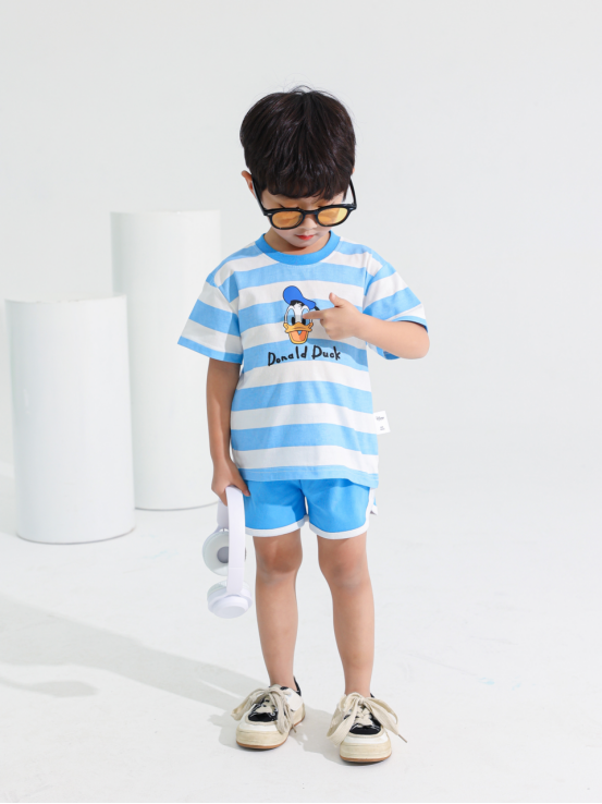 三枪&迪士尼儿童短袖套装 【规格】:90-150 【颜色】: 男童:JXAN1094D-拼接跳跳虎、JXAN1090D-插兜米奇、JXAN1090D-冲浪唐老鸭、JXAN1090D-红衣米奇、JXAN1093D-蓝条纹唐老鸭 女童:JXAN1090D-花朵米妮、JXAN1093D-眼镜黛西、JXAN1093D-紫条纹黛西、JXAN1093D-彩虹米妮 【尺码】:90-150 【材质】:100%棉 【安全级别】:A类 【发货地】:山东潍坊 【发货快递】:极兔/圆通/中通 【发货时效】:72小时(节假日顺延) 【偏远地区(哪些省份)加多少运费】:内蒙古+3、新疆、西藏+21 【售后说明】:不影响二次销售情况下,七天无理由包退换(如非质量问题,寄回运费客户承担),质量问题请在签收后24小时内,带快递面单+产品图片报售后处理。 (客户留地址、电话等信息导致货物不能正常送达均不在售后范围内,下单后不可更改地址、拦截,请务必核对好下单信息!)