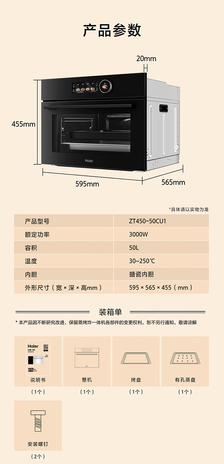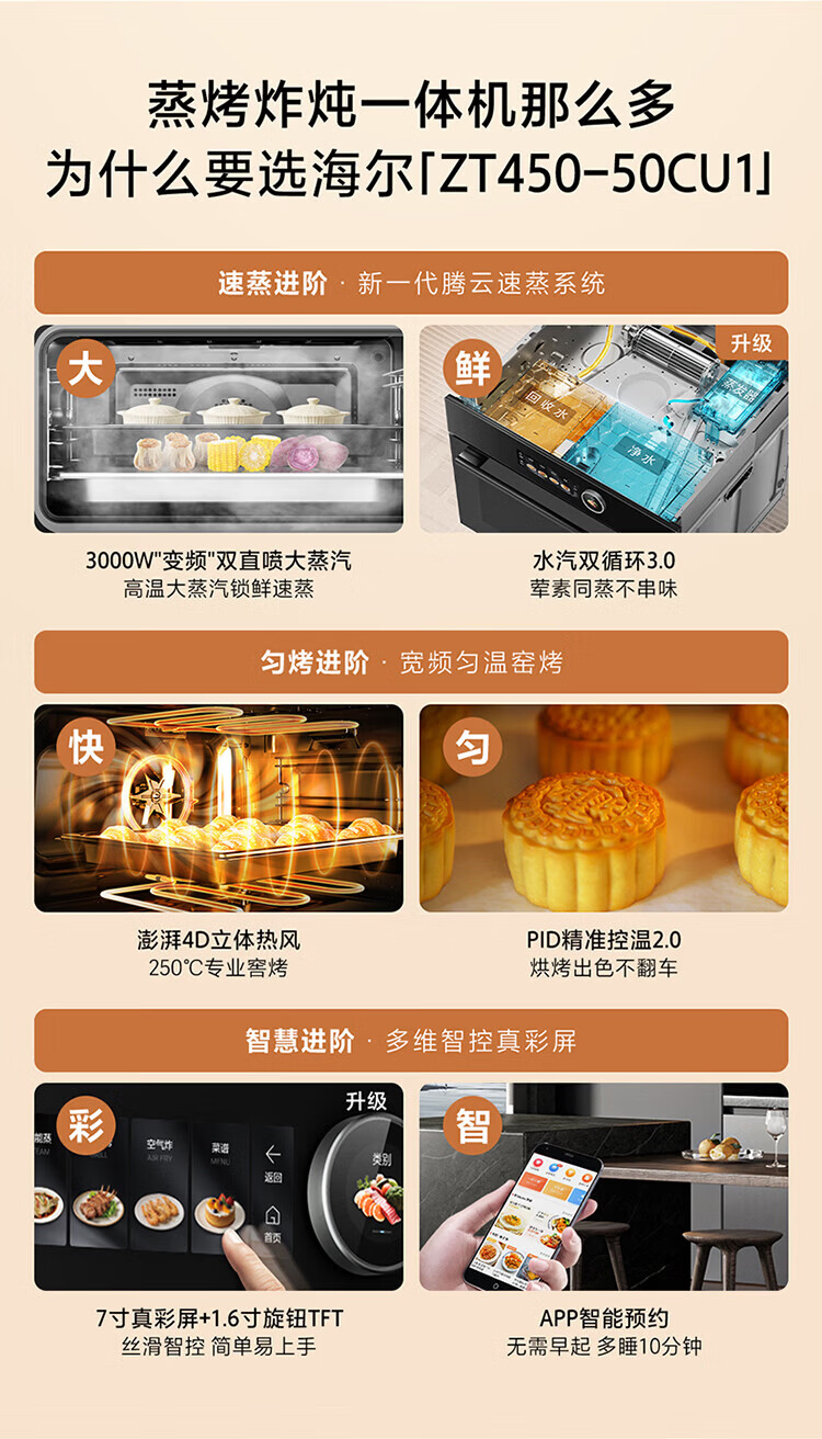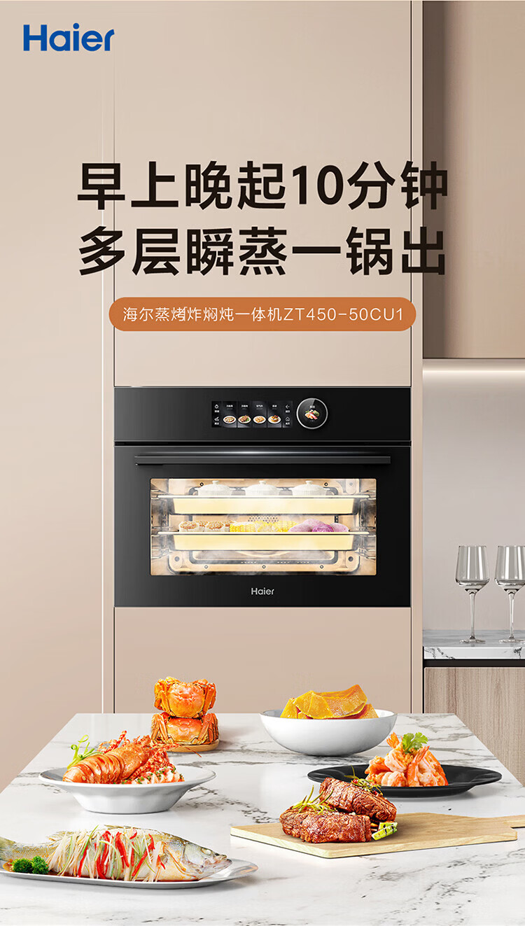 海尔(Haier)海尔嵌入式多功能蒸烤烘炸炖五合一 温湿精控 搪瓷内胆ZT450-50CU1
