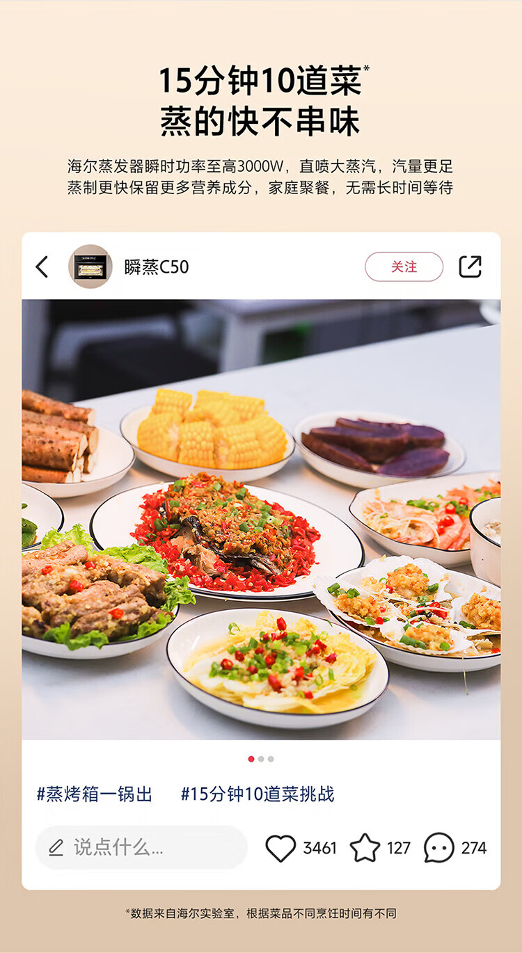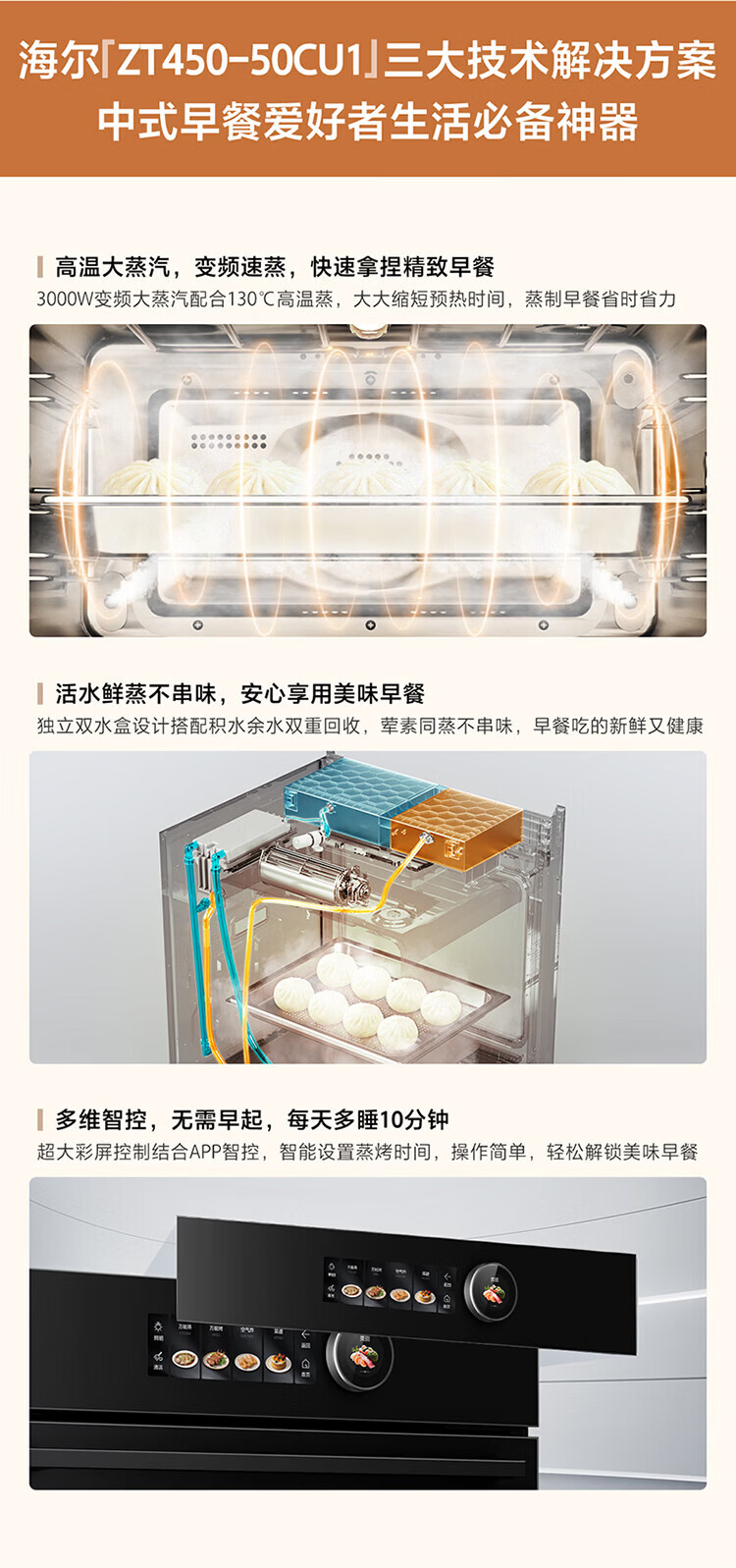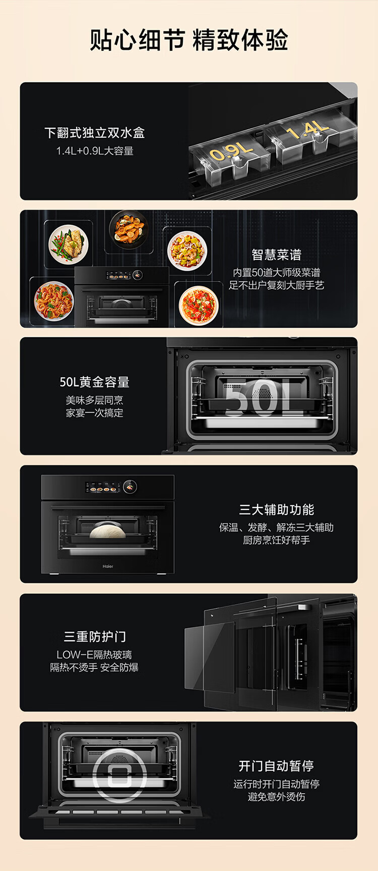 海尔(Haier)海尔嵌入式多功能蒸烤烘炸炖五合一 温湿精控 搪瓷内胆ZT450-50CU1