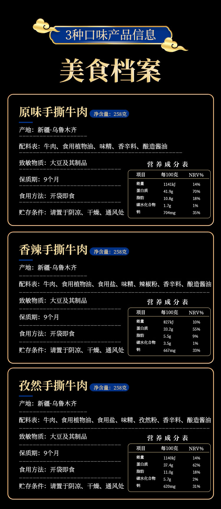 【配料】原味:牛肉、食用植物油、食用盐、味精、香辛料、酿造酱油(含焦糖色)