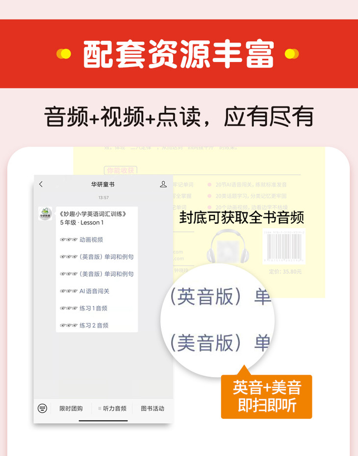 5.所有单词和例句均配套音频,含英音版和美音版,方便学习,也可搭配点读笔使用(点读笔需另购)。