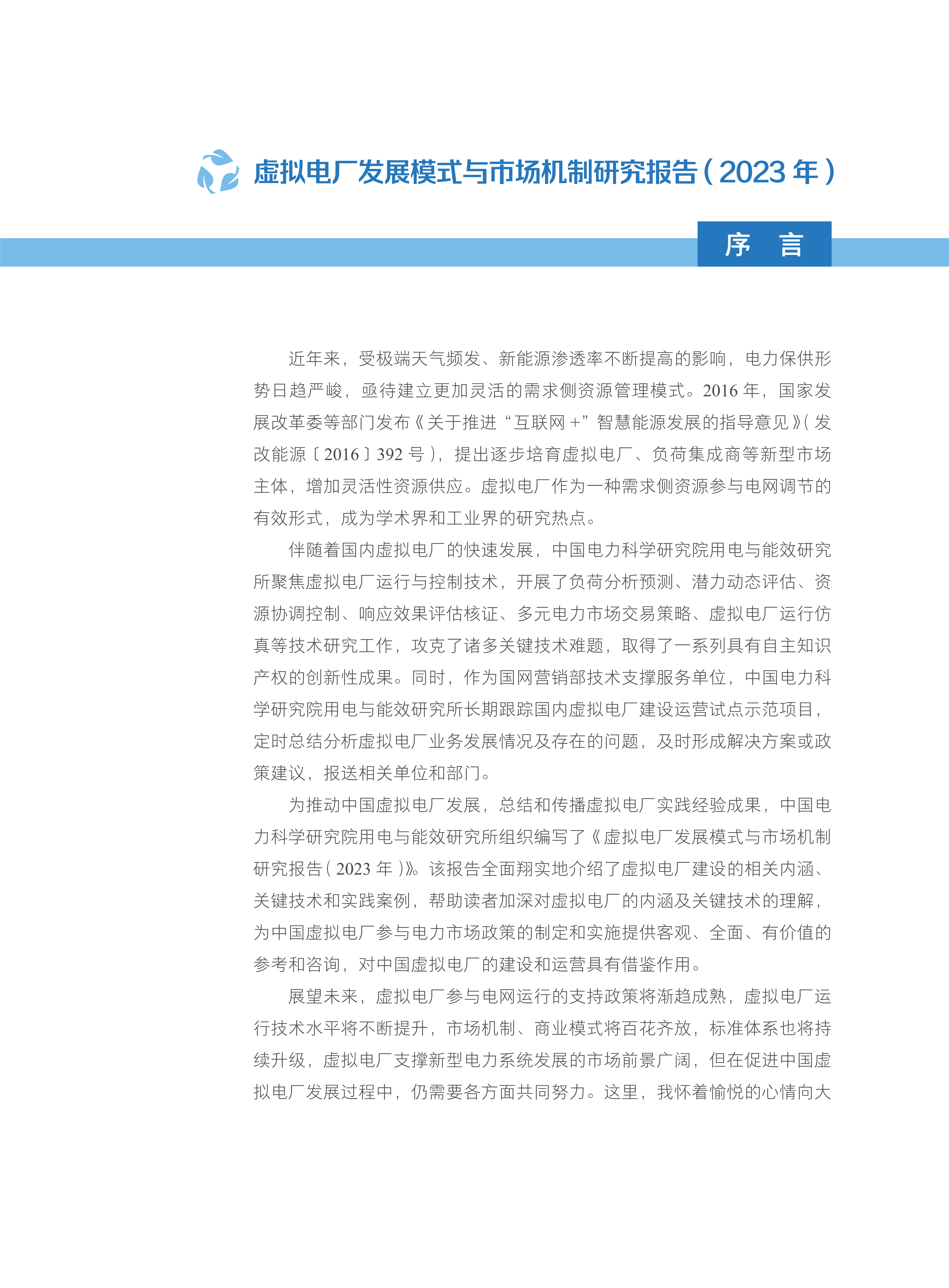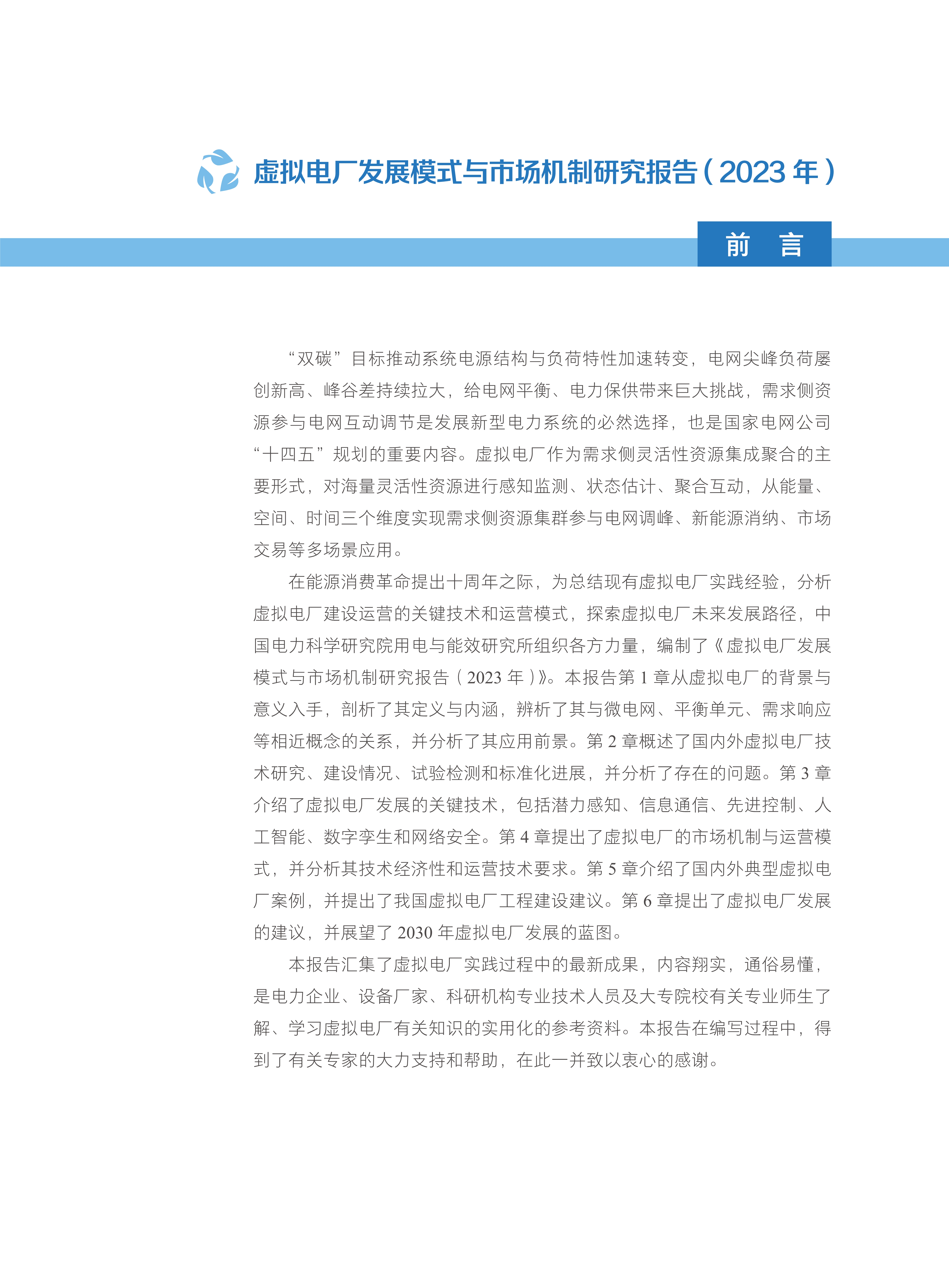 电力科学与技术发展年度报告.虚拟电厂发展模式与市场机制研究报告:2023年