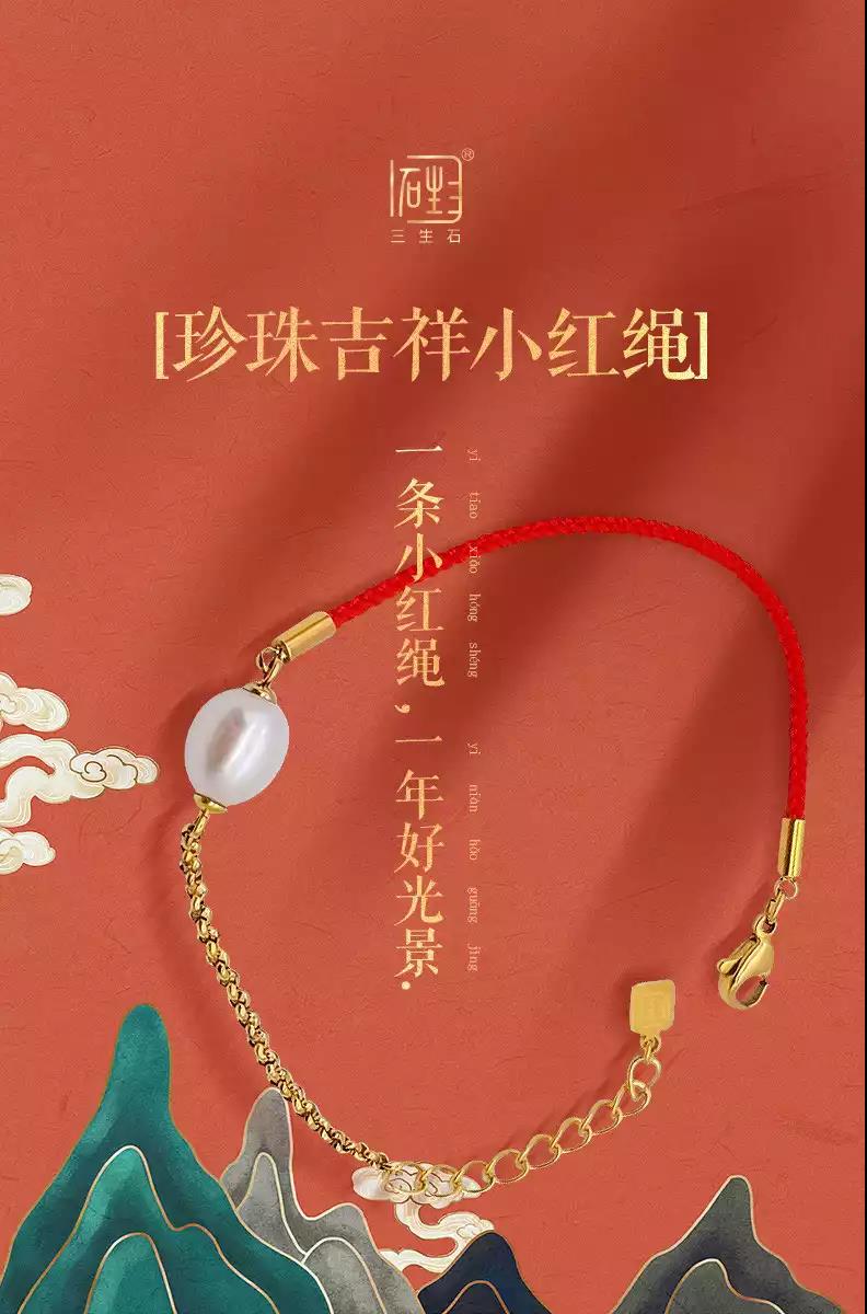 三生石珍珠吉祥红绳手链